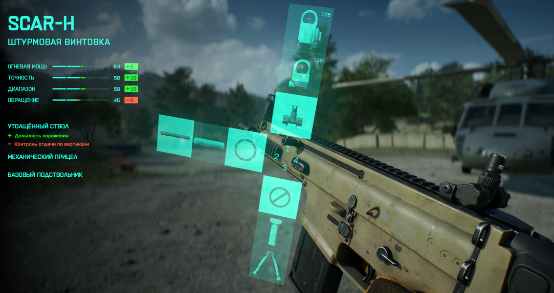 Выбранные улучшения для оружия (прицелы, магазины, насадки на ствол и подствольные обвесы) можно модернизировать в любой момент в зависимости от боевой ситуации, и это круто: не нужно бегать весь матч с одним и тем же снаряжением, если не успел до старта игры произвести изменения. Такие возможности неоднократно выручали при плотном огне в том месте, где вы нацелены «респауниться» с ближним прицелом (с коротким зумом приближения) — становится комфортнее противостоять в перестрелке на короткой дистанции. А если в ходе игры идут наступательные задачи, то в процессе перемещения не составит труда сменить прицел на усиленный зум, чтобы заполучить преимущество в наступлении, обнаруживая противников раньше, и задать жару тем, кто ожидает и «кемпится», ждет вашего приближения.