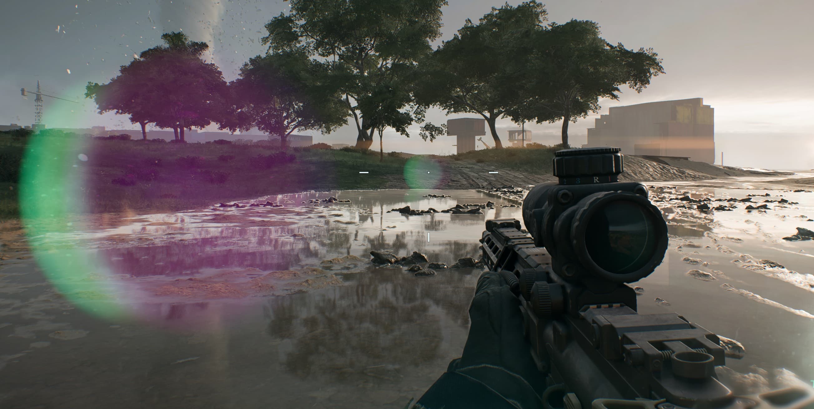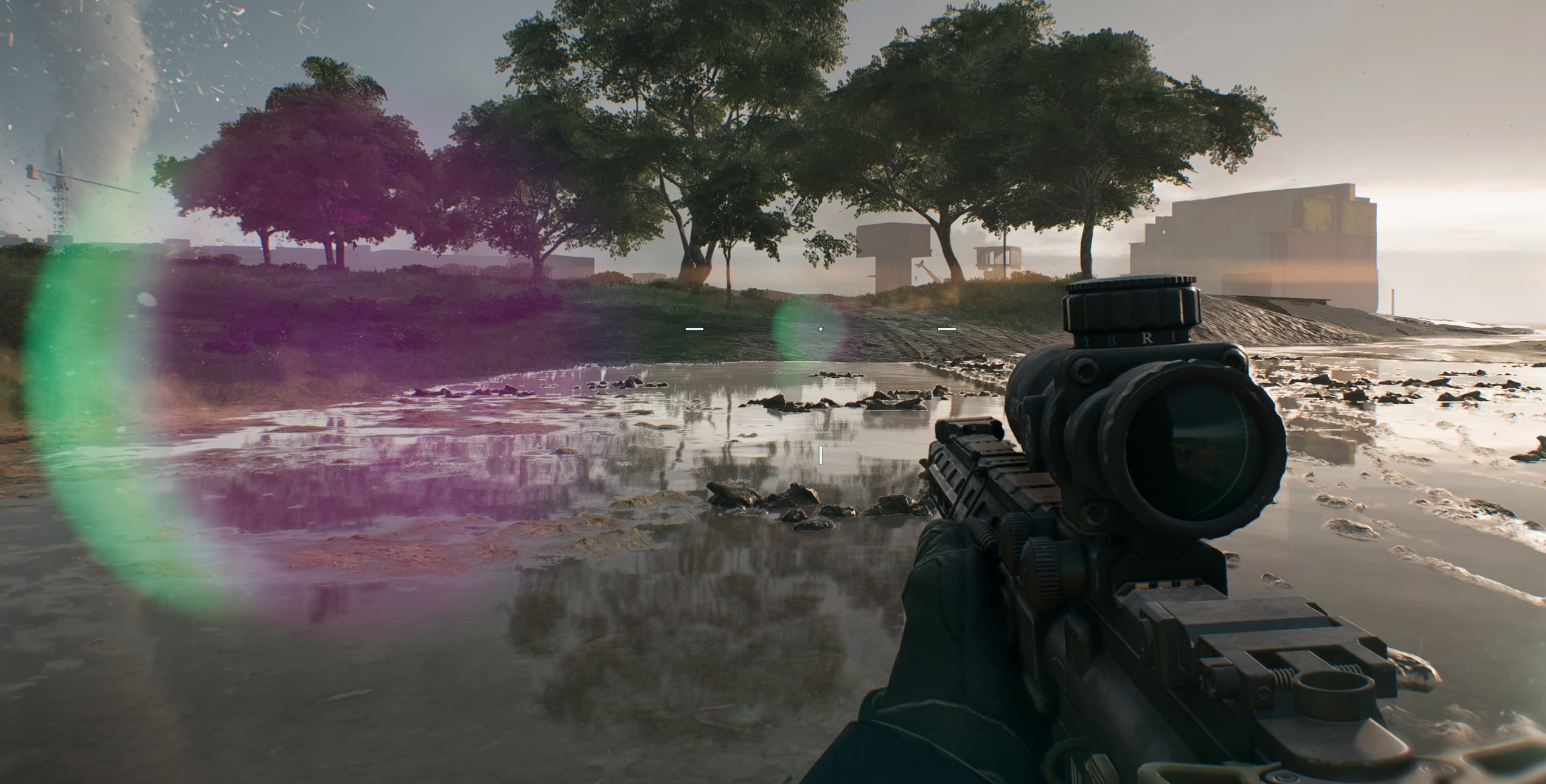 Приятная прорисовка отражений на лужах и деревьях. Появляется детальное понимание, в какую сторону дует ветер, за счет дорисовки теней от растительности.