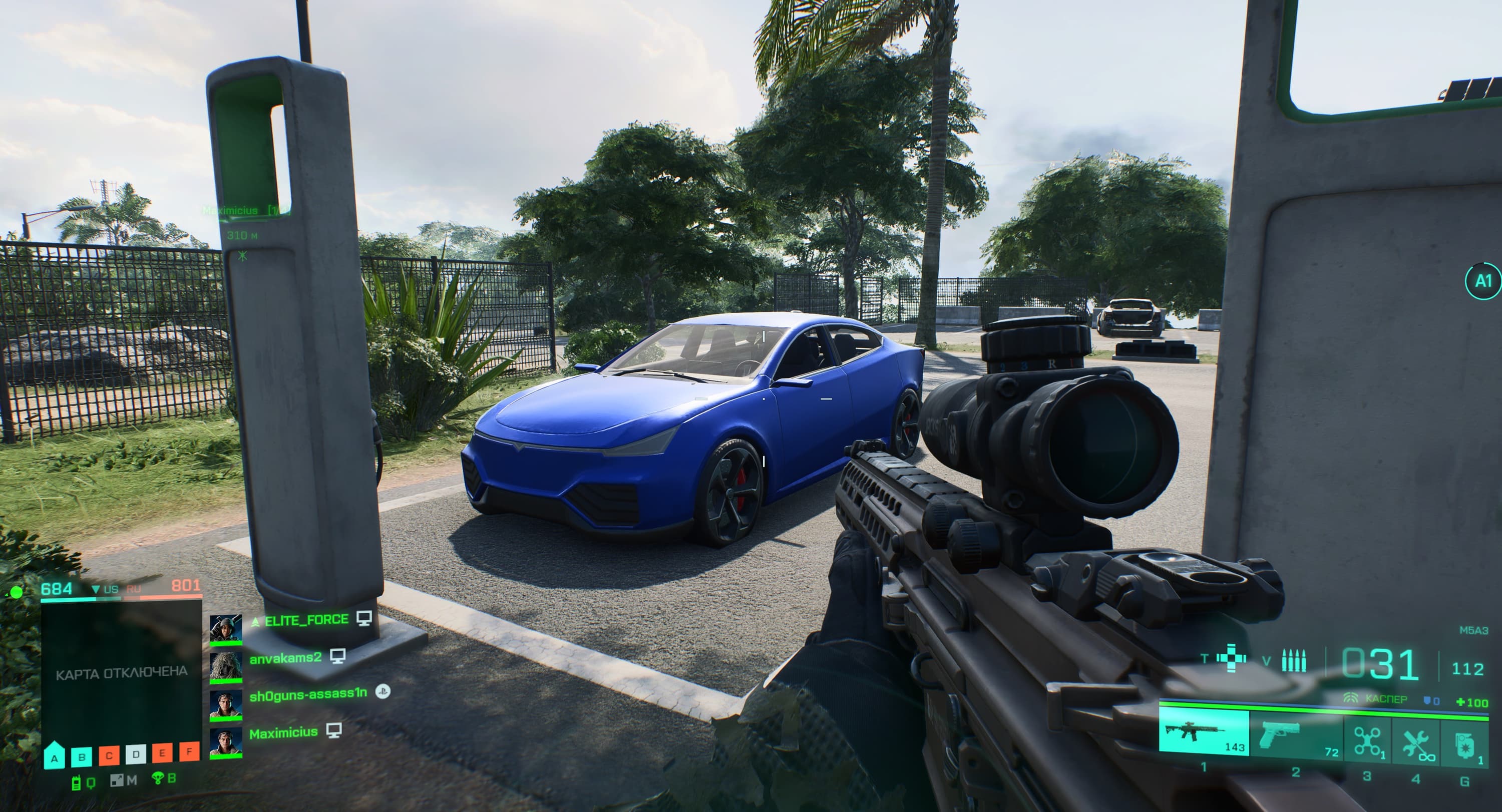 Всегда приятно видеть, как разработчики вводят в игру красивую технику, особенного синего цвета (мой любимый!), но прокатиться не удалось, а жаль. Аппарат, смахивающий на Tesla, выглядит агрессивным и скоростным, но версию с полуквадратными колесами рассматривать для «покатушек» не стоит.