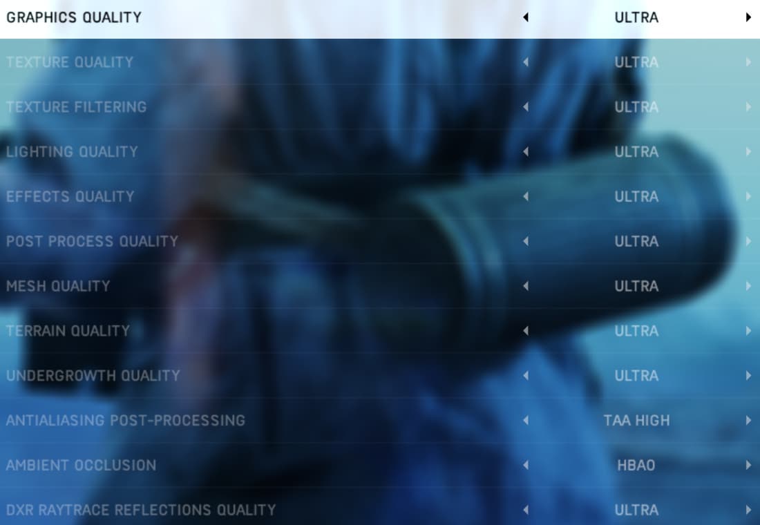 В общем, самыми требовательными в игре являются настройки разрешения (экрана и рендеринга), за исключением DXR-отражений, конечно. Также к ним относятся настройки качества постобработки (отключение SSR-отражений вызывает наиболее значимый прирост производительности), освещения и эффектов. Именно на эти параметры качества рендеринга и следует обратить особое внимание при тщательной настройке игры. Впрочем, все это больше касается сингла, ведь в многопользовательском режиме игроки в любом случае отключают почти все для улучшения видимости и во избежание даже минимальных задержек при игре.