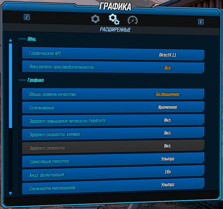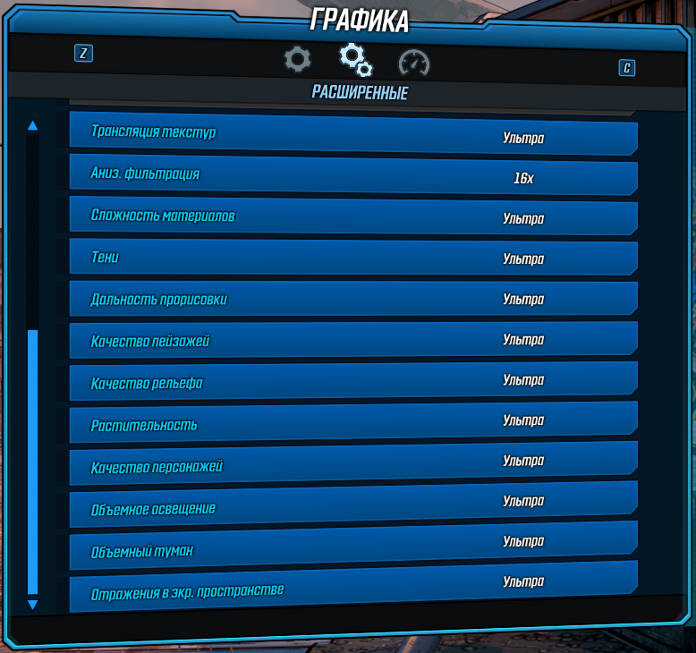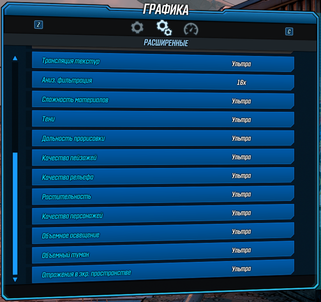 Большинство же остальных настроек в Borderlands 3 крайне мало сказываются на общей производительности в игре, и имеют значение только в том случае, если менять сразу несколько. Но лучше будет оставить их на высоких значениях, так как снижение не приведет к значимому приросту FPS, а качество картинки ухудшит. Например, никогда не меняйте качество текстурной фильтрации Аниз.фильтрация со значения 16×, так как разницы в скорости мы не нашли вообще никакой.