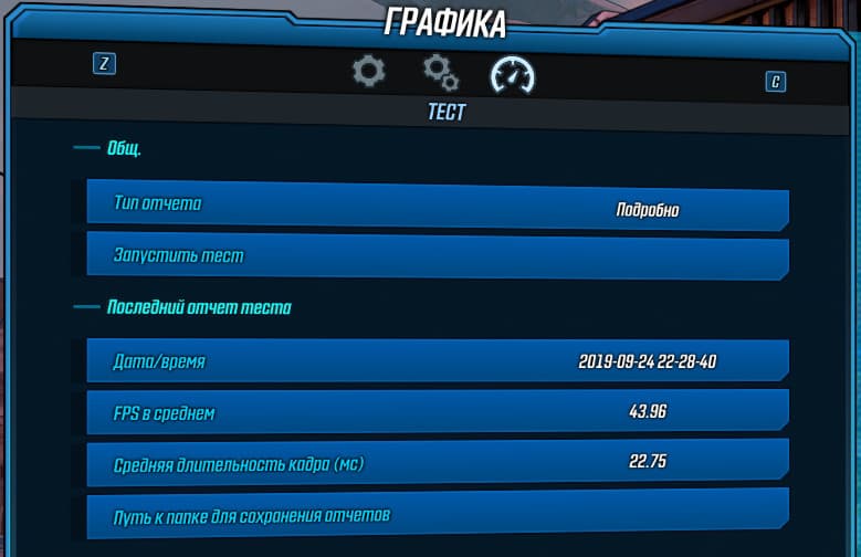Правда, после прогона теста на экран не выводится никакой информации — за ней придется идти обратно в меню настроек. Там указываются средние показатели частоты кадров и длительности отрисовки кадра, и все. Ни минимального FPS, ни загрузки CPU и GPU — этого нет, разработчики посчитали это излишним. Даже в текстовом файле отчета всего этого нет. Ну хоть так, и то хлеб.