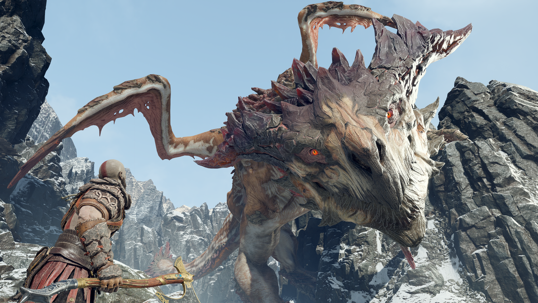 Одолеть его на высоком уровне сложности будет проблематично. Однако битва с ним состоит из двух этапов (сначала в деревянном лифте, а потом на открытой местности), и после пробивания чешуи на лбу дракона его добивание становится простым. Видеовставки, демонстрируемые в процессе битвы, очень хороши, вообще это самая впечатляющая битва в игре. После ее непростого завершения игроку, конечно же, достаются бонусы в виде шоковых стрел (как же без подарков?), Кратос отрубит поверженному дракону голову и отдаст ее гному из лавки. (Я бы на его месте прибил ее на стену, но у бога войны свое мнение на этот счет.)