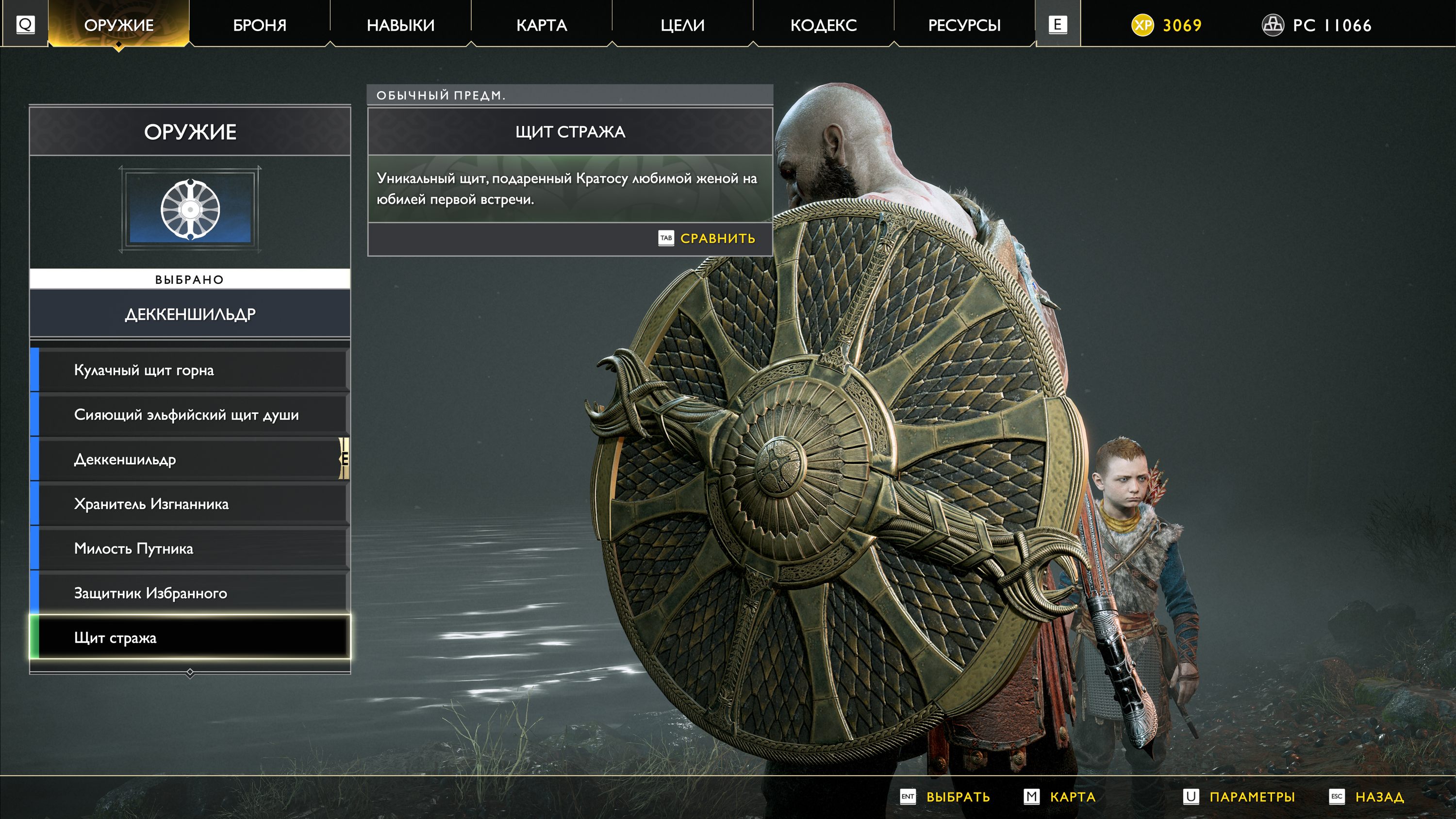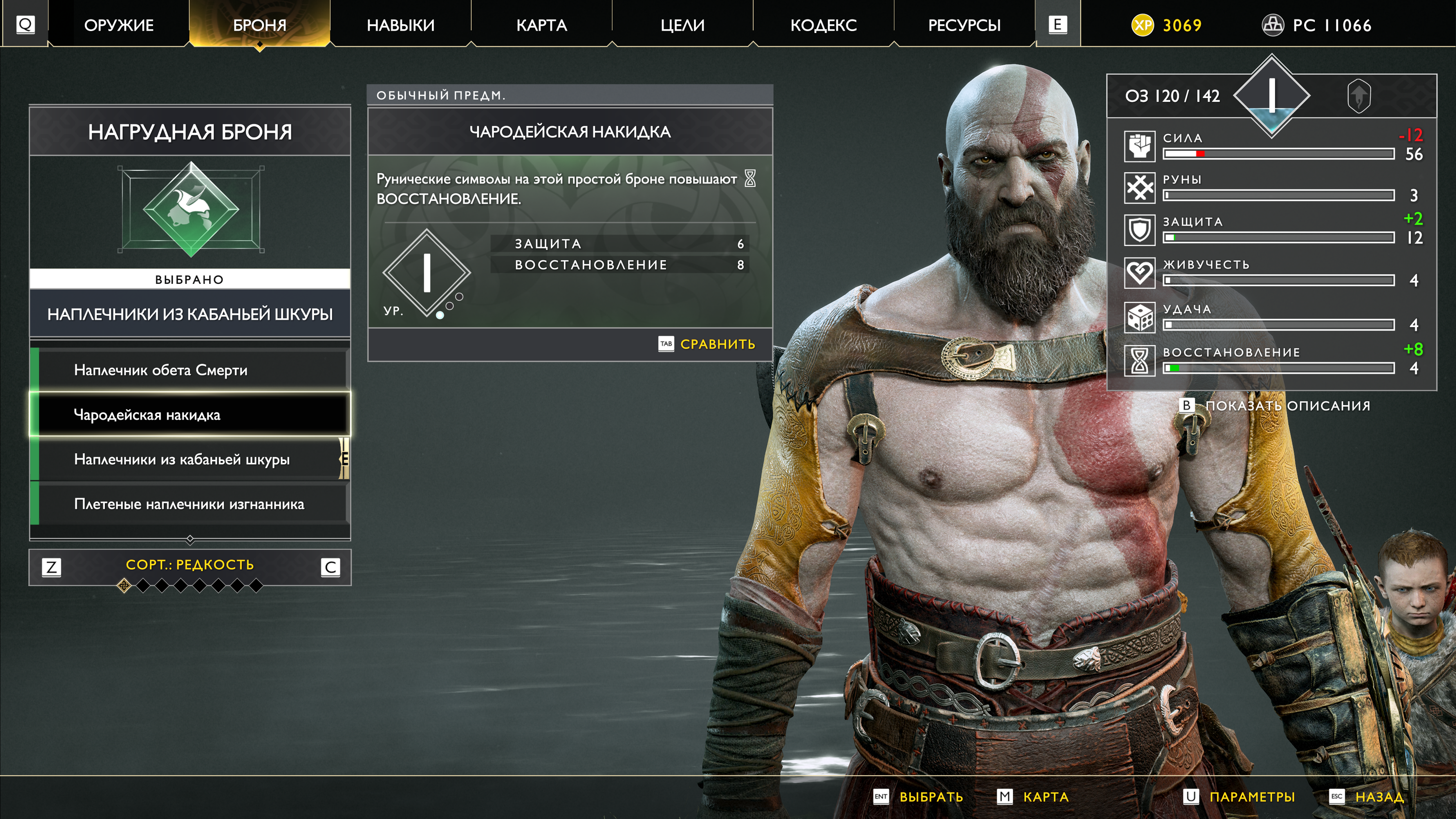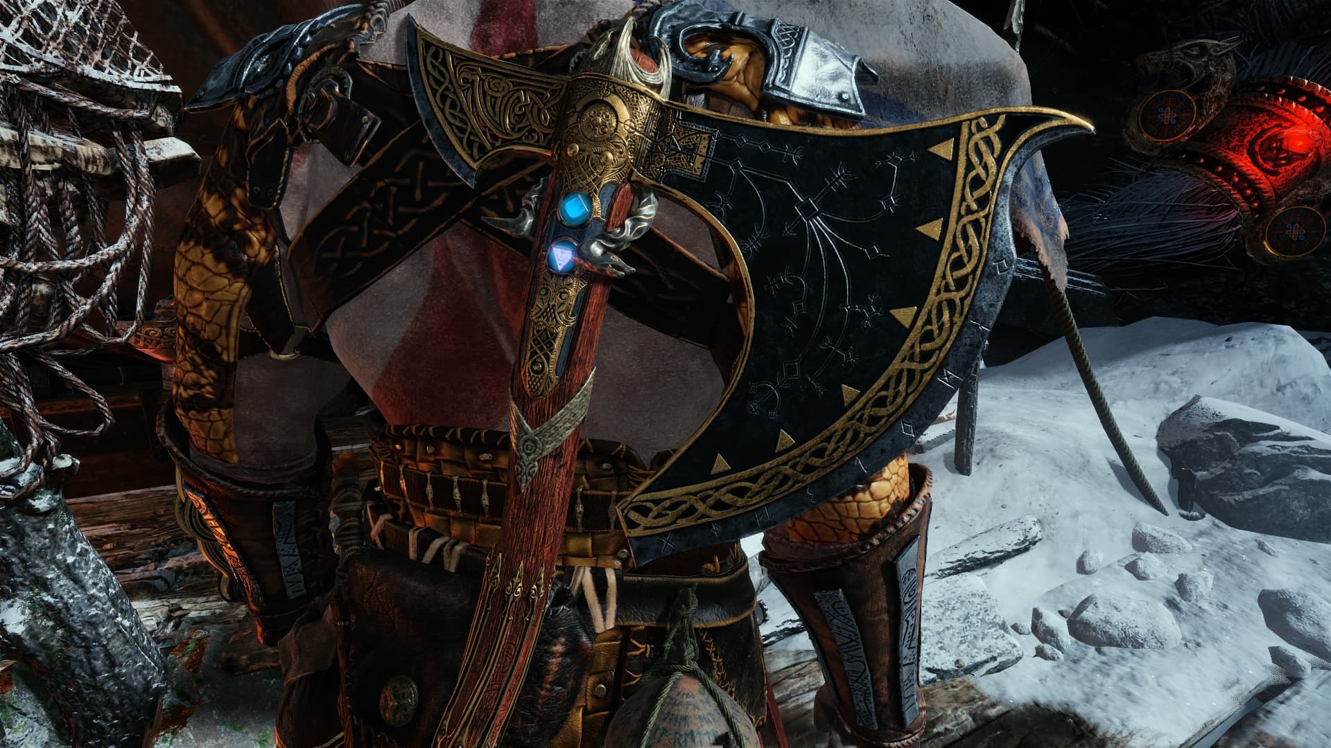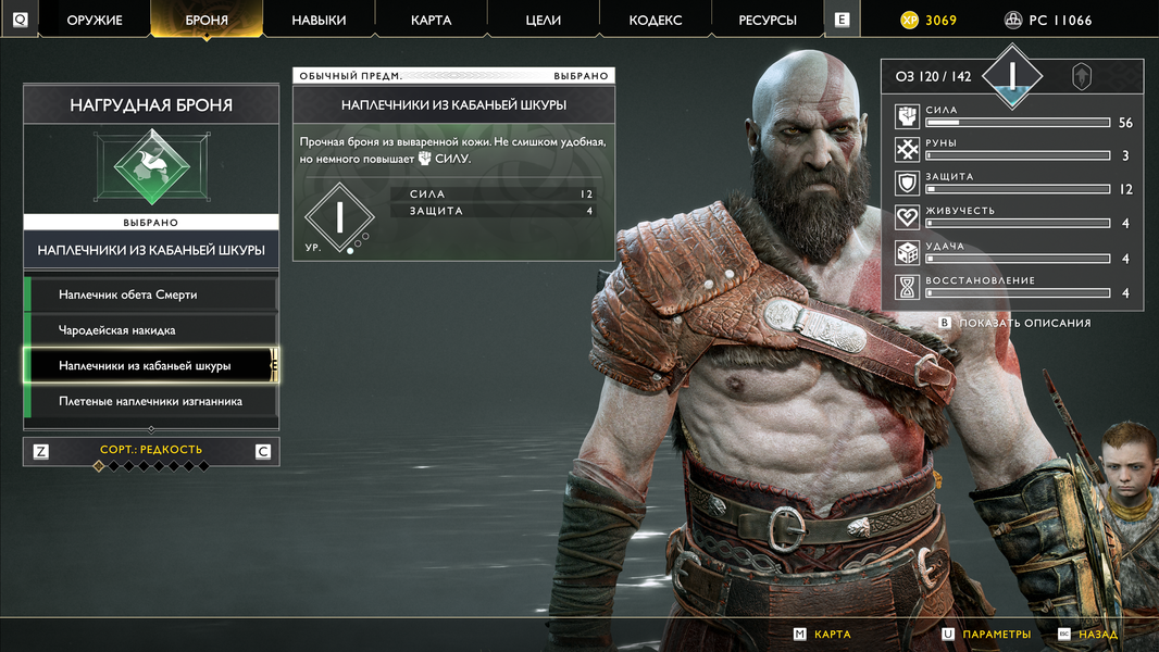 Обмундирование у Кратоса и Атрея разнообразное, вещи имеют разные характеристики и уникальный внешний вид. Топор Левиафан тоже можно апгрейдить, но для получения максимальной прокачки придется пройти особый путь заданий. Щиты внешне сильно не отличаются, но их характеристики могут быть разными. В процессе игры лук Атрея (стрелы и тетива) превращается из вполне обычного оружия в более божественное — вроде и ничего особенного, но без всего этого игра была бы не такой насыщенной, это очень важный момент.
