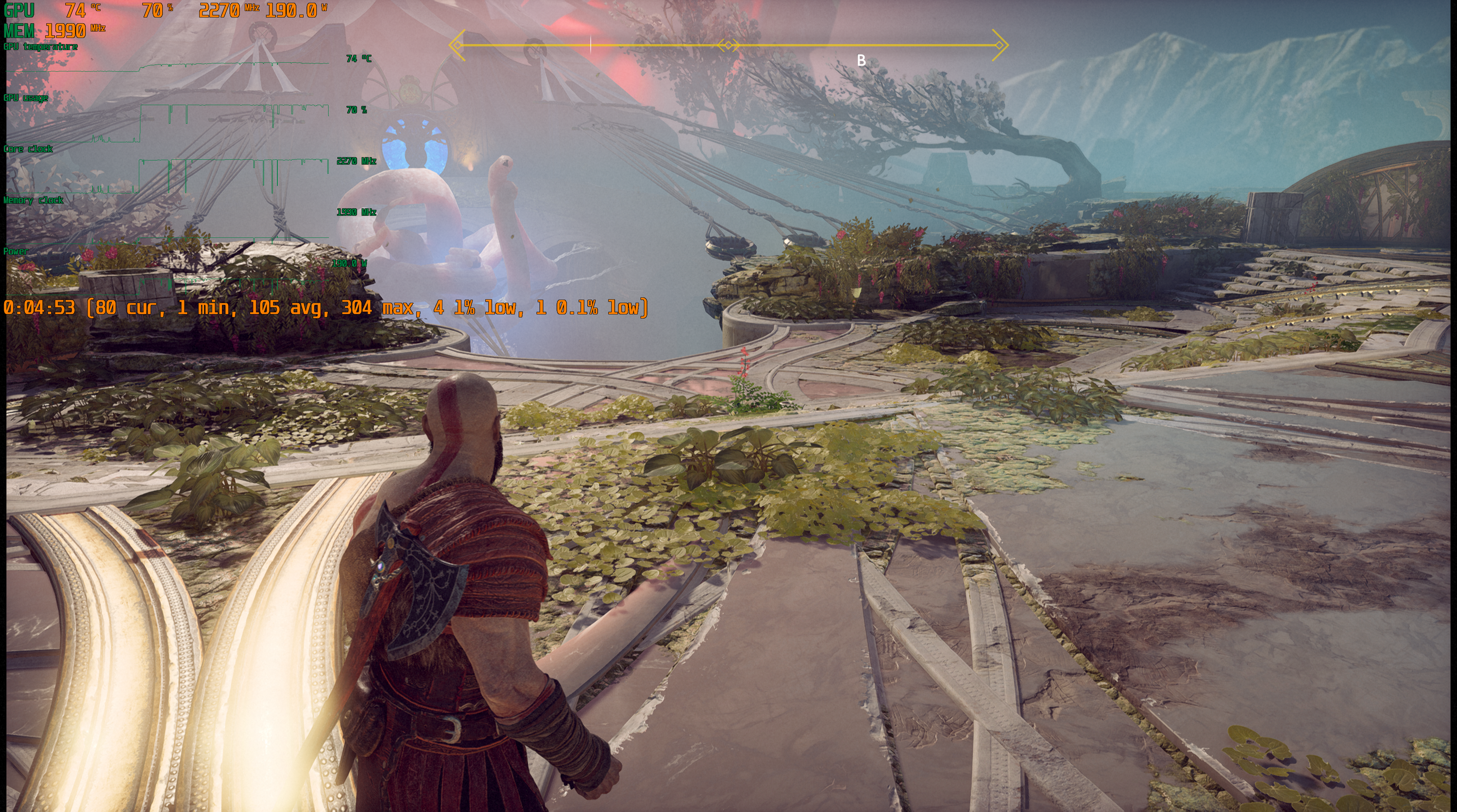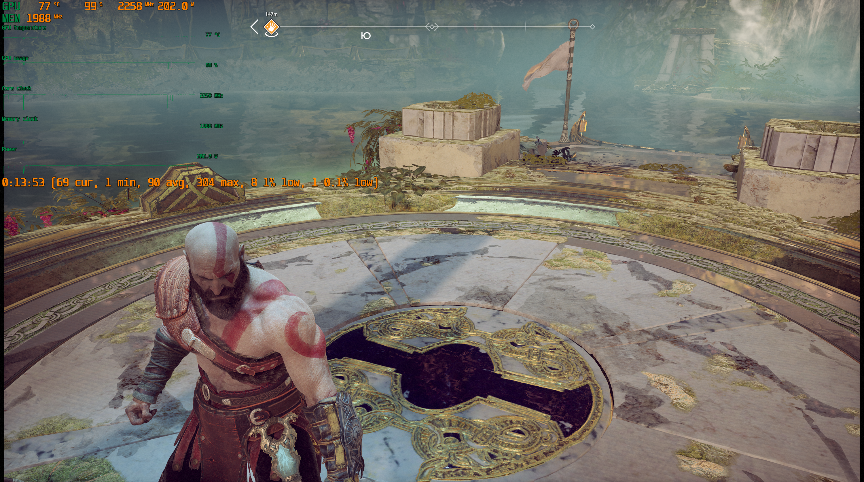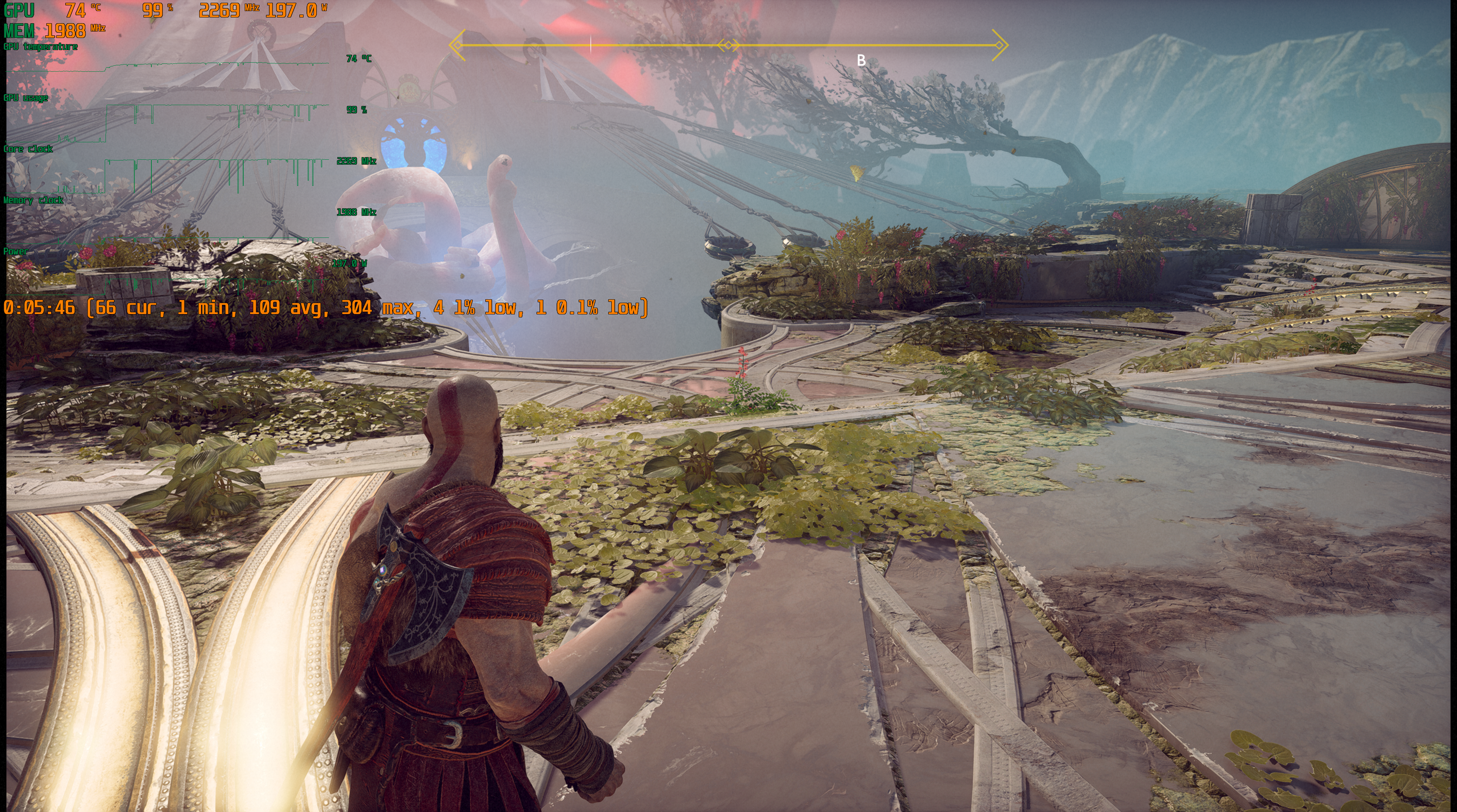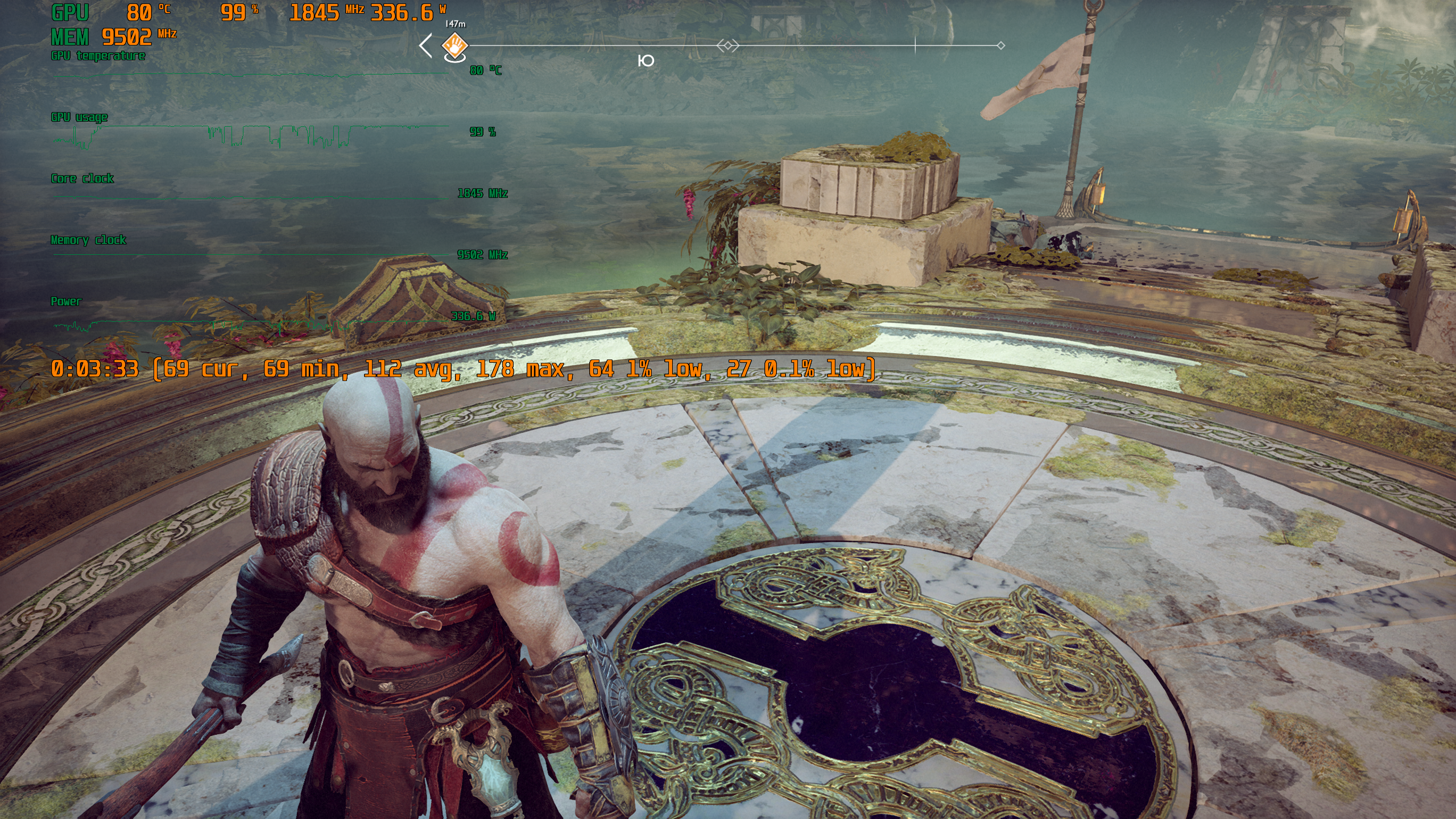 Игра поддерживает технологию Nvidia DLSS, и при использовании графических процессоров семейства GeForce RTX можно запускать God of War в повышенном разрешении, сохраняя высокий FPS. DLSS призвана обеспечивать максимальное качество изображения без ущерба для производительности.