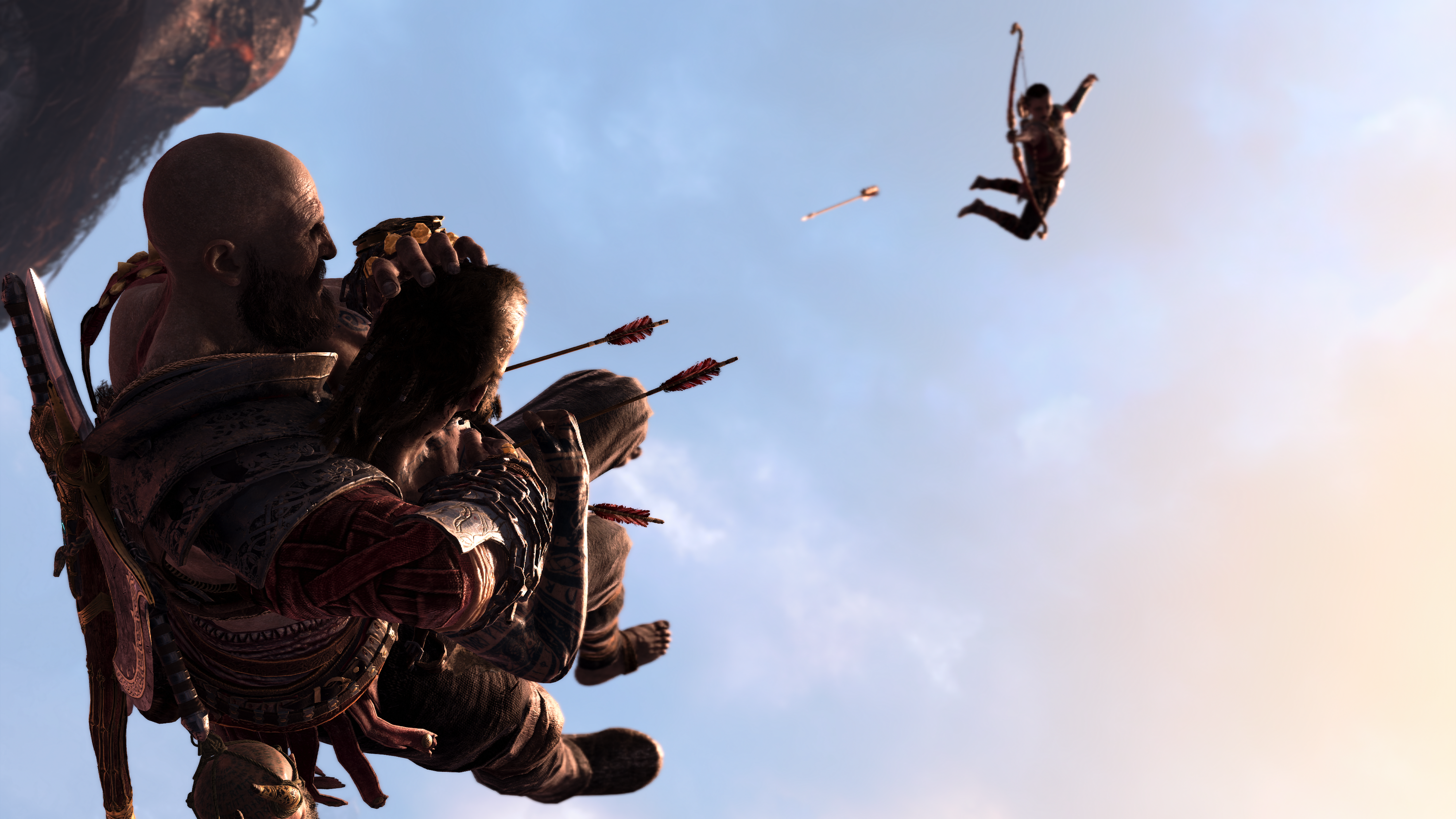 Апгрейд быстрого и любопытного сына тоже обеспечивает неплохую подмогу в битвах. Атрей с каждым изменением его одежды и лука превращается из юного охотника дальнего боя в очень приличного помощника и на ближних дистанциях. В процессе игры он осознает, что в нем течет божественная кровь. Выдержит он и удар от неугомонного бога Бальдра, которого впоследствии ждет кончина, но перед этим Атрей вонзит в того приличное количество стрел.