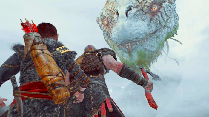 Фэй владела топором Левиафаном, который, как молот Тора, умеет возвращаться назад, и такое нововведение в игре выглядит круто. Кратос теперь орудует этим топором, а свой кинжал он подарил Атрею, и тот выручал его в некоторых эпизодах, когда лук уже не спасал.