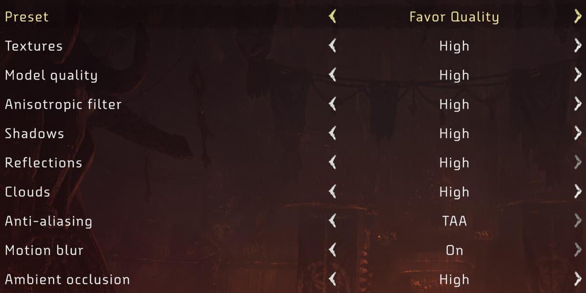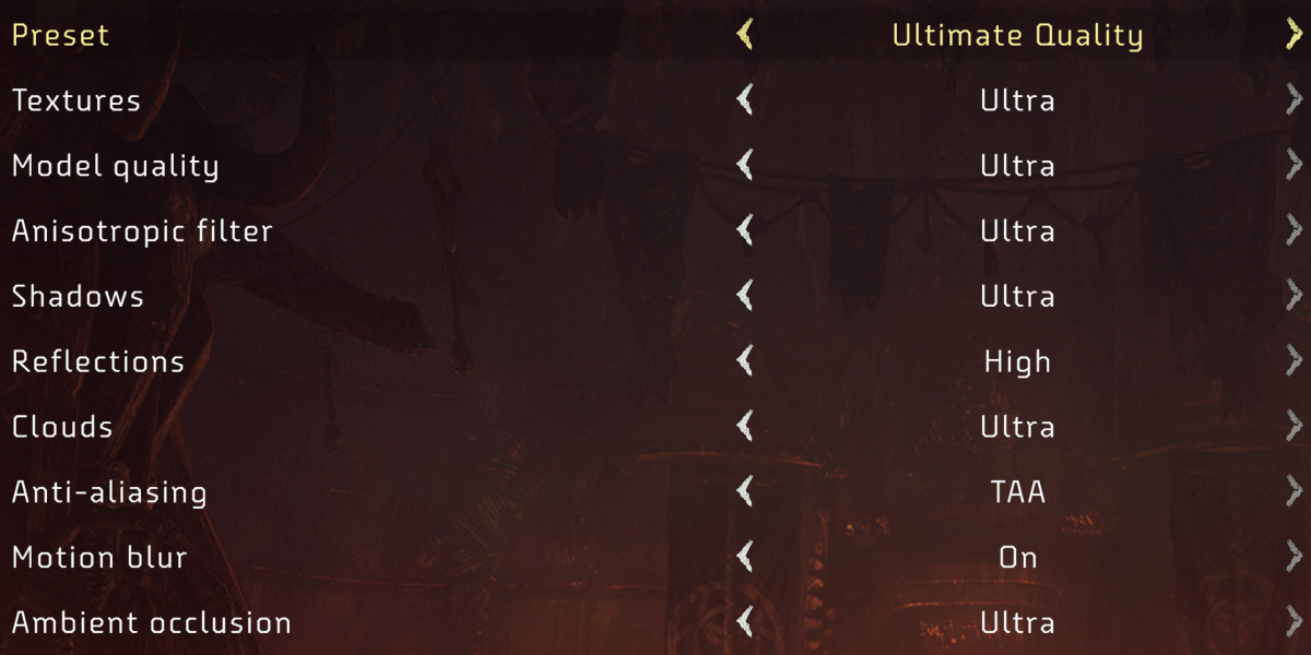 Интересно, что в отличие от большинства других игр с профилями качества графики типа Low, Medium, High и Ultra, в Horizon Zero Dawn они названы необычно: Favor Performance, Original, Favor Quality и Ultimate Quality. Профиль Original соответствует настройкам графики на консоли Sony PlayStation 4. И большинство ПК-игроков должны начинать с профиля Original, настраивая игру дальше под свои нужды, в зависимости от аппаратных возможностей.