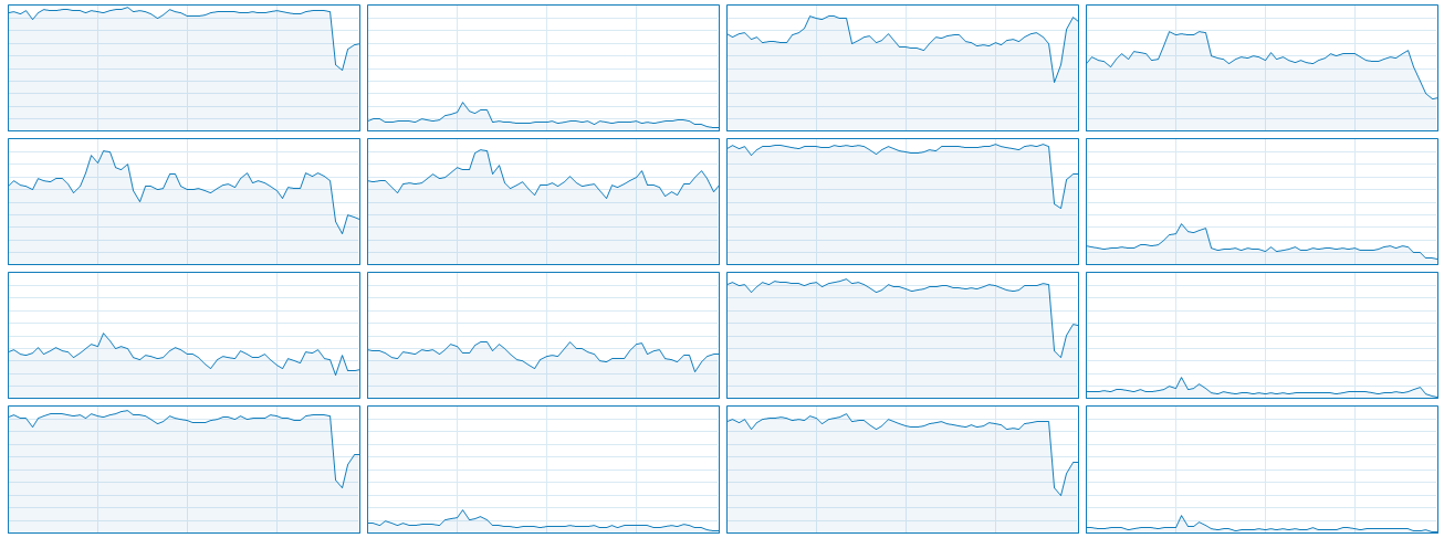 Общая загрузка ядер CPU в процессе тестирования и при средних и максимальных настройках в разрешении Full HD на топовой GeForce RTX 2080 Ti в среднем составила порядка 35%-40% с редкими пиками, а вот GPU при этом частенько простаивал, требуя большего разрешения рендеринга. Вот как выглядит график загрузки процессора: