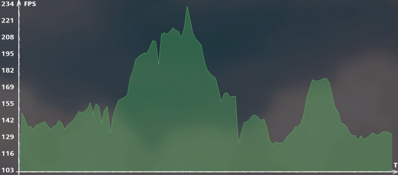 Видим некоторую разницу в скорости разных моделей CPU. Увы, от упора в мощность GPU в условиях всего лишь Full HD и средних настроек качества мы уйти не смогли, но разницу между протестированными процессорами все же видно, хотя частота кадров для всех решений в любом случае весьма высока. Но мы исходим из того, что стабильные 144 FPS и выше могут пригодиться в сетевых играх с соревновательной составляющей, и обеспечение постоянной частоты кадров на высоком уровне может быть востребовано игроками.