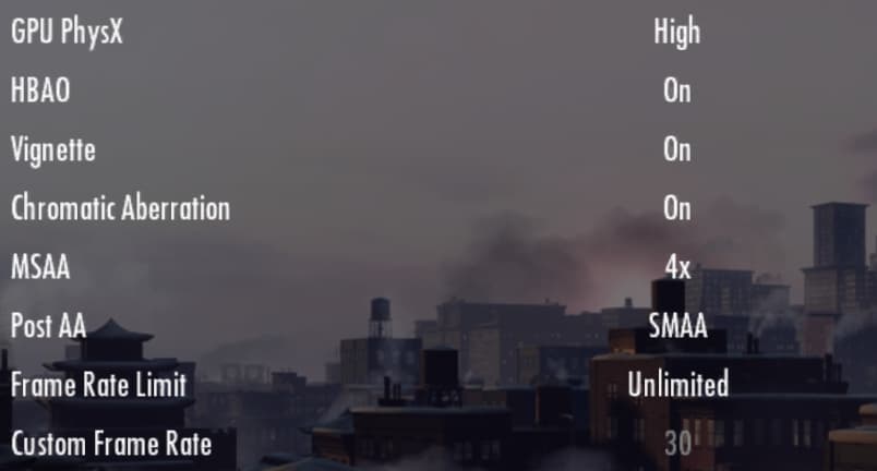 В этой игре почти все зависит от значения параметра GPU PhysX. Если вы предпочитаете выставить качество физических расчетов на максимум, и вам хватает плавности, то все остальные параметры графики очень часто можно также максимизировать без явного влияния на FPS. А вот если «физика» стоит на среднем уровне качества или отключена, и плавности все равно нет, то стоит обратить особое внимание на HBAO и MSAA. Все остальное сказывается на скорости не особенно сильно. По крайней мере, на нашей тестовой системе получилось именно так.