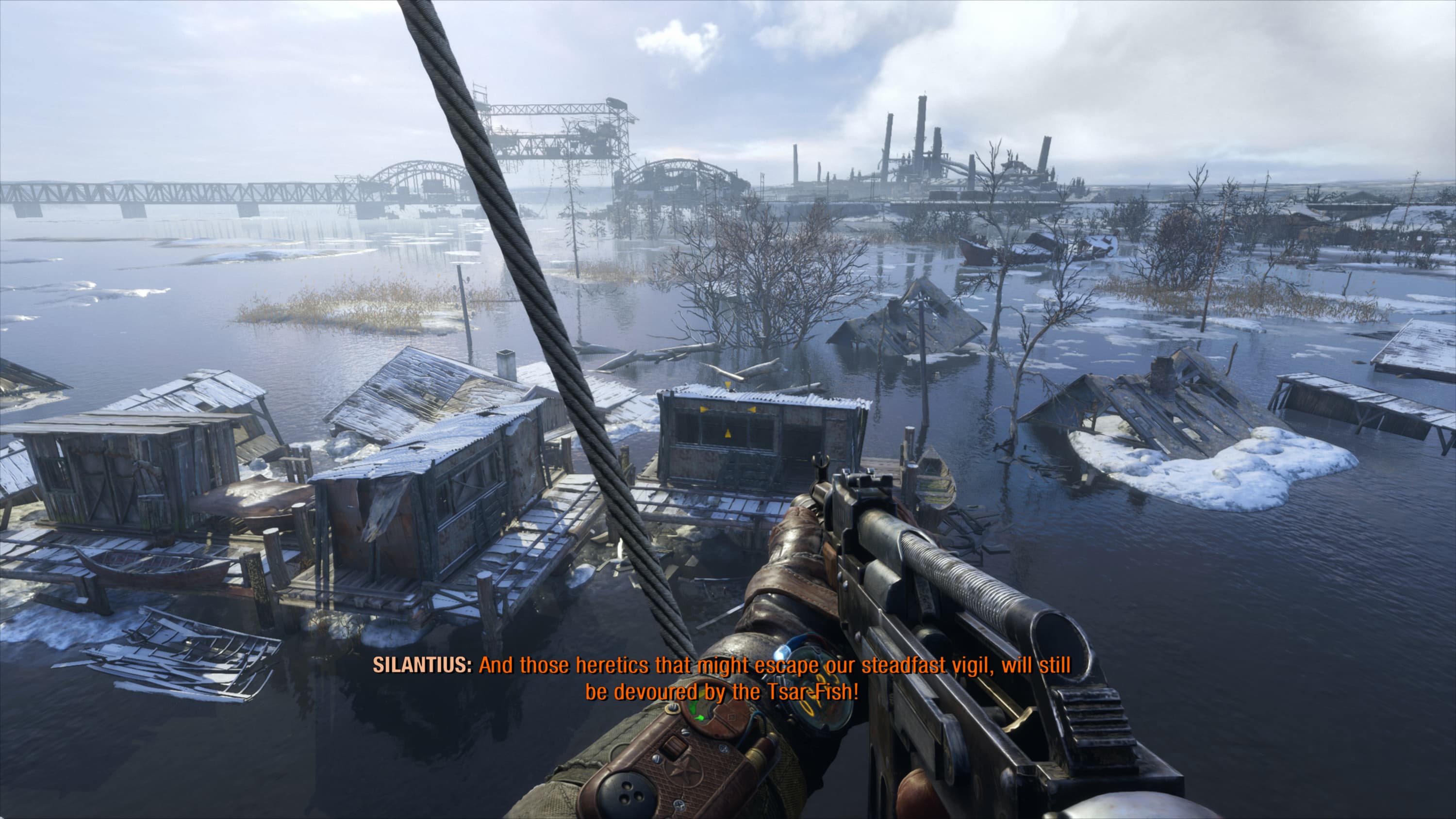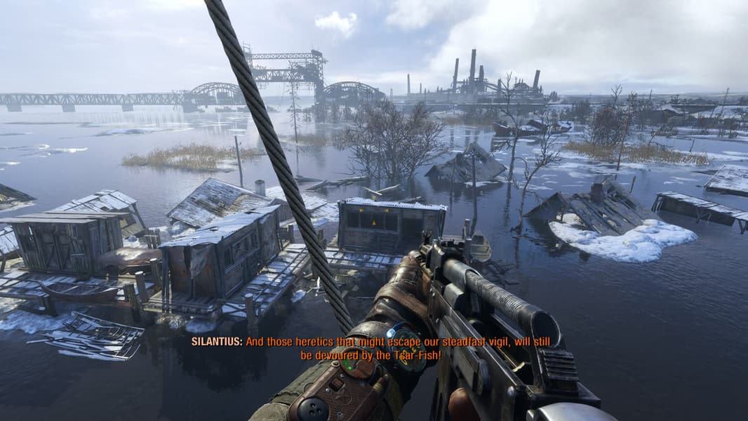 Для нас же главное в том, что в игре встречаются очень атмосферные локации со сменой времен года, времени суток и погоды. Визуальная часть Metro Exodus очень хороша! Все отлично проработано, локации в основном высокодетализированные и разнообразные, погода и время дня меняются в динамике, оружие со временем загрязняется, используется множество систем частиц (снег, пыль, искры и т. д.) с расчетом освещения и физического взаимодействия, и все это вместе выглядит просто отлично. Для увеличения детализации таких объектов, как колеса, бочки, вентили и т. д., а также для объемного отображения кирпичных стен, камней и других подобных материалов, активно используется тесселяция.