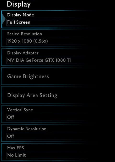 В игре есть два подменю, настройки в которых влияют на графику — в первом (Display) есть выбор разрешения рендеринга (разрешение вывода равно разрешению дисплея в Windows), полноэкранного или оконного режима вывода, настройка яркости экрана, возможность включить или выключить вертикальную синхронизацию, отрегулировать динамическое разрешение и выставить ограничитель частоты кадров. Для игры последние три может и полезны, а для тестирования мы их все отключили.