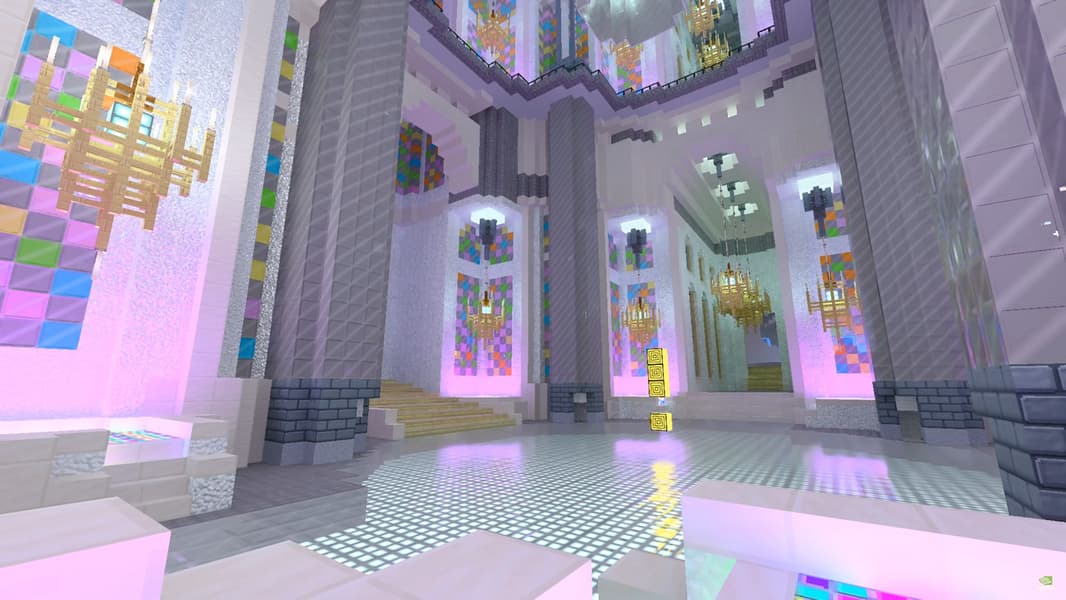 Расчет освещения и других вещей при помощи трассировки лучей серьезно увеличивают реалистичность отрисованной картинки в целом. Даже в намеренно упрощенном кубическом мире игры Minecraft. То же самое реалистичное освещение позволяет показать день и ночь в игре именно так, как они и должны быть в реальности, добавляя попиксельное динамическое освещение во всю сцену, включая глобальное. Например, лучи солнечного света, проникающие сквозь разноцветные витражи внутрь светлого замка в «Imagination Island RTX» выглядят довольно интересно: