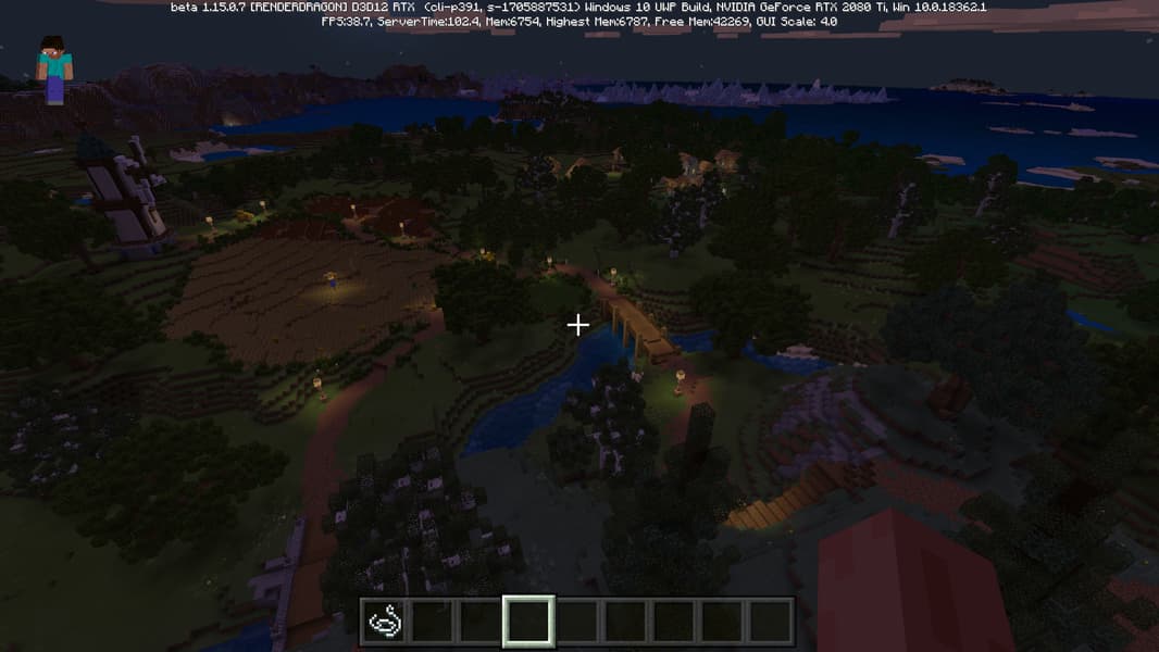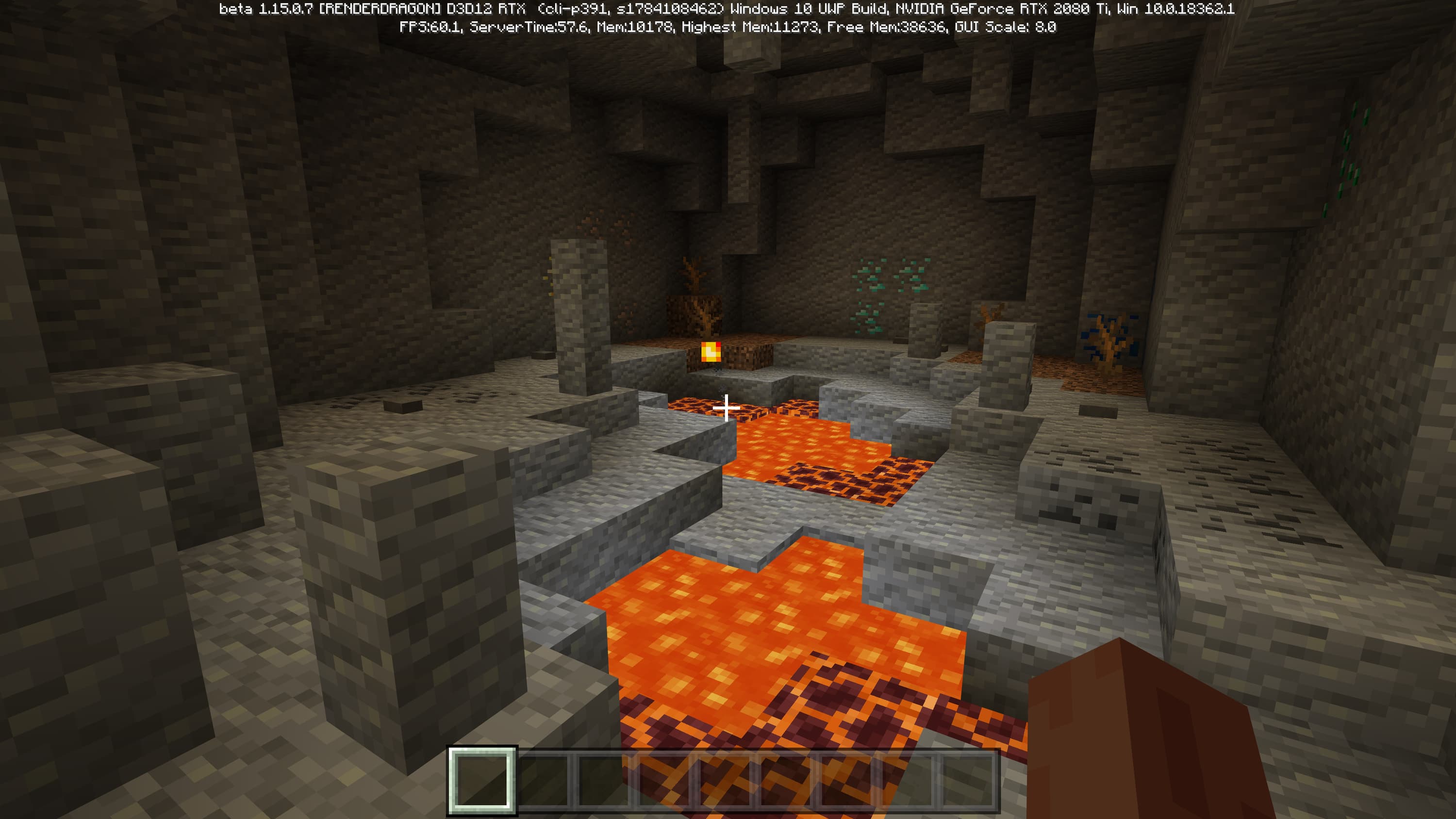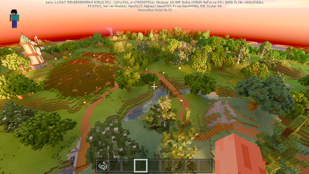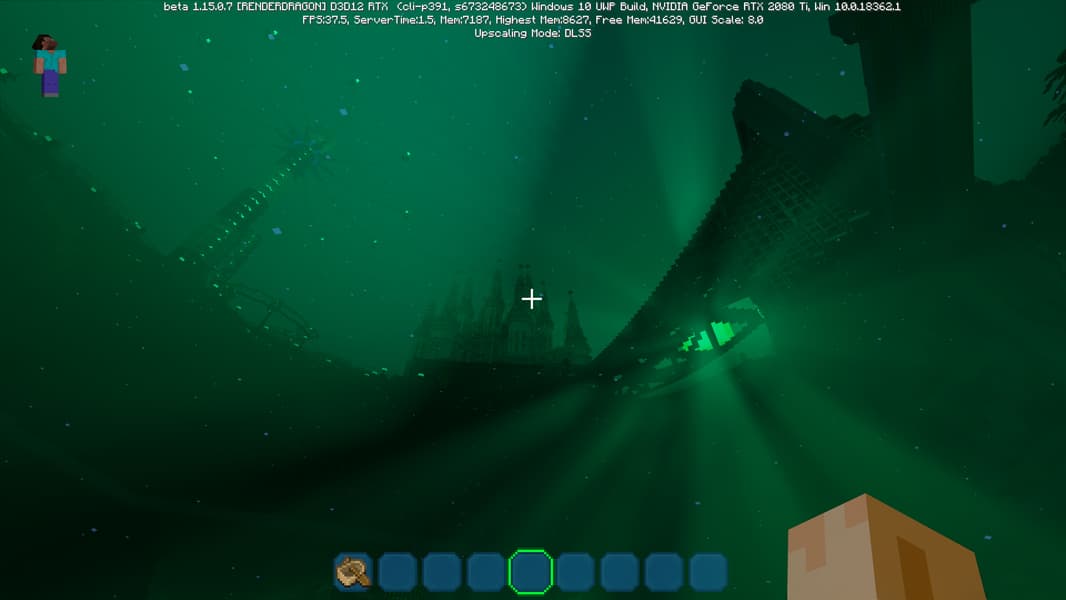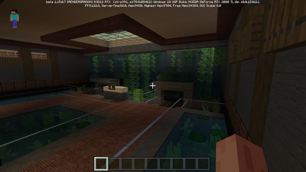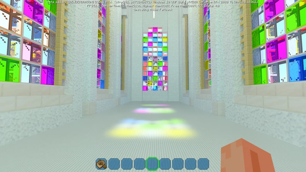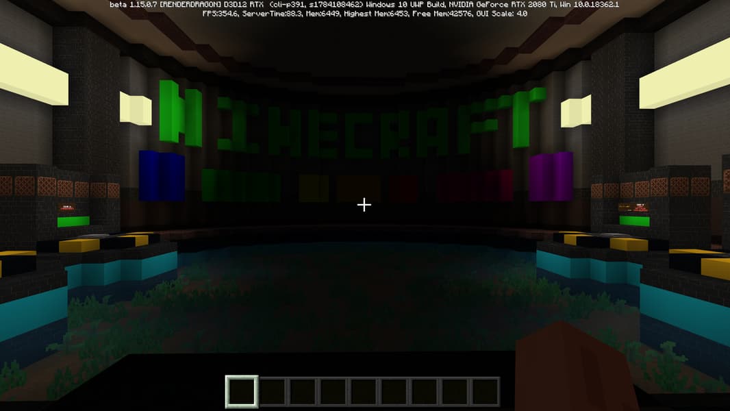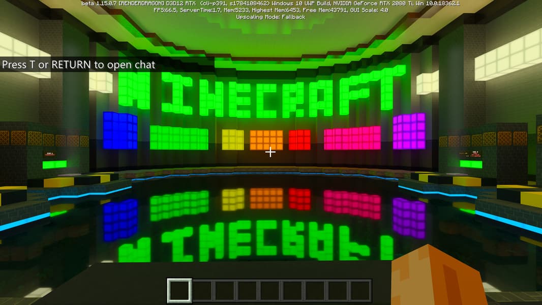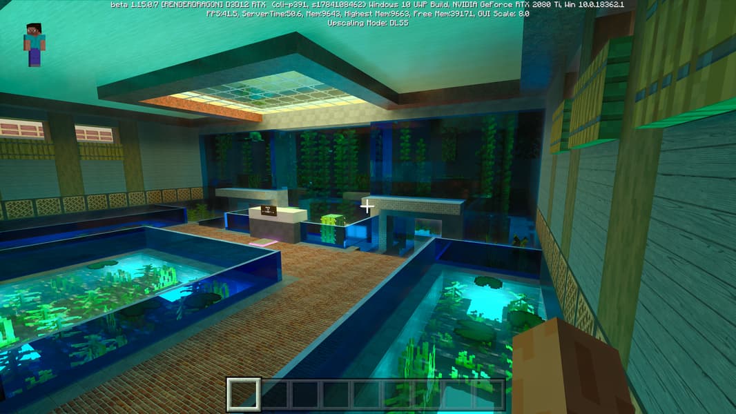 Специально для бета-версии Minecraft RTX компания Nvidia выпустила оптимизированный драйвер версии 445.87, который мы и использовали при ознакомлении с игрой. В минимальных системных требованиях трассированной версии игры указана модель GeForce RTX 2060, так как это самый слабый GPU с аппаратной поддержкой DXR API и наличием тензорных ядер, необходимых для работы DLSS 2.0. Так как полная трассировка пути очень требовательна, то запуск трассированной версии на решениях семейства Pascal невозможен, поскольку даже мощная GeForce GTX 1080 Ti не даст необходимой производительности при включенной трассировке.
