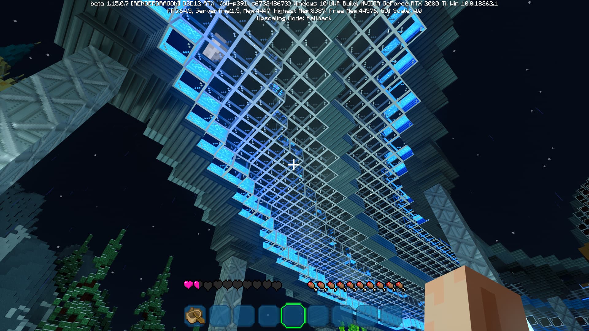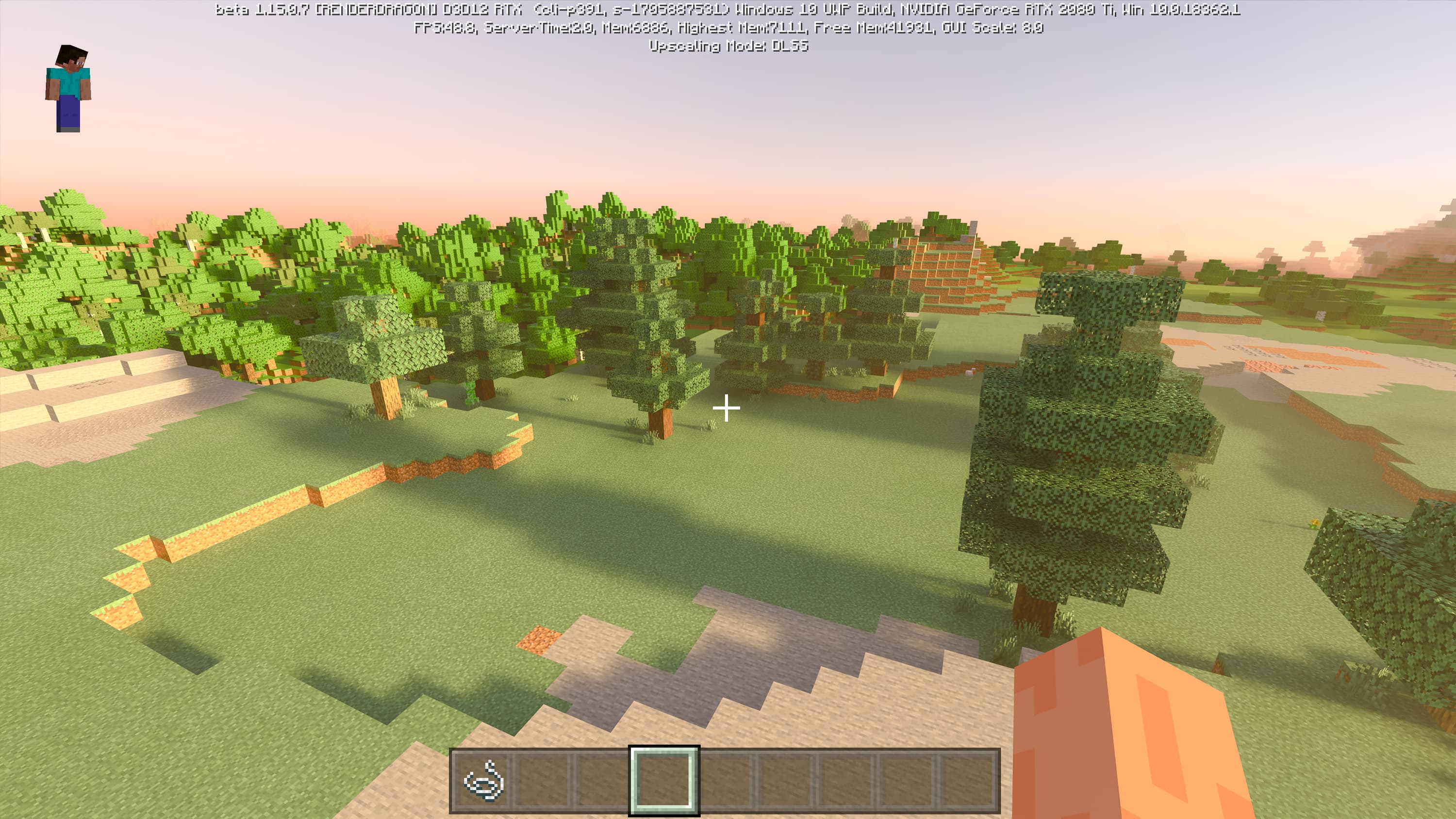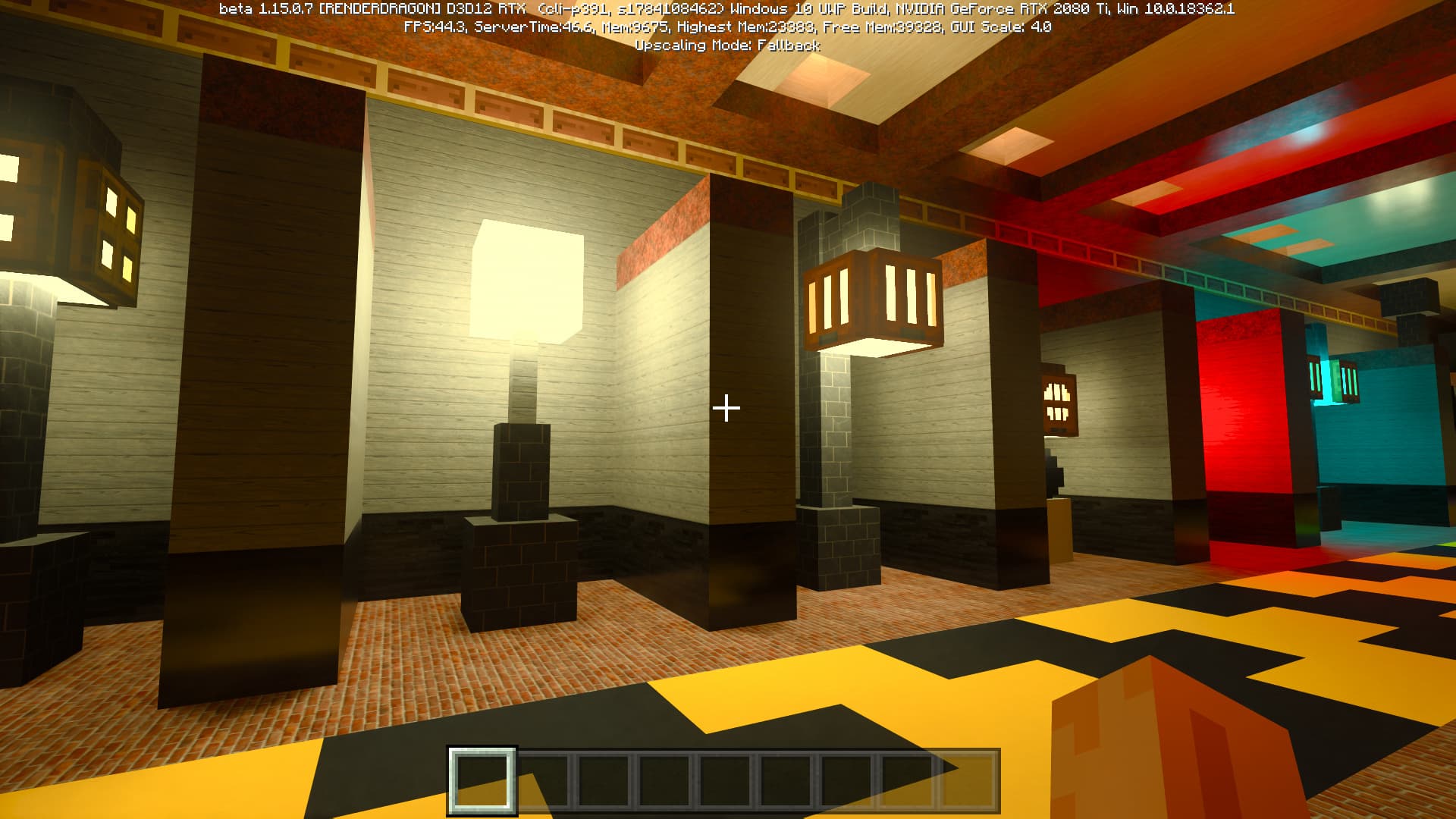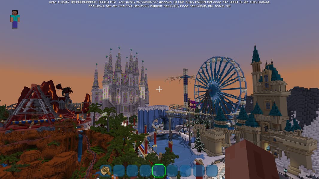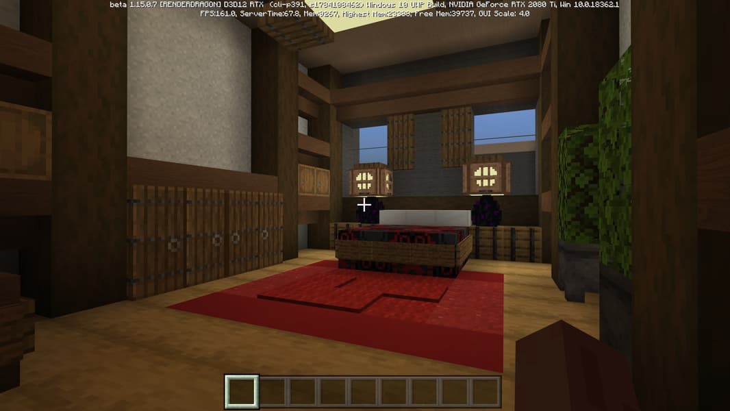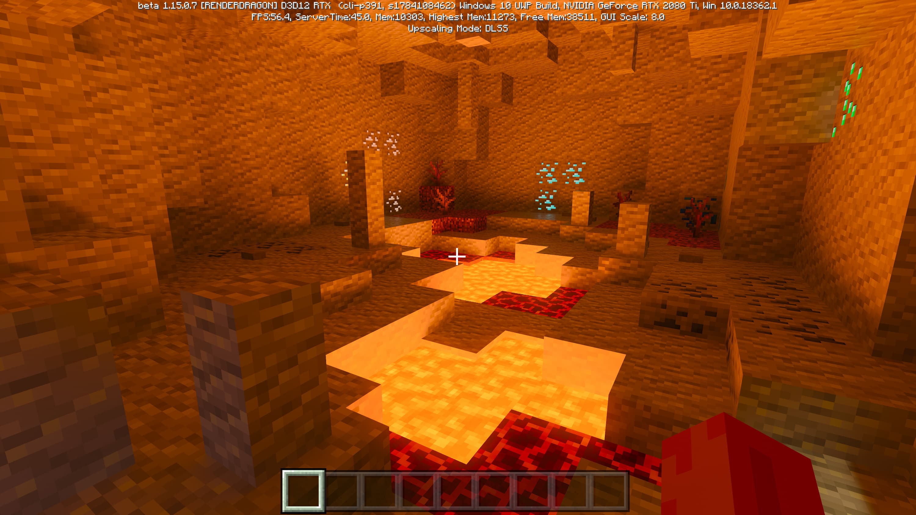 Специально для бета-версии Minecraft RTX компания Nvidia выпустила оптимизированный драйвер версии 445.87, который мы и использовали при ознакомлении с игрой. В минимальных системных требованиях трассированной версии игры указана модель GeForce RTX 2060, так как это самый слабый GPU с аппаратной поддержкой DXR API и наличием тензорных ядер, необходимых для работы DLSS 2.0. Так как полная трассировка пути очень требовательна, то запуск трассированной версии на решениях семейства Pascal невозможен, поскольку даже мощная GeForce GTX 1080 Ti не даст необходимой производительности при включенной трассировке.