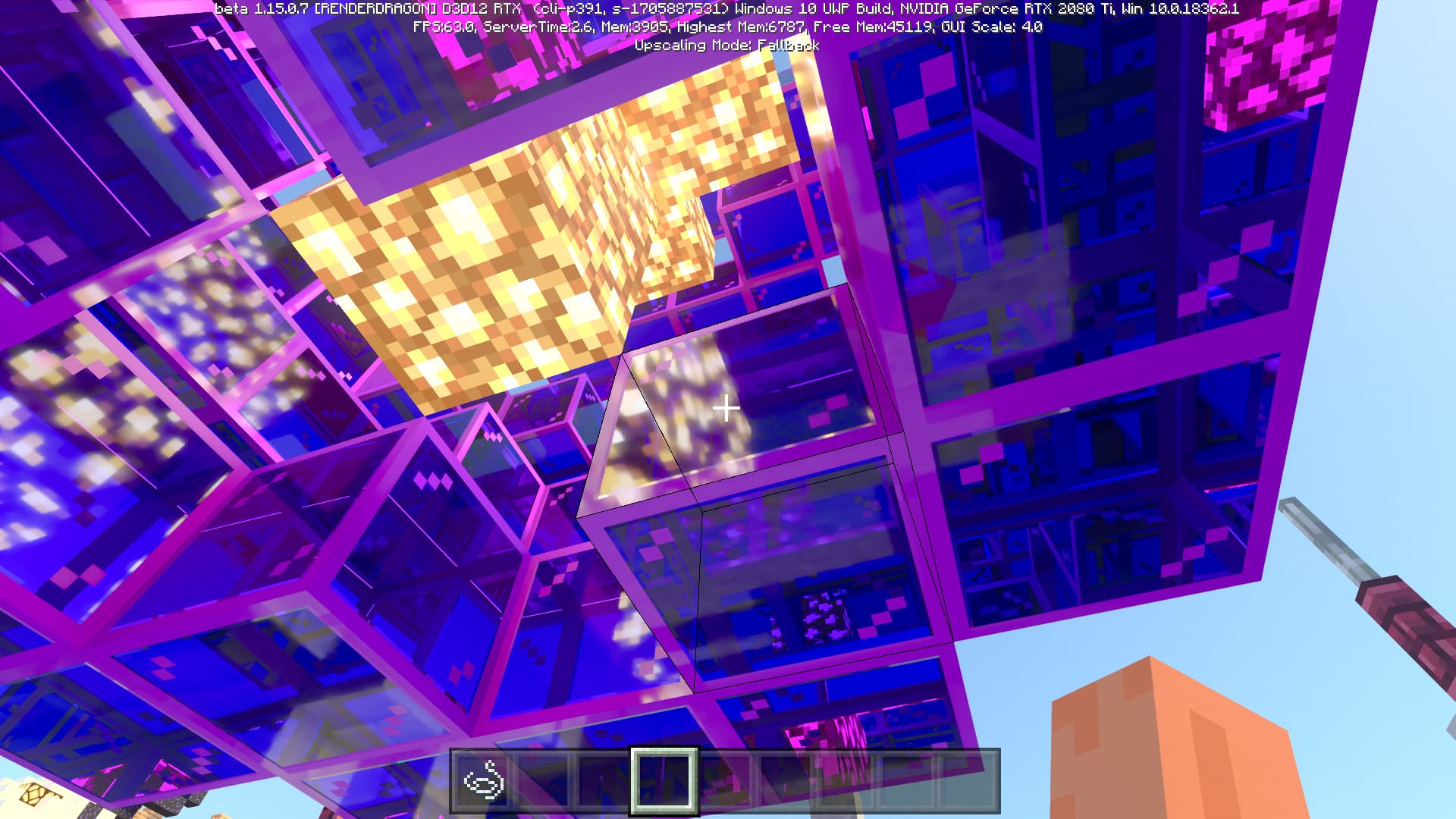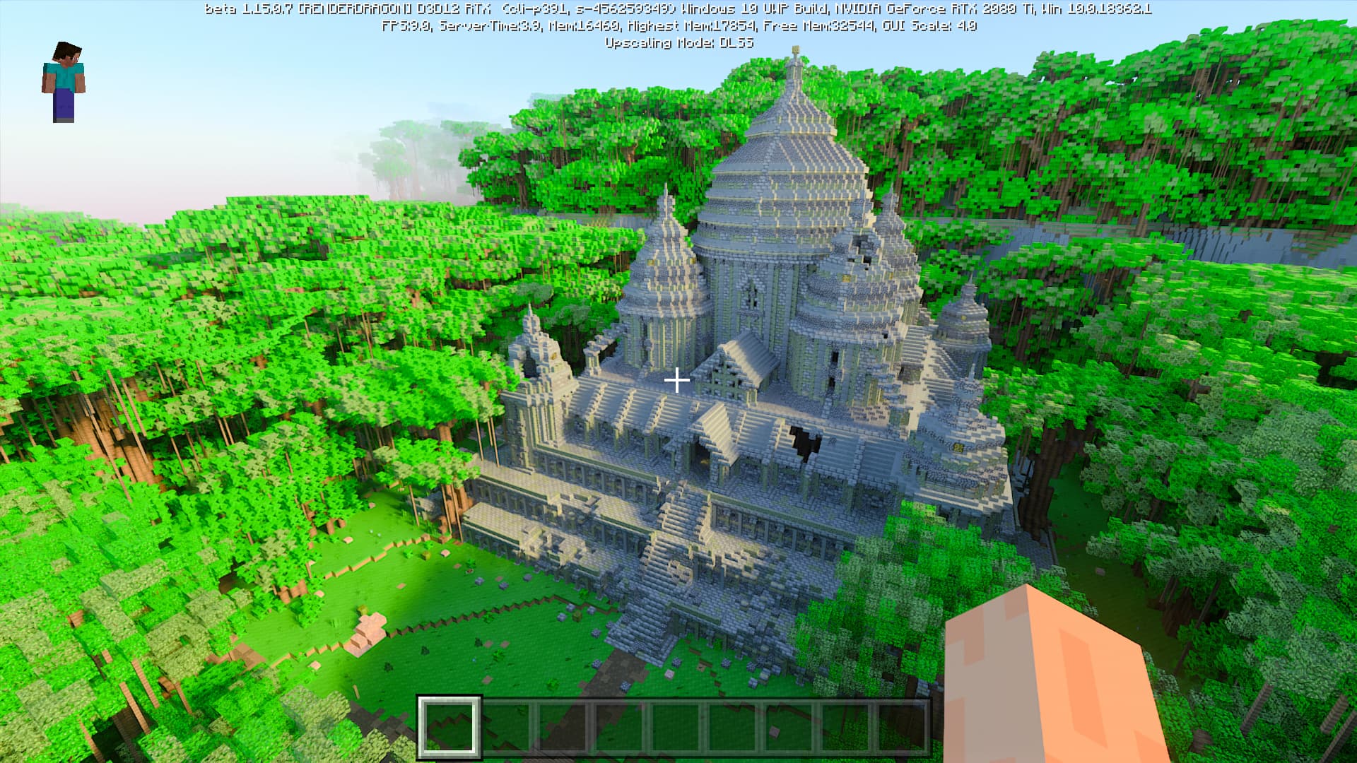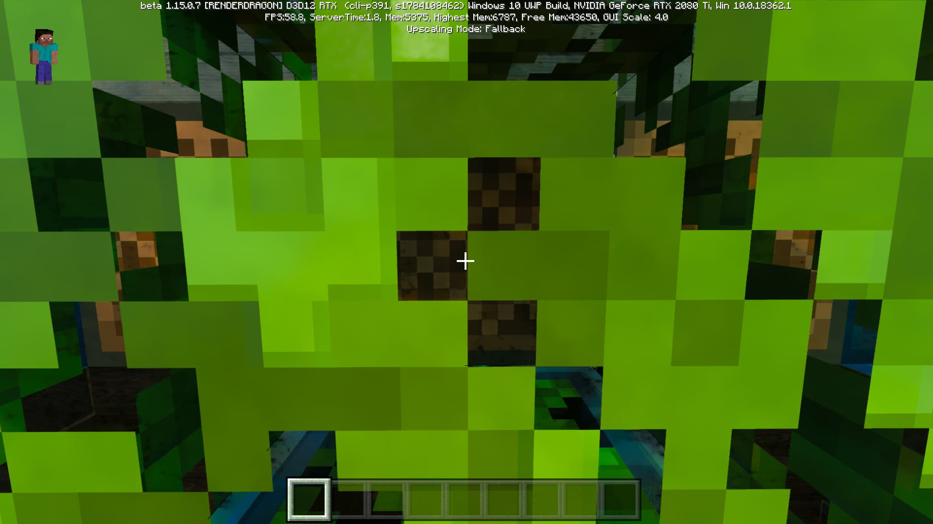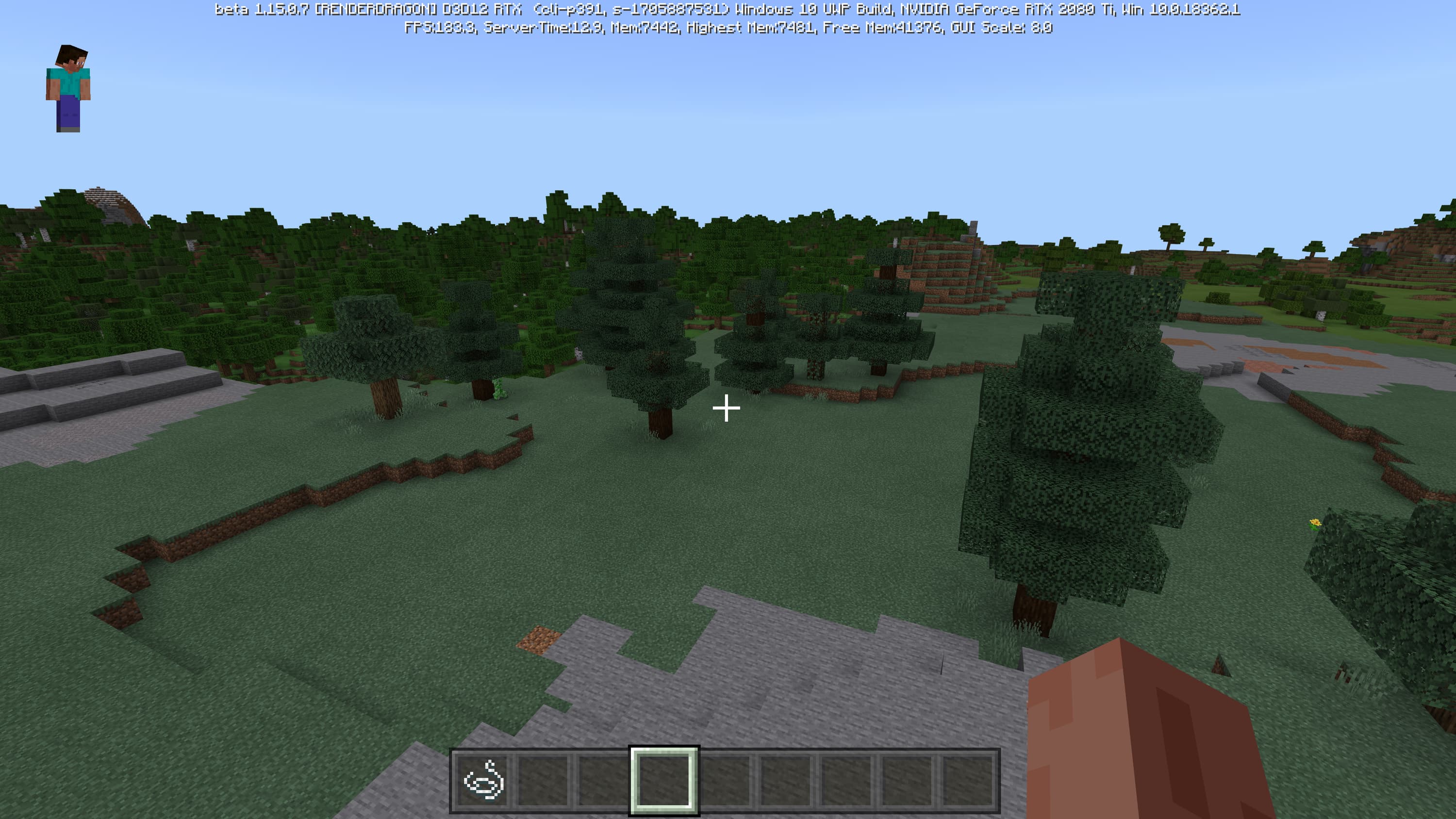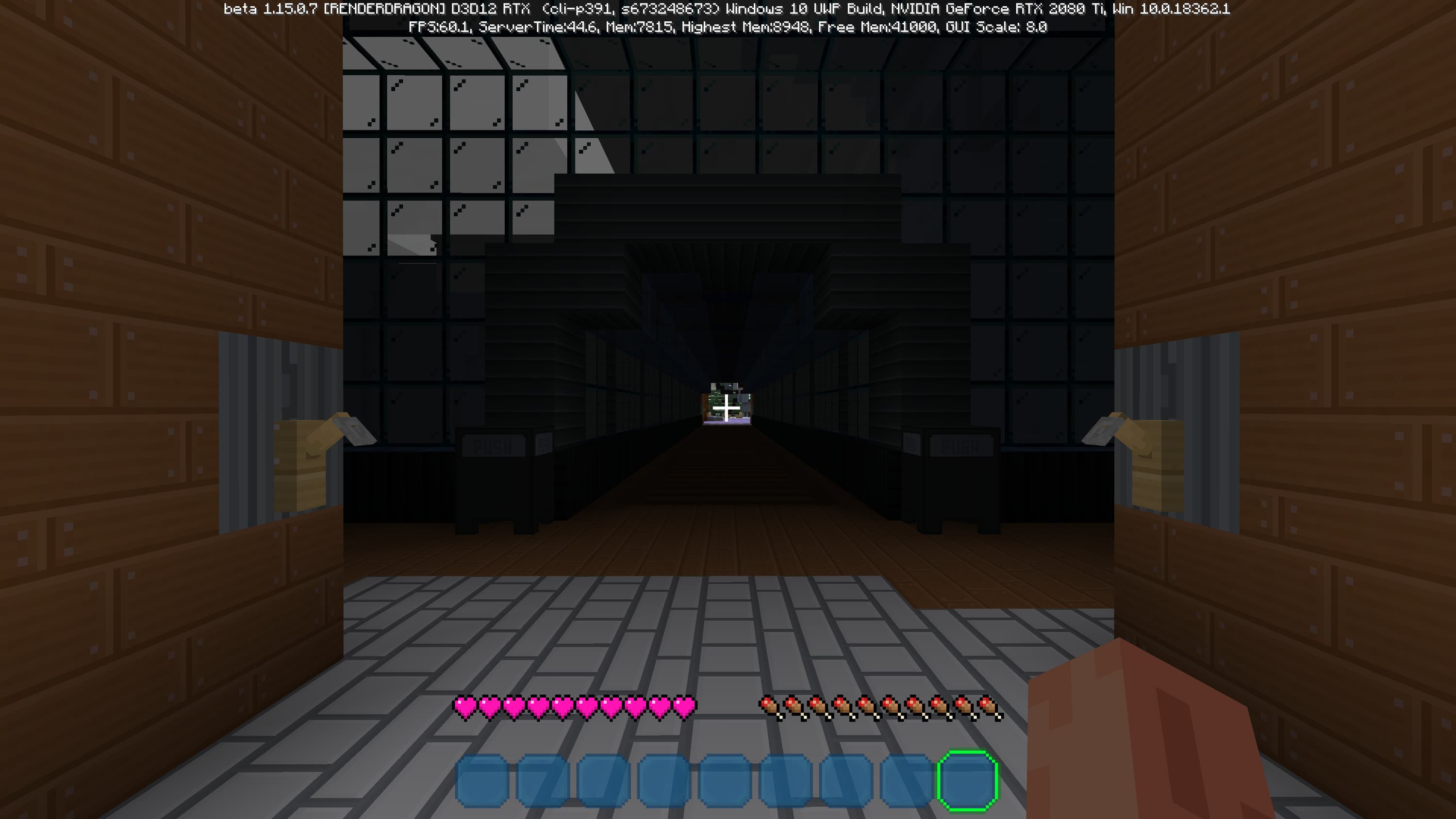 Специально для бета-версии Minecraft RTX компания Nvidia выпустила оптимизированный драйвер версии 445.87, который мы и использовали при ознакомлении с игрой. В минимальных системных требованиях трассированной версии игры указана модель GeForce RTX 2060, так как это самый слабый GPU с аппаратной поддержкой DXR API и наличием тензорных ядер, необходимых для работы DLSS 2.0. Так как полная трассировка пути очень требовательна, то запуск трассированной версии на решениях семейства Pascal невозможен, поскольку даже мощная GeForce GTX 1080 Ti не даст необходимой производительности при включенной трассировке.