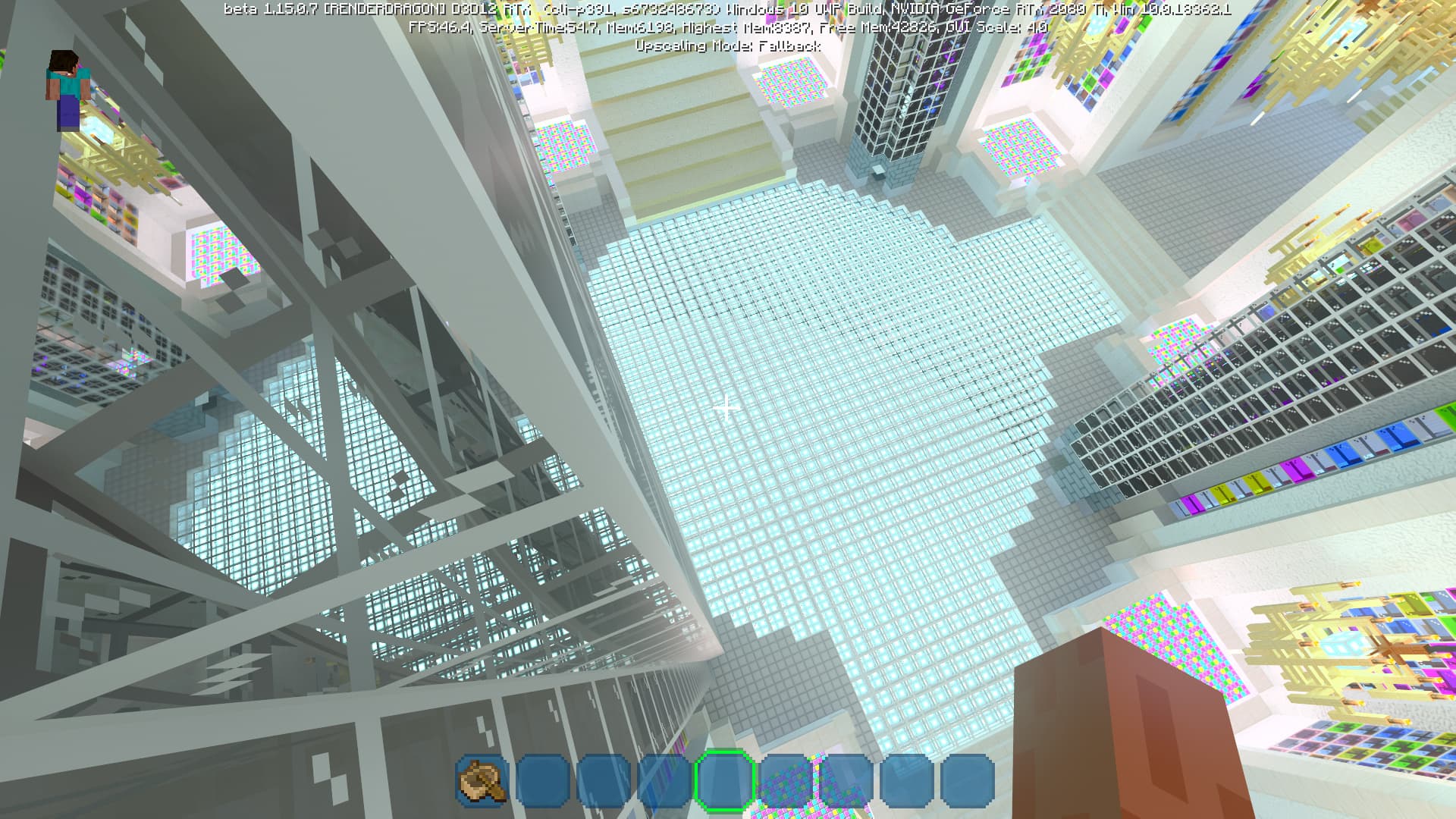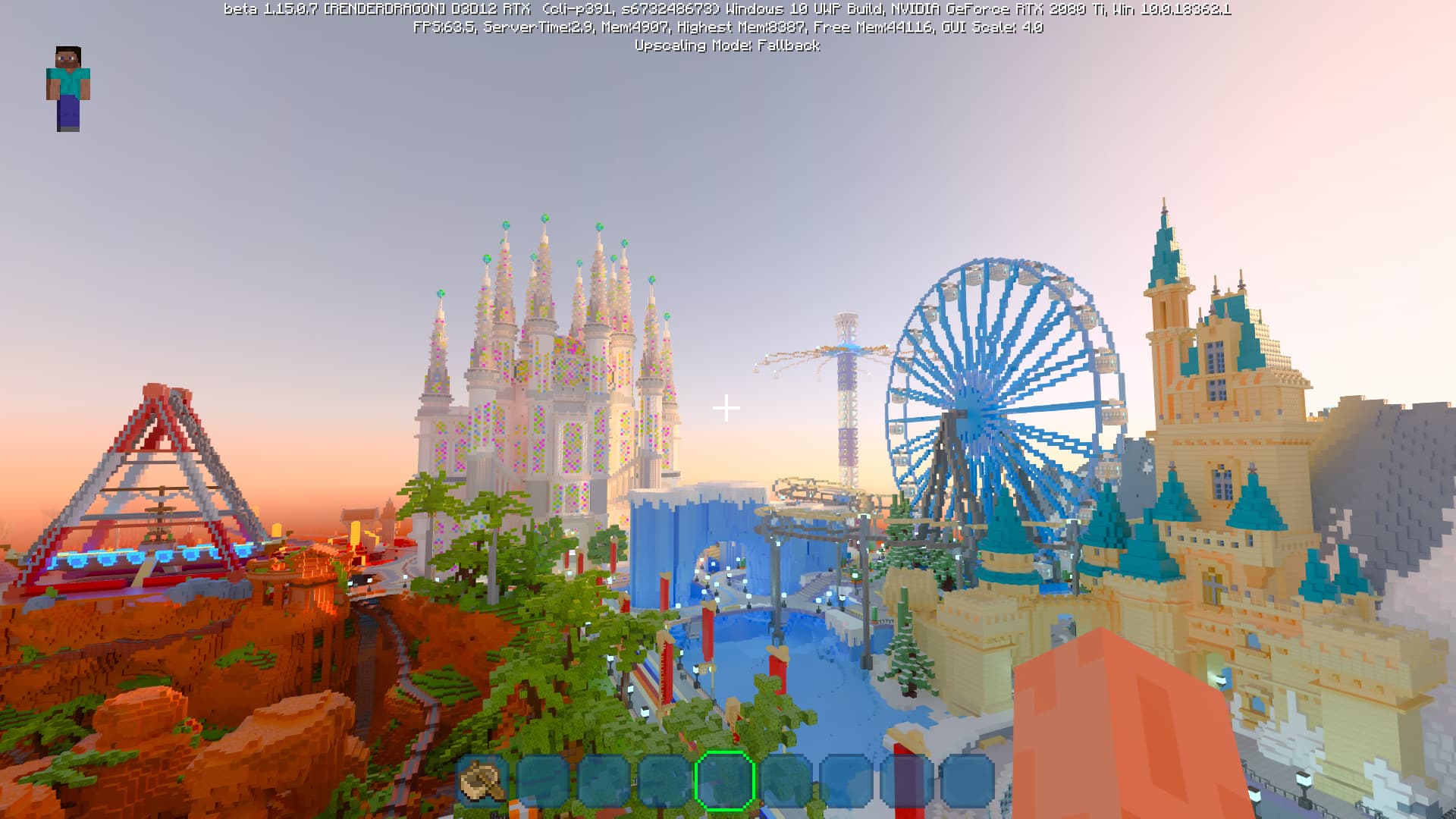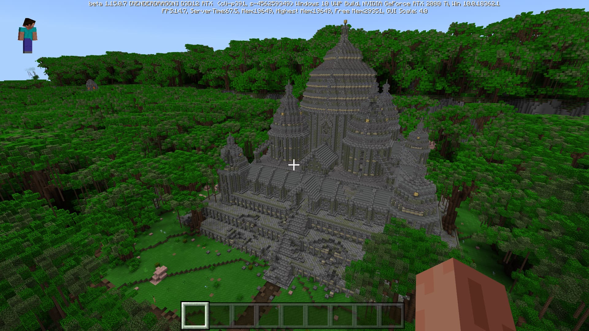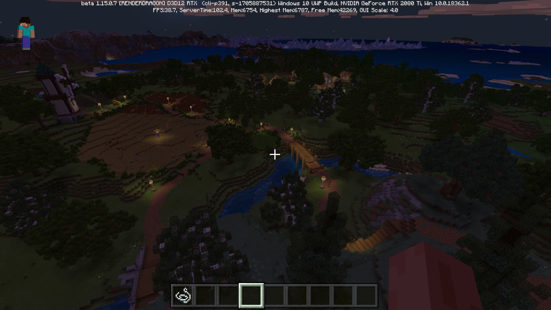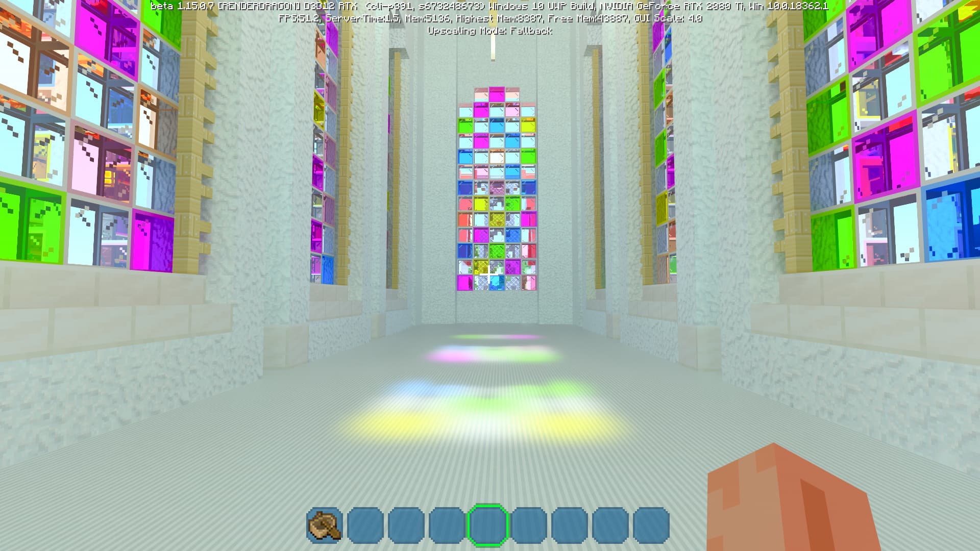 Специально для бета-версии Minecraft RTX компания Nvidia выпустила оптимизированный драйвер версии 445.87, который мы и использовали при ознакомлении с игрой. В минимальных системных требованиях трассированной версии игры указана модель GeForce RTX 2060, так как это самый слабый GPU с аппаратной поддержкой DXR API и наличием тензорных ядер, необходимых для работы DLSS 2.0. Так как полная трассировка пути очень требовательна, то запуск трассированной версии на решениях семейства Pascal невозможен, поскольку даже мощная GeForce GTX 1080 Ti не даст необходимой производительности при включенной трассировке.