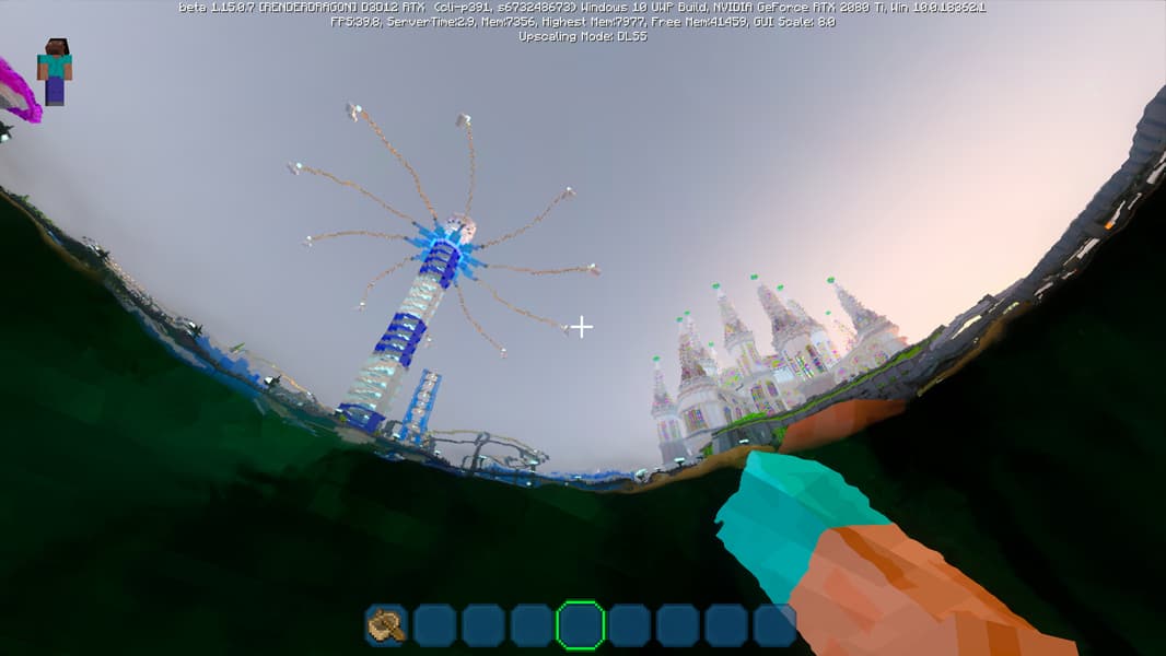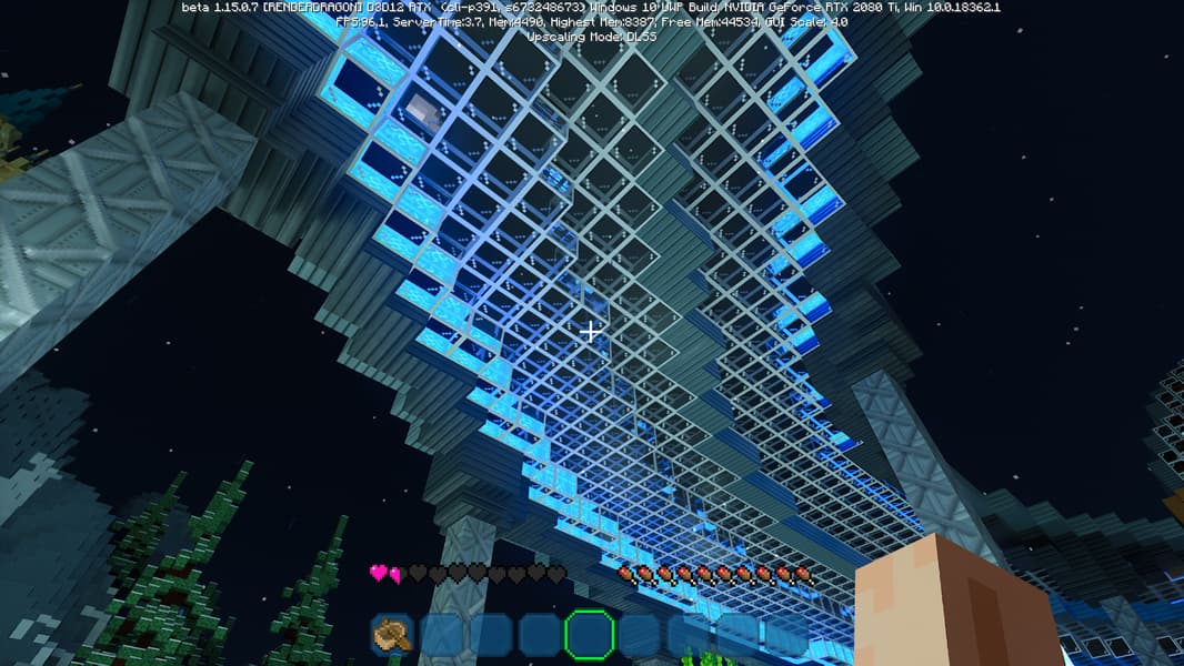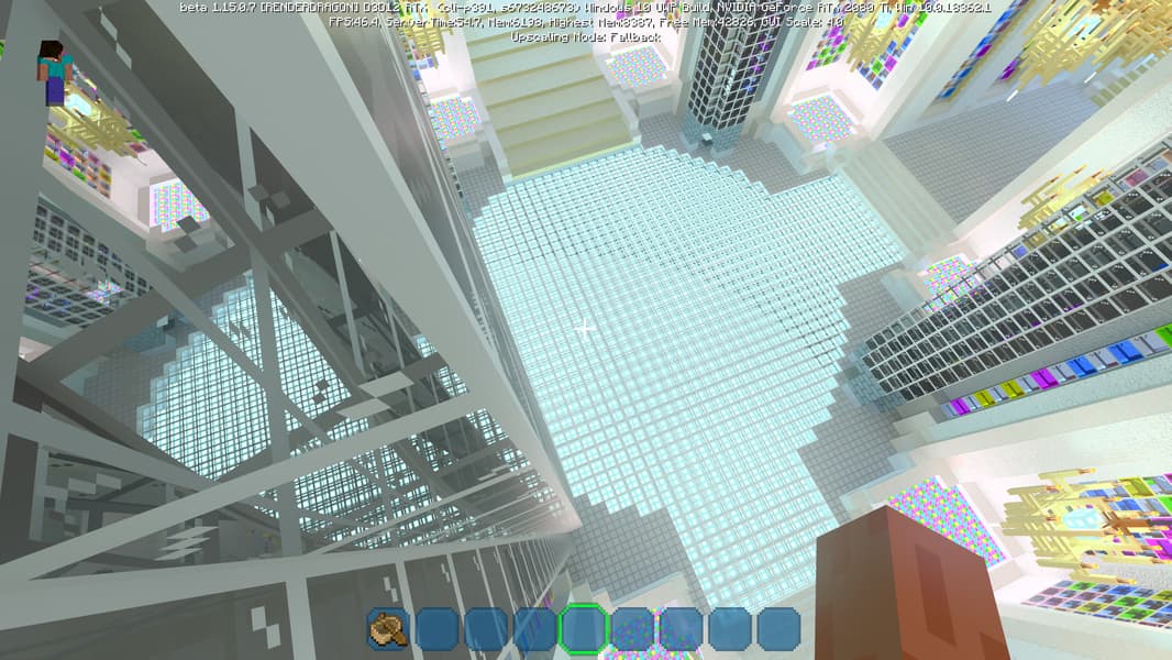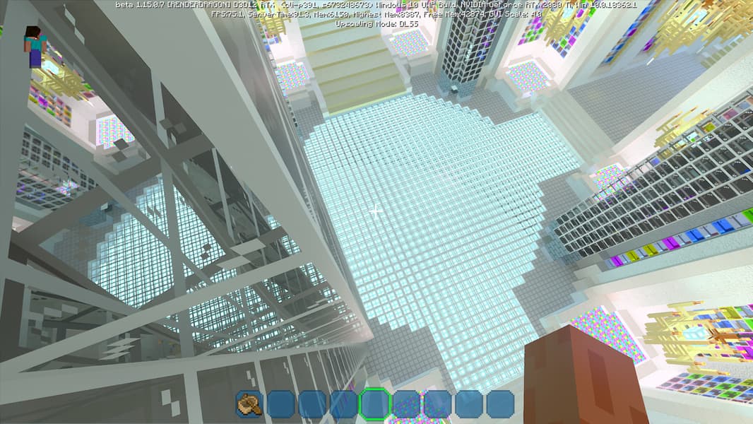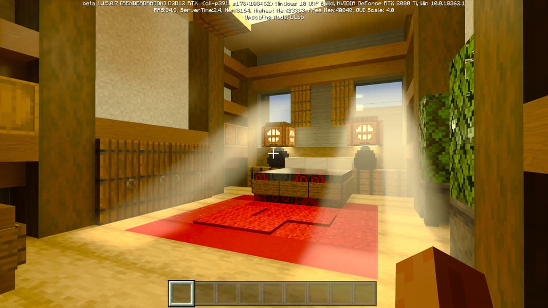 DLSS 2.0 предлагает три режима качества: Quality, Balanced и Performance. Некоторые из них имеют свои ограничения, но режим Performance можно использовать вплоть до четырехкратного увеличения разрешения! Конкретно в бета-версии Minecraft RTX технология DLSS 2.0 включается при помощи пункта «Upscaling» в меню продвинутых графических настроек и включена по умолчанию.