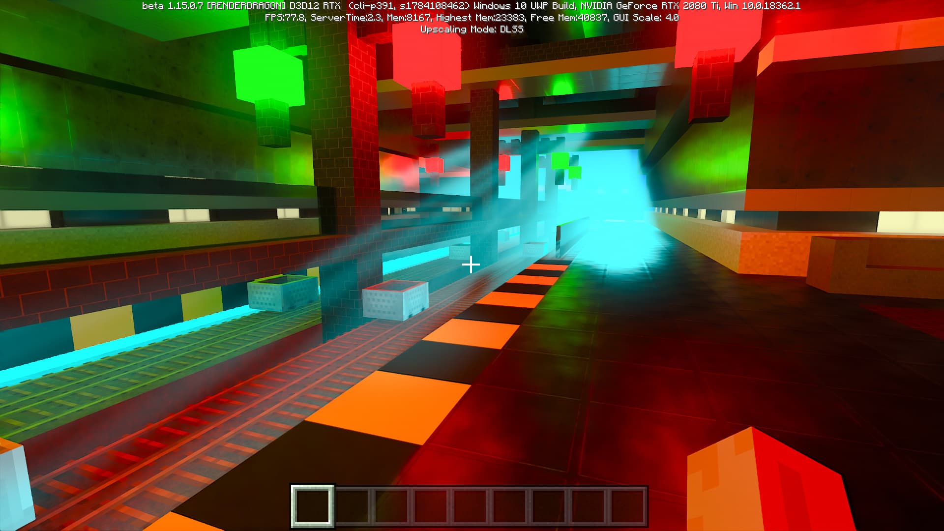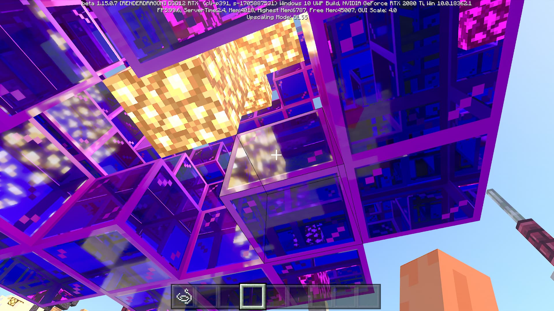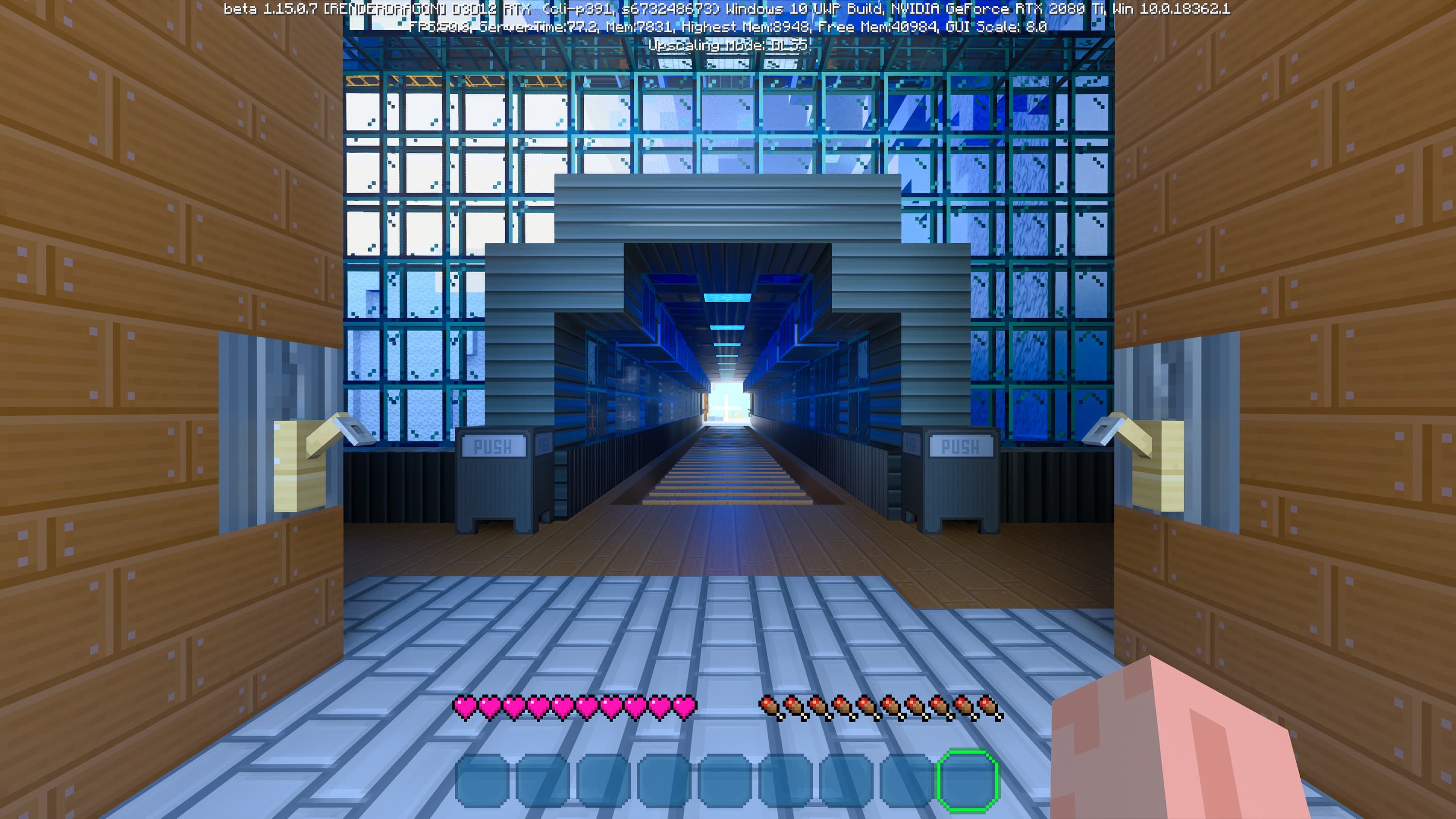 DLSS 2.0 предлагает три режима качества: Quality, Balanced и Performance. Некоторые из них имеют свои ограничения, но режим Performance можно использовать вплоть до четырехкратного увеличения разрешения! Конкретно в бета-версии Minecraft RTX технология DLSS 2.0 включается при помощи пункта «Upscaling» в меню продвинутых графических настроек и включена по умолчанию.