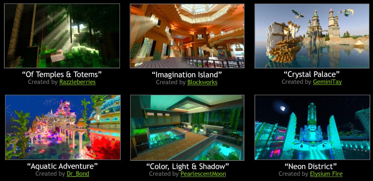Для начала RTX-экспансии на рынке Minecraft Marketplace открыт доступ к шести бесплатным новым RTX-мирам, созданным компанией Nvidia в партнерстве с сообществом любителей этой игры. В них вы найдете открытые пространства и помещения, красочные ночью и днем, красивые замки, пещеры и поля, и даже целое подводное царство. Кроме этого, предлагаются утилиты от Nvidia для создания RTX-карт, наборы текстур и другие качественные ресурсы, помогающие при создании материалов, основанных на физических свойствах.