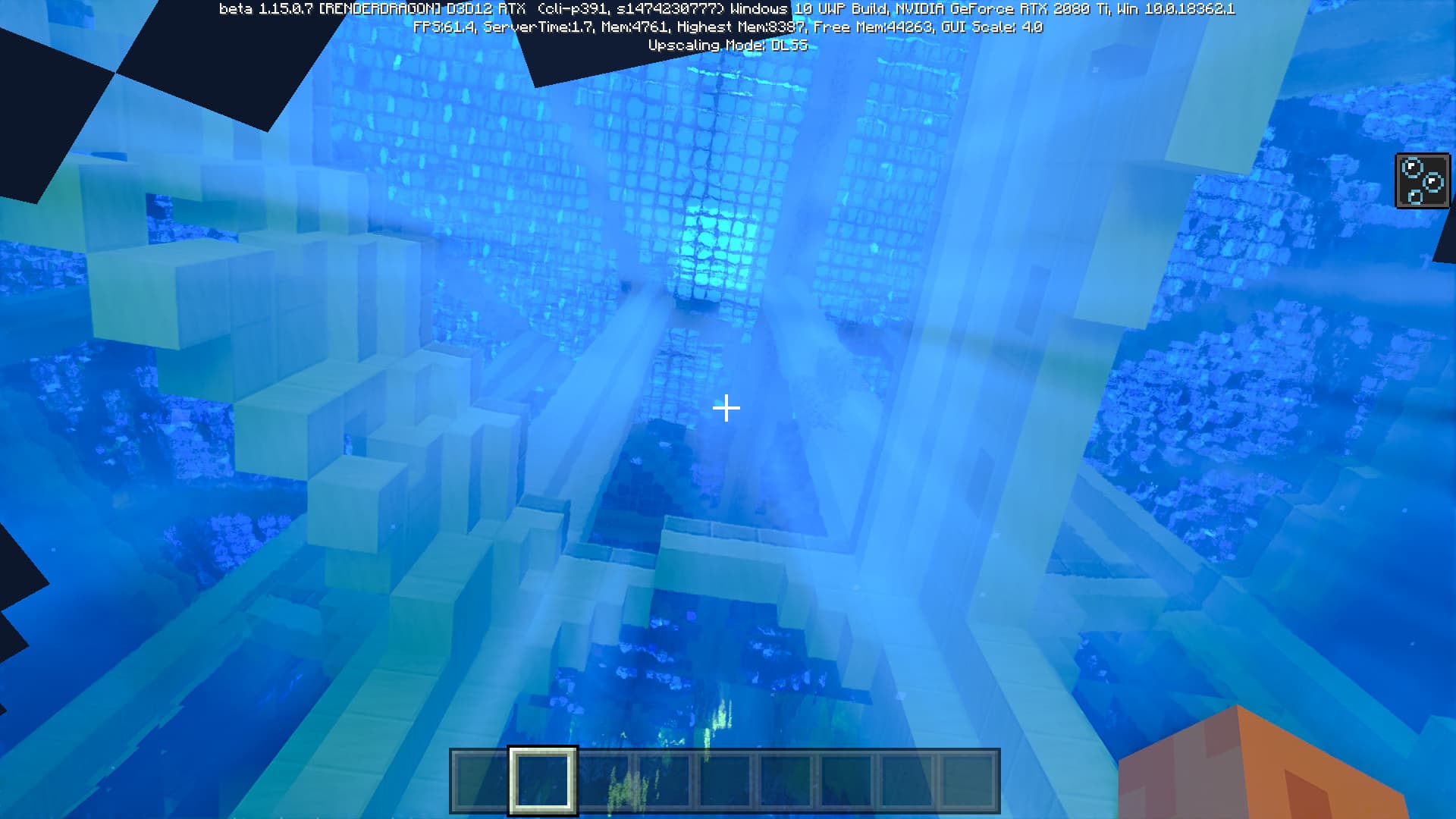 Подобные эффекты дают создателям миров в этой игре совершенно новые возможности, и кто знает, до чего додумается их созидательные головы. Кроме отражений, в Minecraft RTX также поддерживаются еще и преломления — для их отрисовки даже используется отдельный проход при рендеринге, о чем мы поговорим ниже. Это один из самых впечатляющих, но и ресурсоемких эффектов, доступный с применением трассировки лучей, и в игре он также используется, показывая самую большую разницу между растеризацией и трассировкой. При взгляде из-под воды, например: