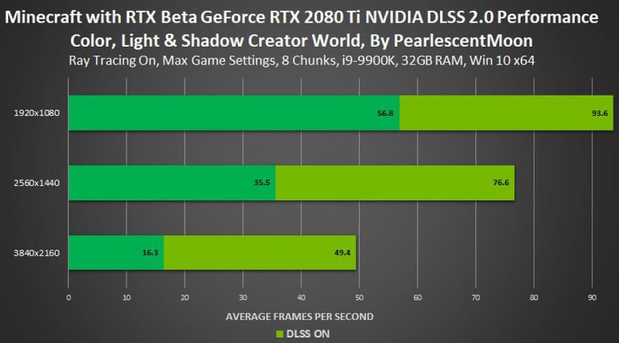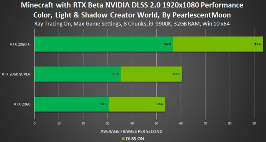 После того, как мы подробно рассмотрели плюсы трассировки лучей и процесс рендеринга с применением аппаратного ускорения трассировки, нам остается узнать, что у Nvidia получилось с производительностью. Хотя Minecraft в силу жанра и не предъявляет жестких требований к частоте кадров и плавности, но игрокам на ПК всегда хочется комфортной игры как минимум со стабильными 30 FPS, а еще лучше — 60 FPS.