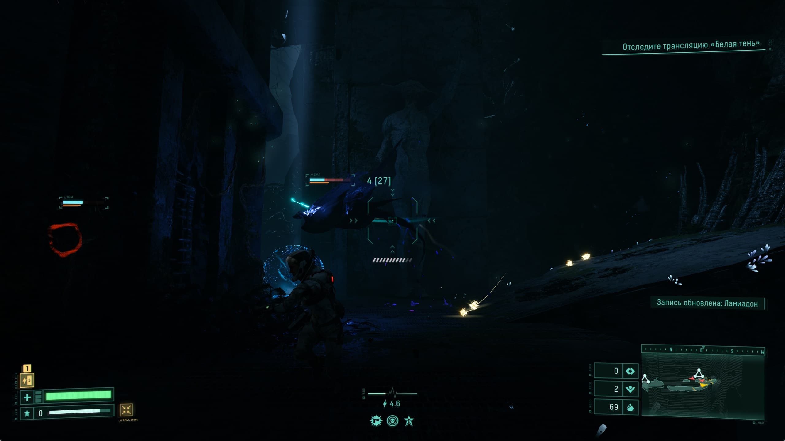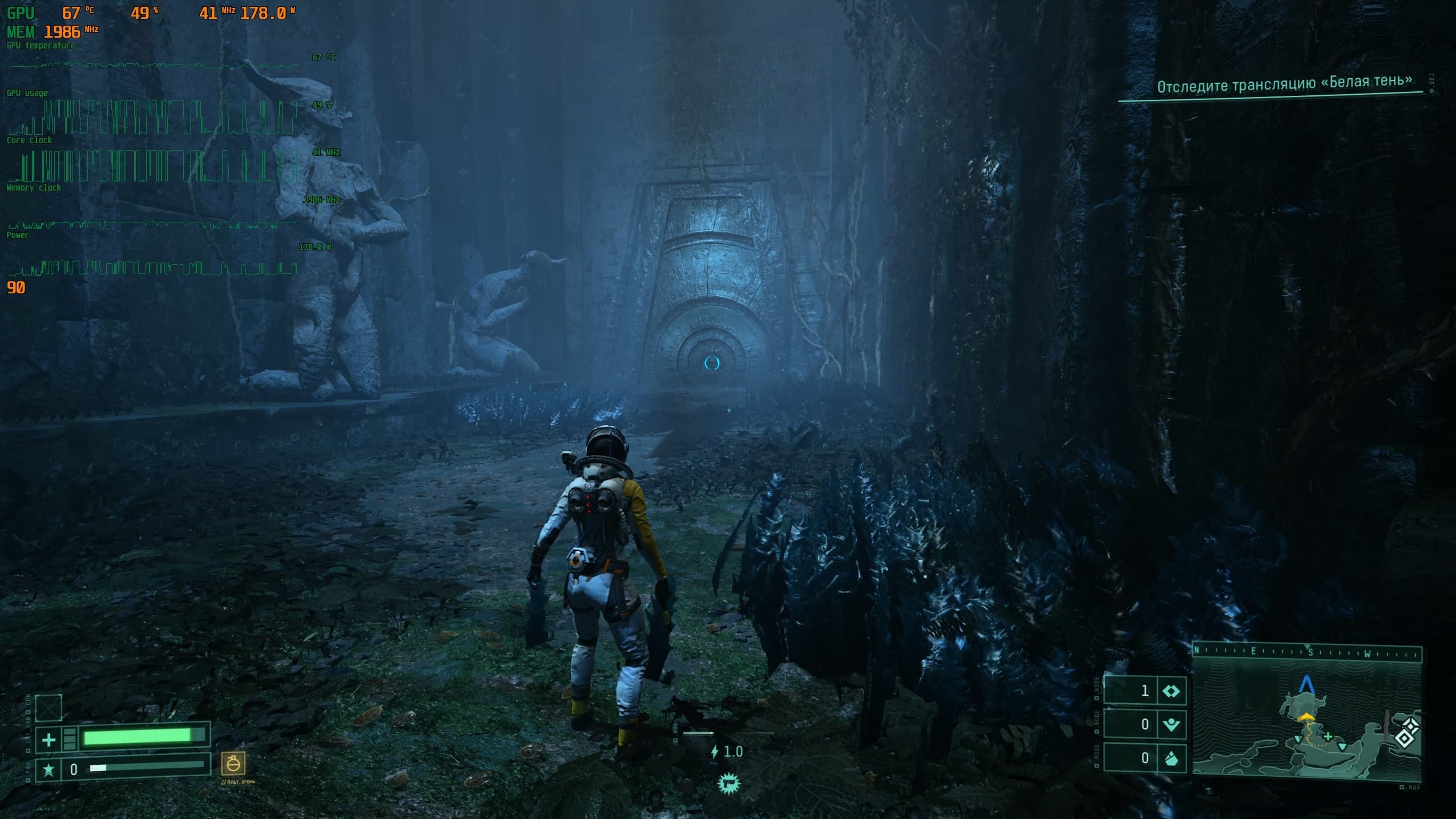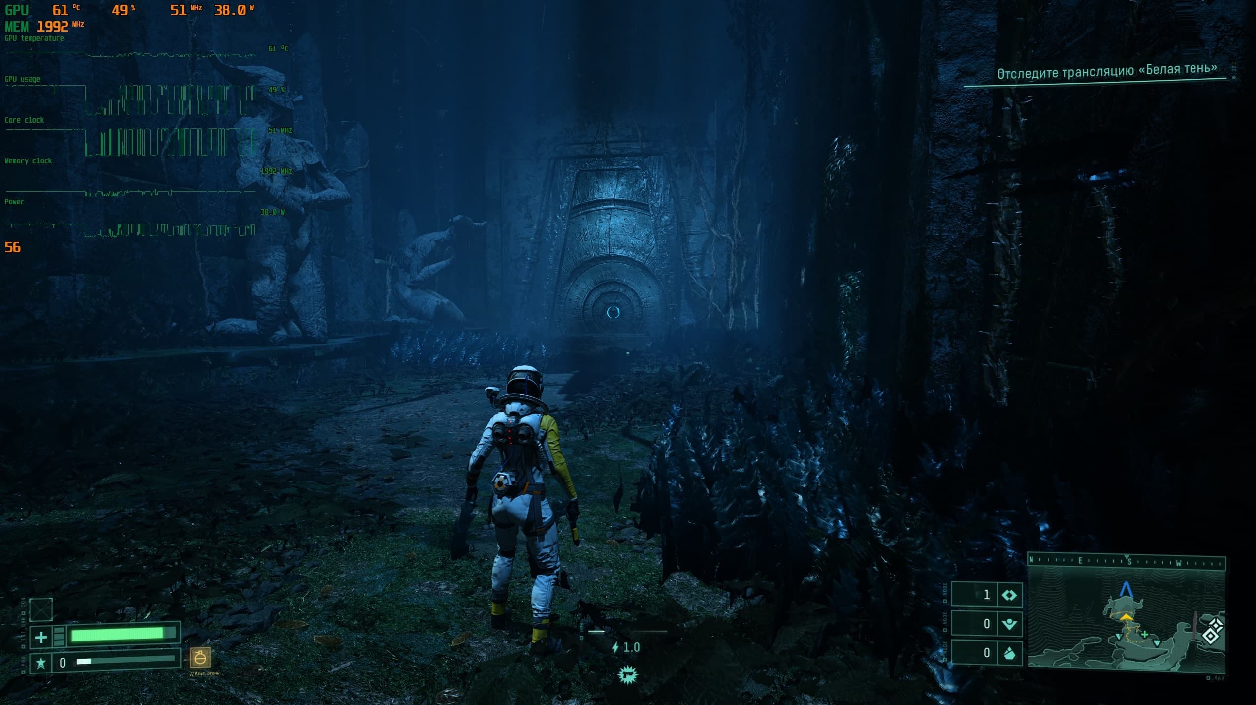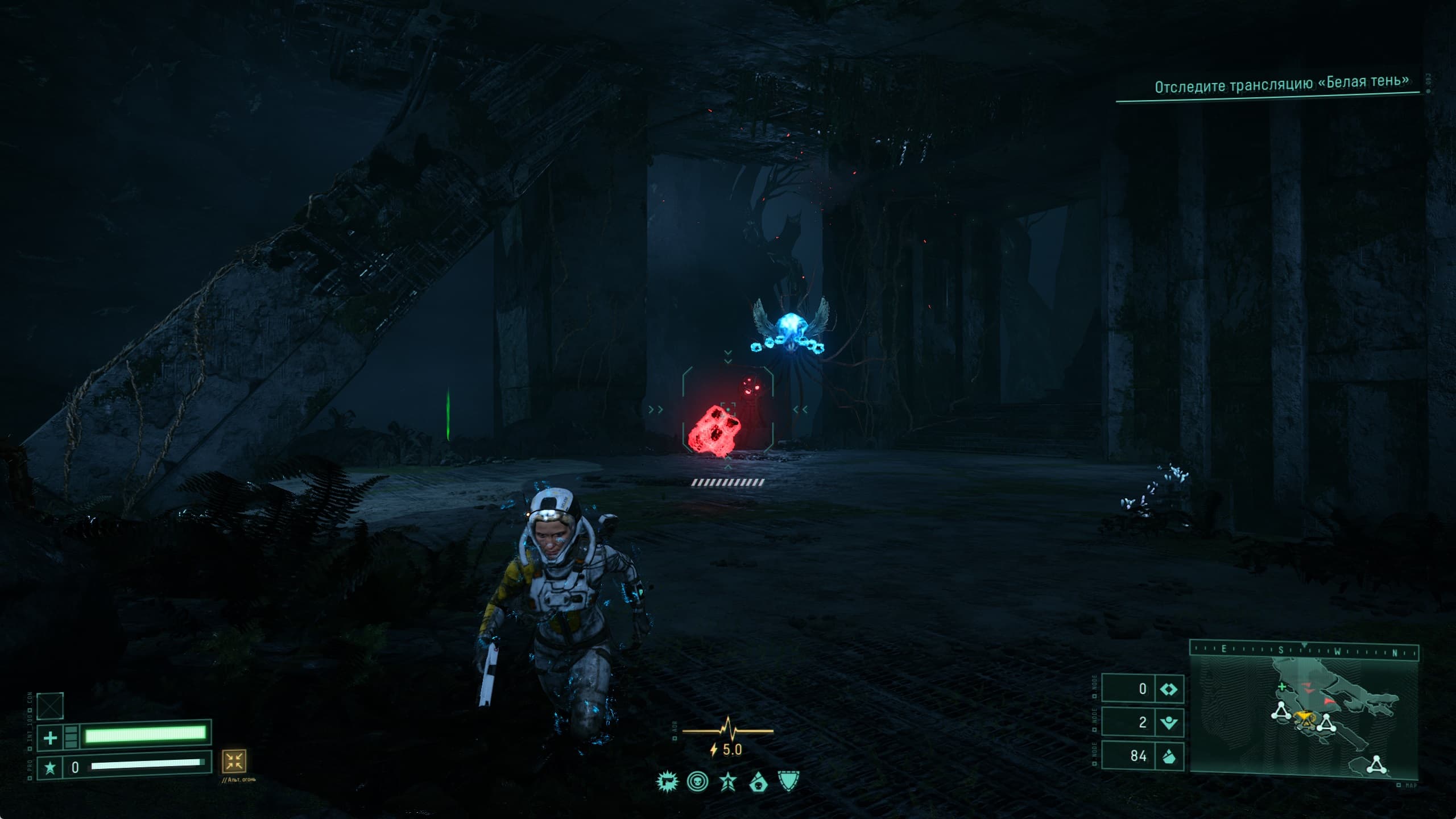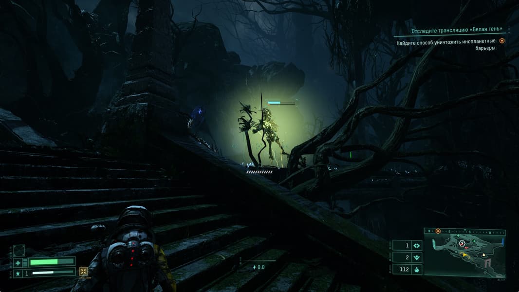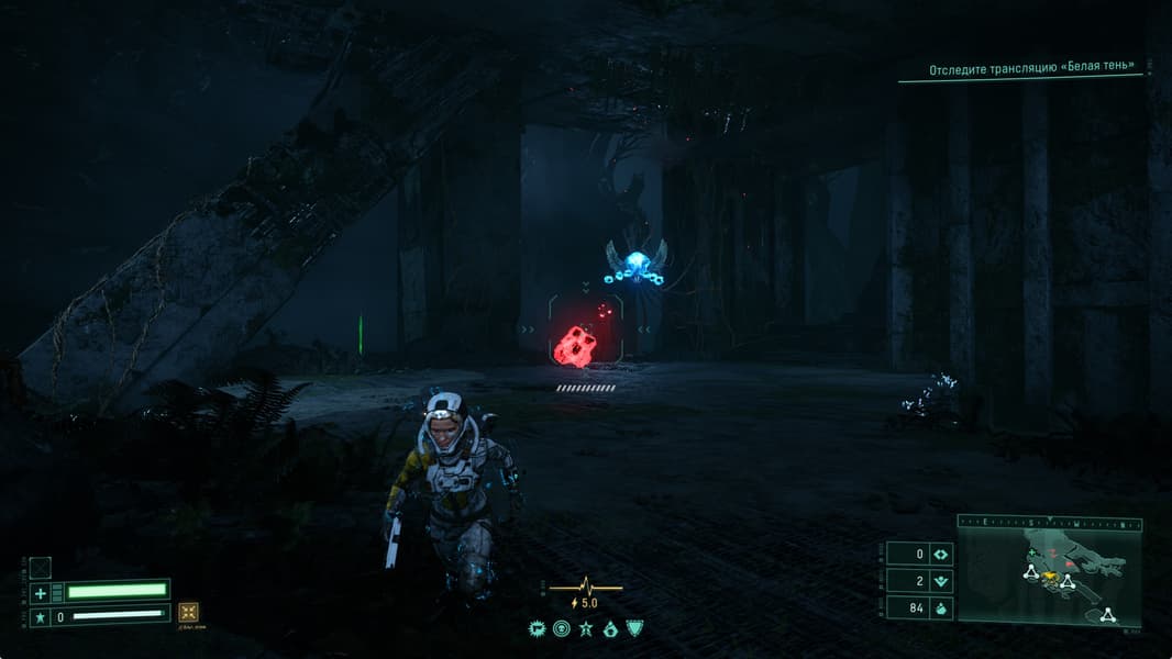 Мир игры Returnal красив и при прохождении ощущается как что то новое и необычное. Все дополняется просыпающимся в процессе прохождения любопытством: а что же за той или иной дверью, а что на том участке, что пока скрыт на карте. При «непрокаченном» костюме и недостаточном уровне здоровья нашей героини мы несколько раз задумаемся, а стоит ли открывать неизвестную нам дверь.