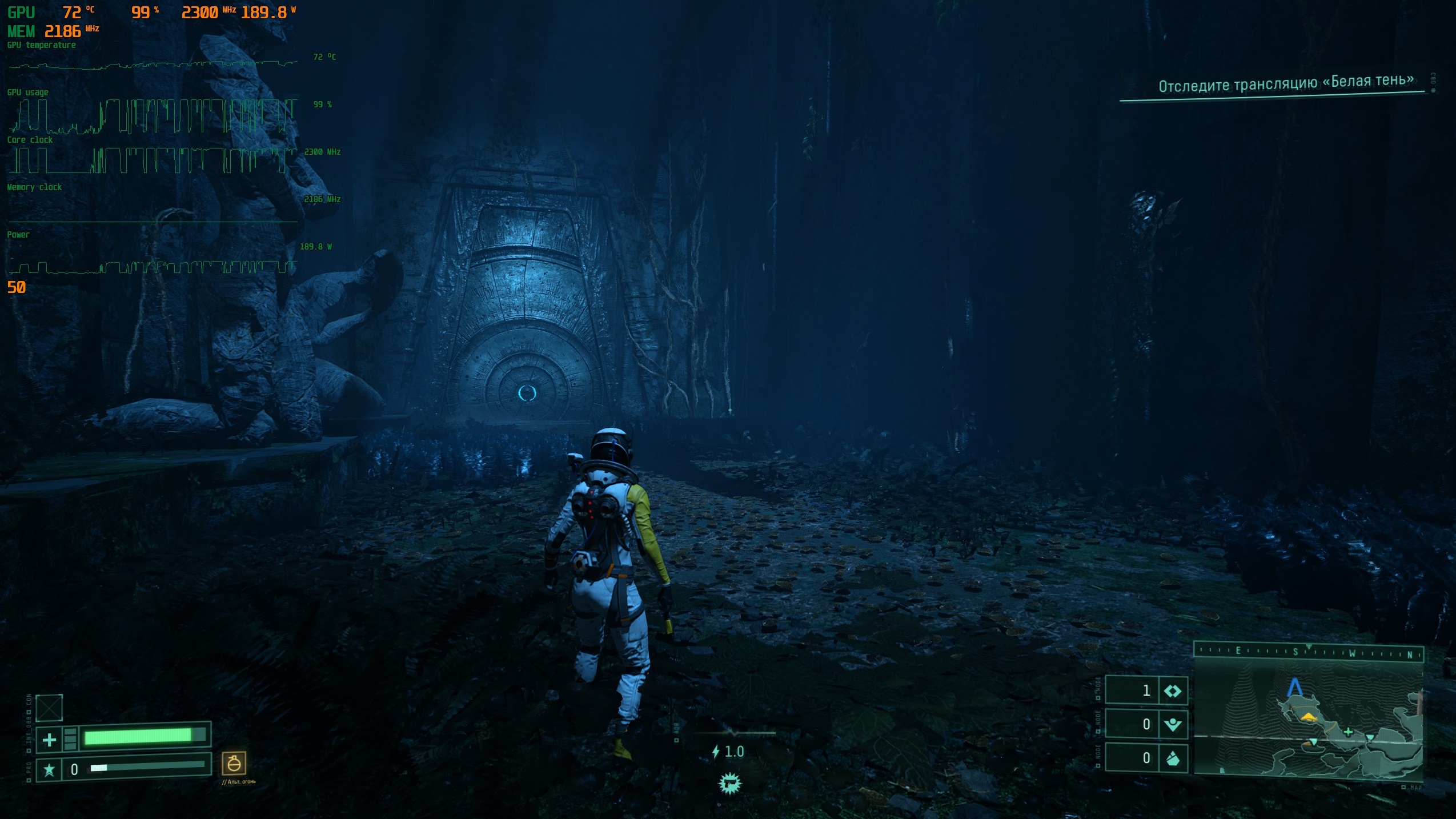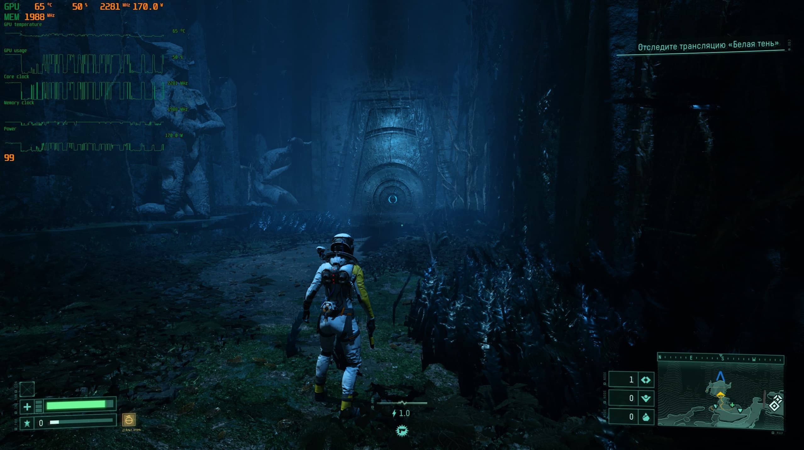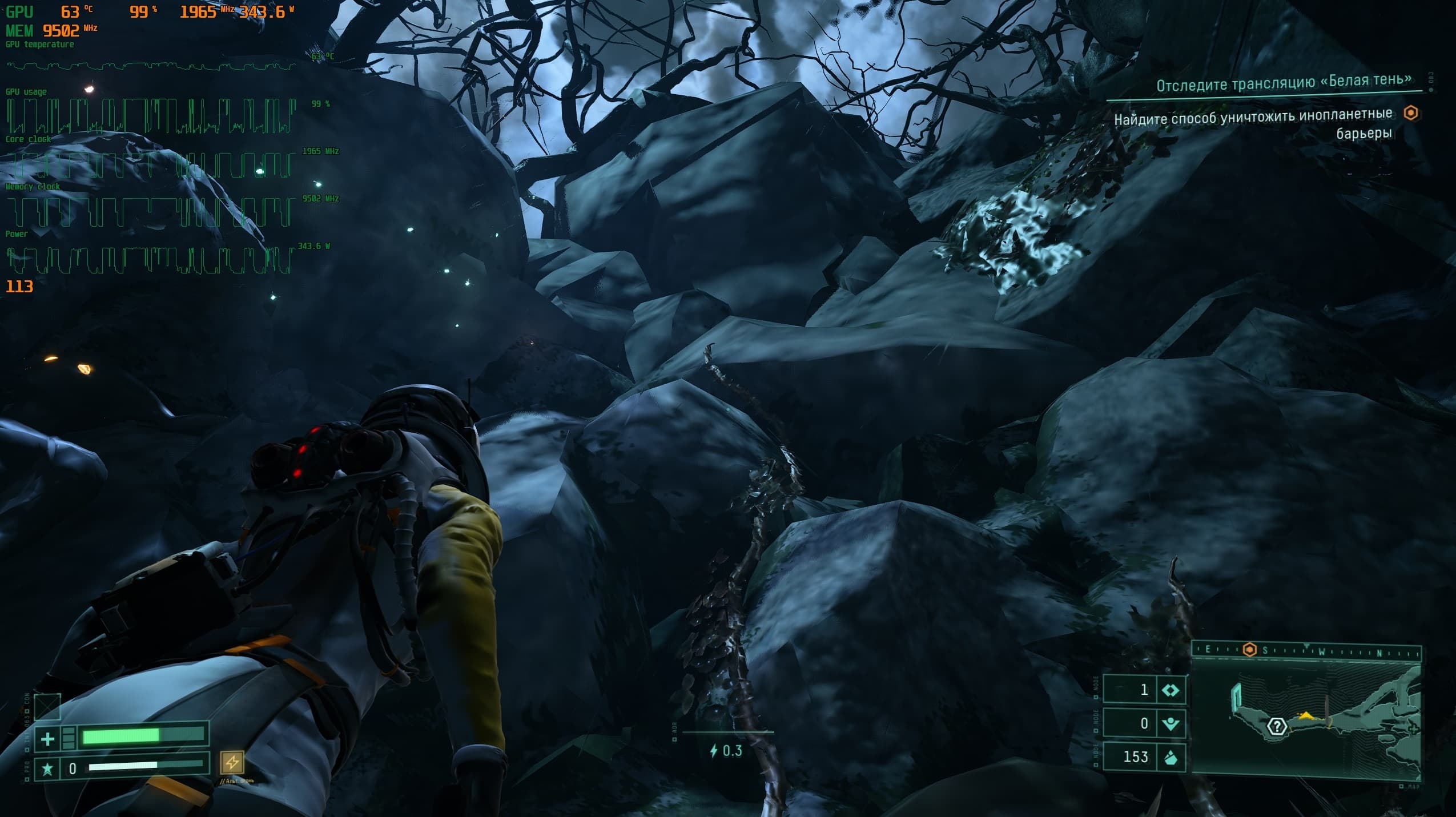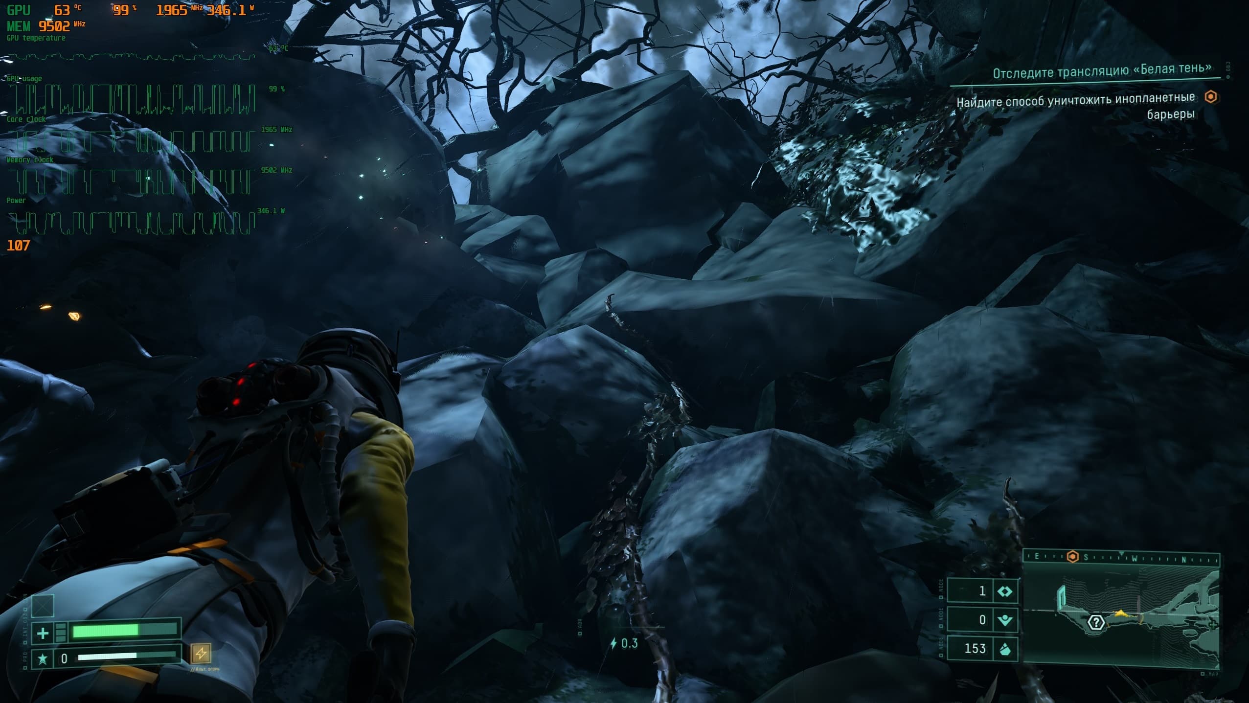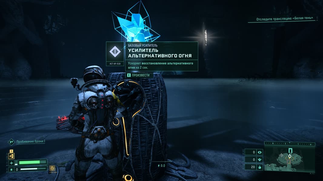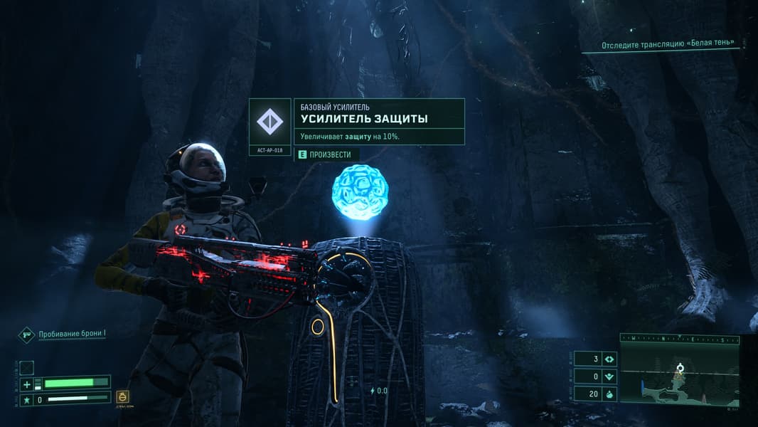 Перемещаемся по планете Атропос и собираем всевозможные элементы усиления здоровья или прочности костюма, а так же нередко нам выпадают весьма интересные орудия.
