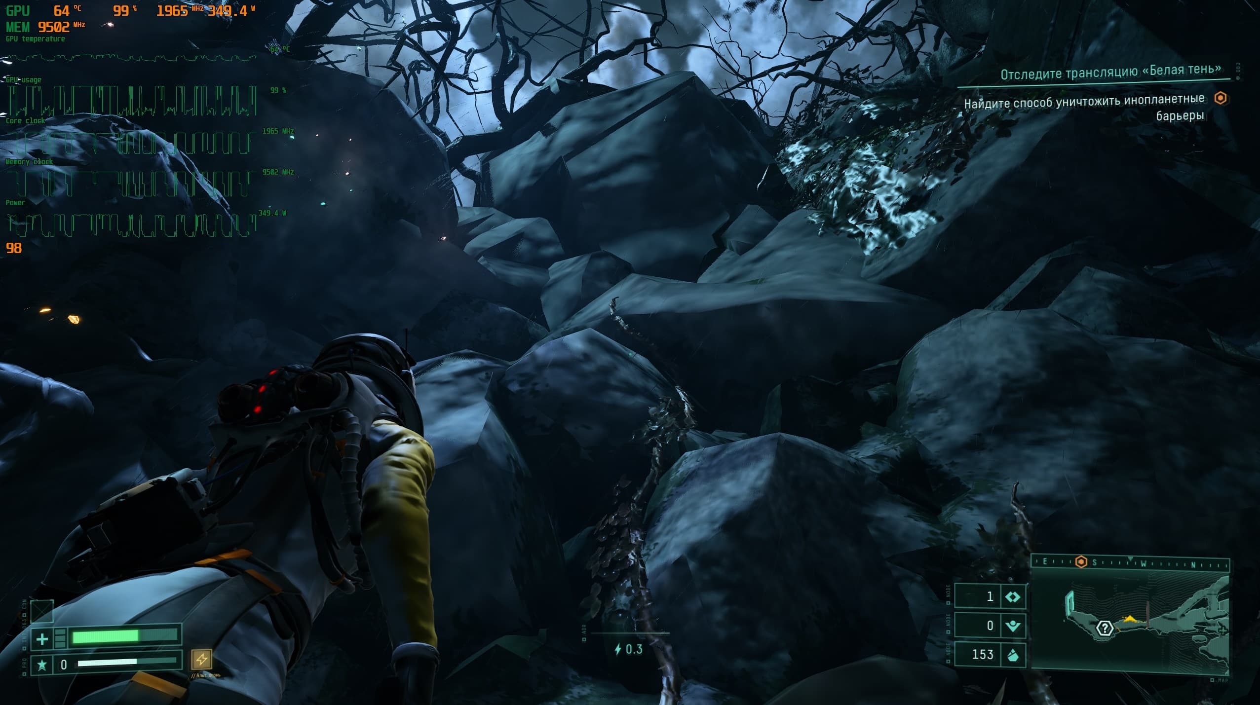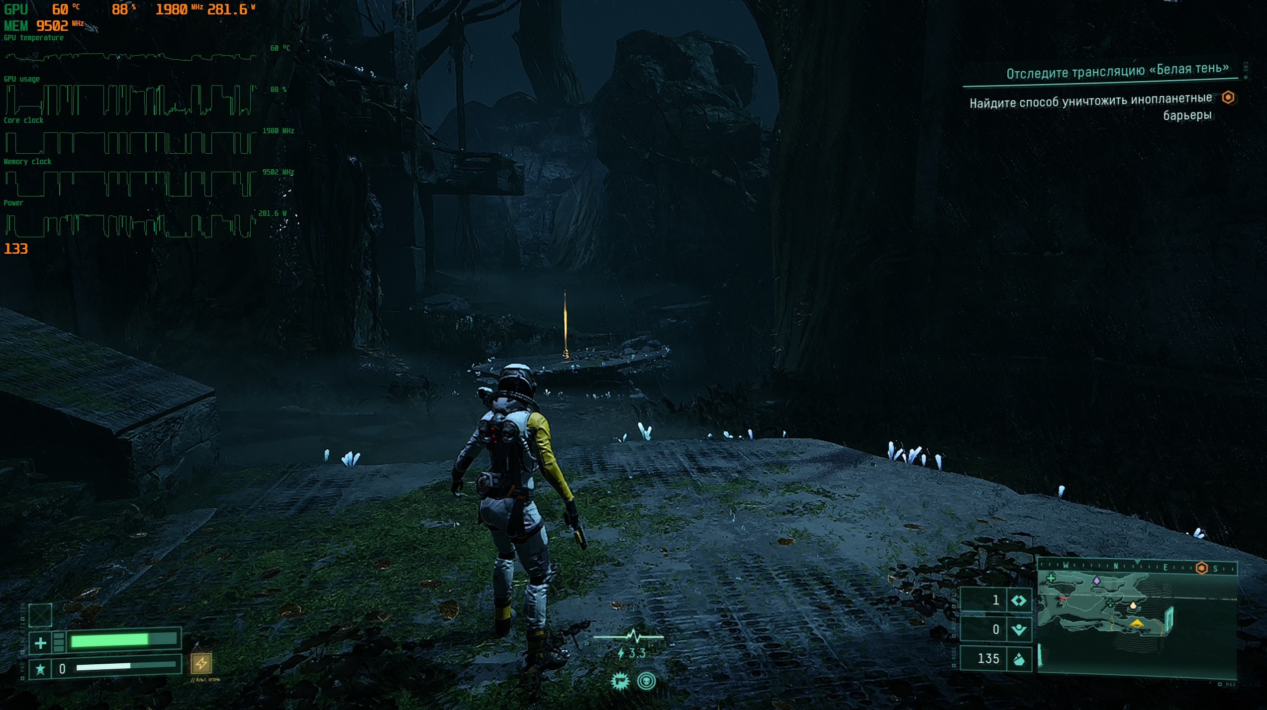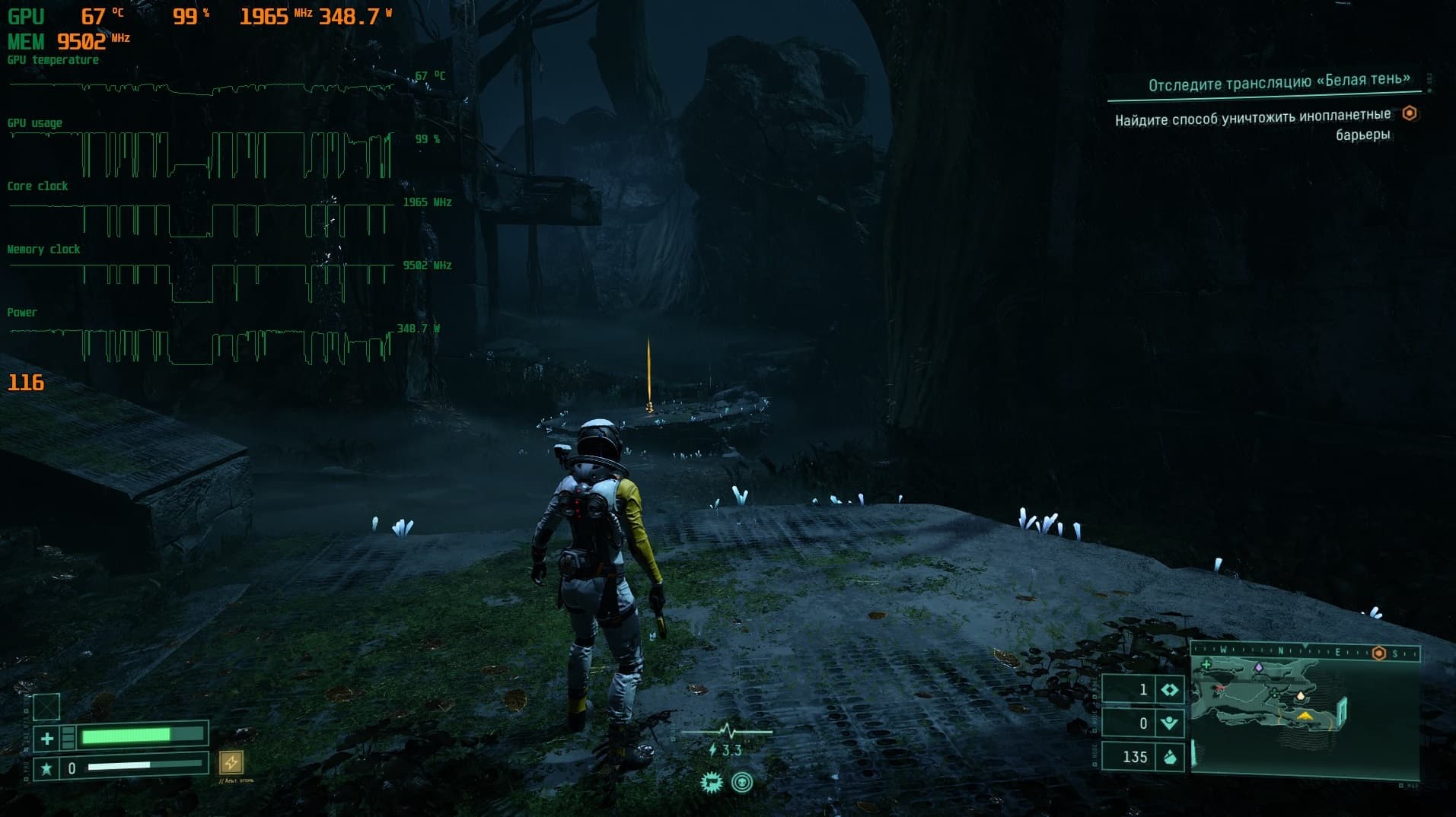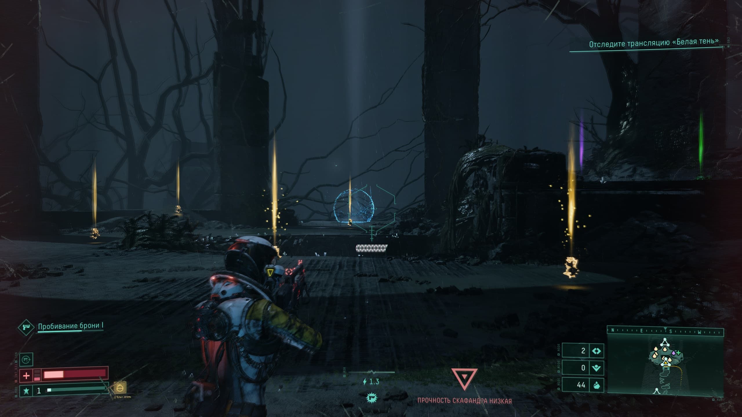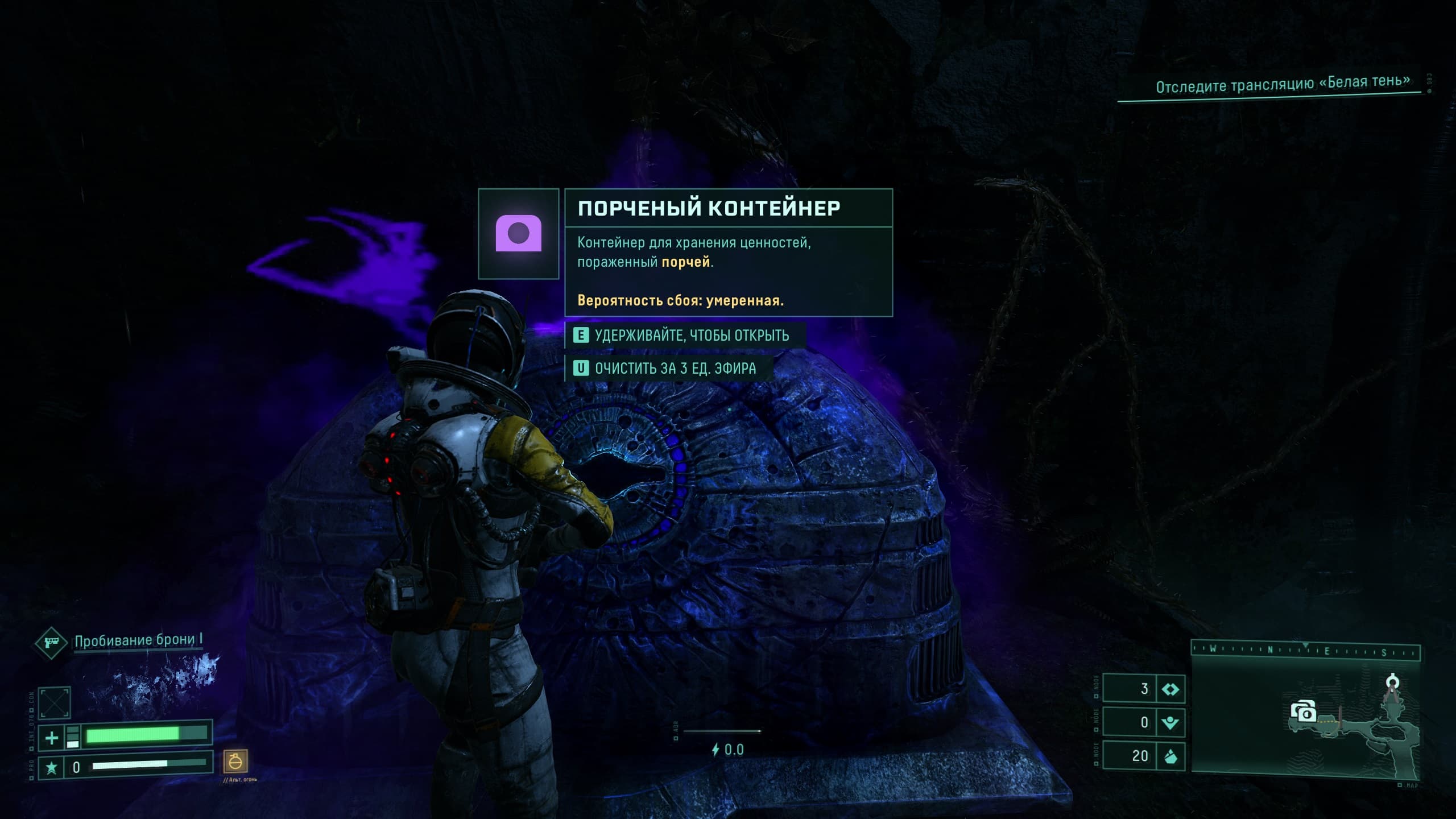 При взаимодействии с «порченным» контейнером на нас накладывается та самая «порча», и наш костюм теряет значительное количество выносливости и работает с перебоями.