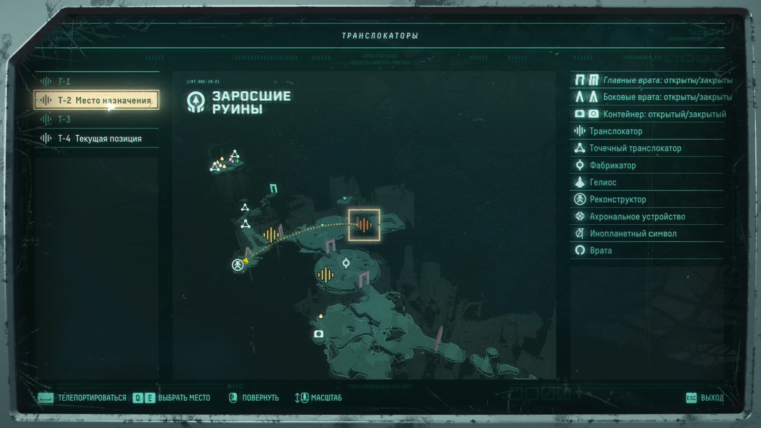 В игре не имеет смысла с начала прохождения запоминать карту местности, ведь при каждой так называемой гибели она меняется. При 100500-м возвращении к нашему кораблю, уже припоминаются и местность, и рядом к ней примкнувшие участки мира, лишь только отличается находящееся на ней местонахождение нужных для прокачивания ресурсов. Переходы с участка на участок локации сопровождаются преодолением на пути больших врат, а так же возможна телепортация с этой точки на другую точку, расположенную на карте.