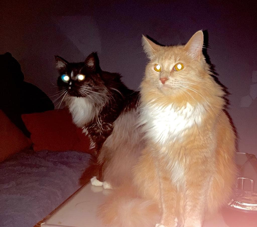 Немного отойду от сюжета и скажу, что я сам являюсь очень внимательным кошатником, и в моей команде, как у автора, есть два Кота, которые периодически вносят свою лепту, даже порой независимо от того, нуждаюсь ли я в этом или нет. А также частенько им удается и «напортачить». Например, прыгнув на клавиатуру, пока я отошел, он «обновил» страницу, и все труды, которые я не успел сохранить, улетели «коту под хвост». Мои коты: один побольше и по-жирнее — это оранжевый кот Жора, а второй — более спортивный и очень любящий зелень в виде петрушки черно-белый кот Семен. Рыжий кот Мёрто, который был силуэтом для разработчиков, по своим габаритам и внешнему виду очень схож с моим котом Жорой, даже честно скажу, изначальная судьба что у моих двух котов, что у котов разработчиков — одинаковая, а именно бездомная жизнь почти еще с кошачьего младенчества.
