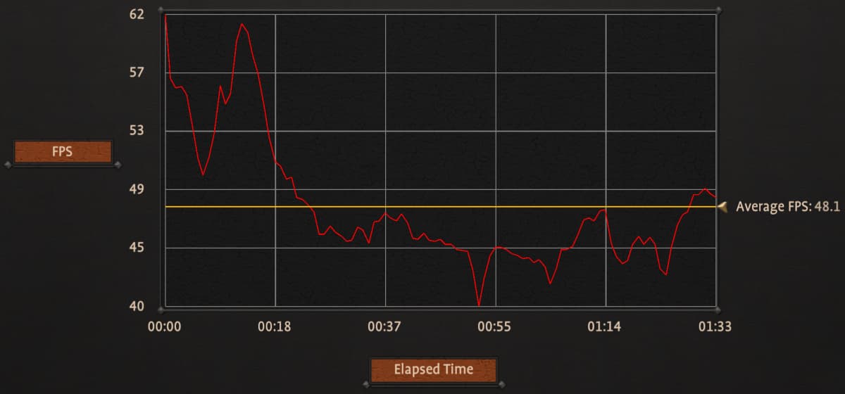 Подробно опишем лишь те настройки, которые заметно сказываются на производительности в игре. Настройка разрешения экрана является одной из самой важной с точки зрения производительности, но ее использование всем понятно. Весьма сильно на скорости рендеринга сказывается настройка Unit size, которую можно выставить от Small до Extreme. Значение влияет на количество моделей персонажей внутри каждого игрового подразделения. При большем их значении будет отрисовываться больше, и это заметно влияет как на восприятие, так и на эффектность итоговой картинки. Снижение значения настройки до минимума вызывает рост средней частоты кадров с 68 до 72 FPS, и делать это мы не советуем — разница в качестве графики слишком велика. А вот ставить максимум качества в виде Extreme лучше только на мощных системах, ибо это снизило среднюю частоту кадров до 65 FPS.