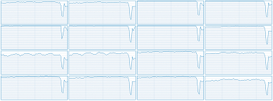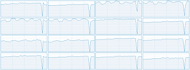 Общая загрузка ядер CPU в процессе тестирования и при средних и максимальных настройках в разрешении 4K на GeForce RTX 2080 Ti в среднем составила порядка 40%-50% с пиками от 20% до 70%, но и GPU при этом почти не простаивает. Загрузка графического процессора почти всегда составляла 97%-98% от его возможностей, даже при средних настройках. А вот как выглядит график загрузки процессора при игровом процессе в Full HD-разрешении при ультра-настройках и когда размер отряда выставлен на максимум: