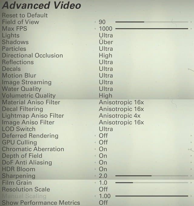 Большинство остальных параметров в игре вызывают изменение в скорости рендеринга на 5% и менее, в том числе отключение всех постфильтров (почти не дает прироста), изменение качества рендеринга поверхности воды (влияет, но исключительно в некоторых локациях), регулировка качества декалей Decals, изменение качества отрисовки частиц Particles (те самые 5%), ухудшение качества объемного освещения Volumetric Quality и так далее — все они хоть и оказывают некоторое влияние на FPS, но не слишком большое.