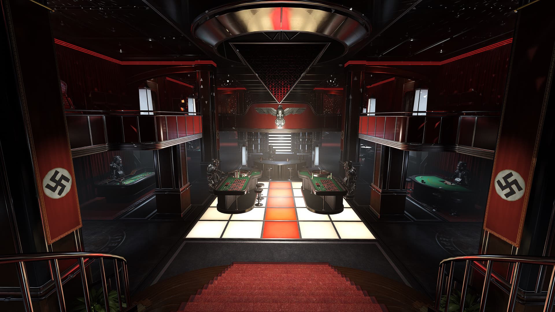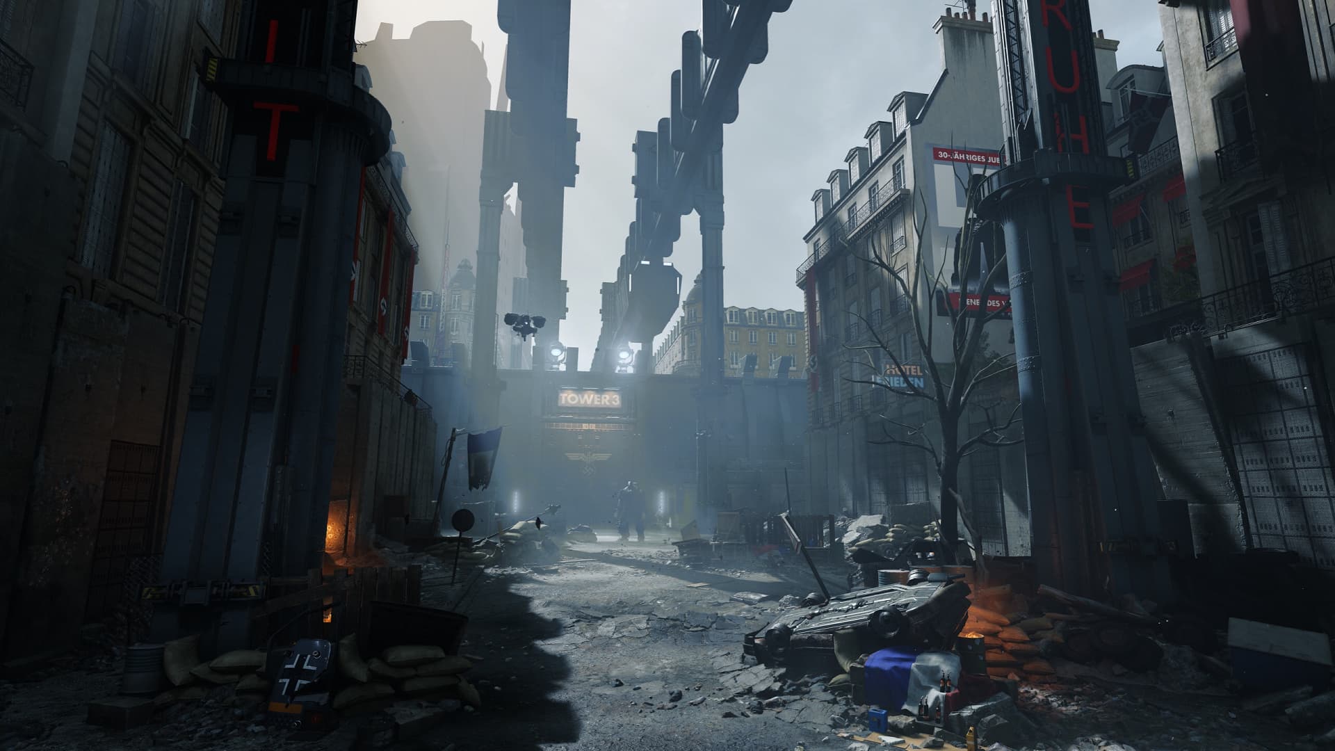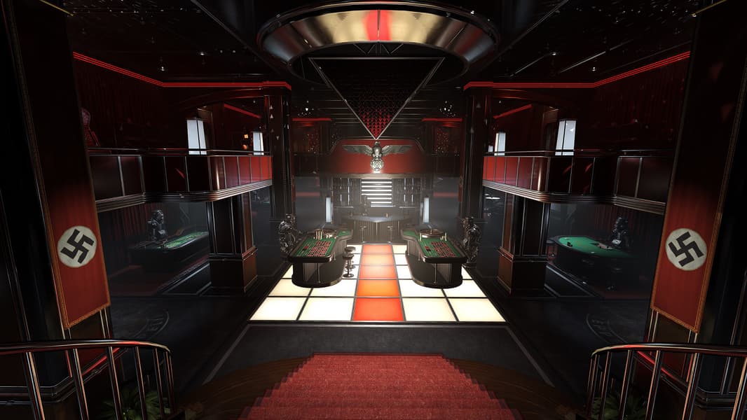 Трассировка лучей в игре Wolfenstein: Youngblood применяется для того, чтобы имитировать отражения на различных поверхностях максимально аккуратно и физически корректно. Используется лишь одно отражение луча для расчета отражений, но отражающие материалы включают не только почти идеальные зеркальные поверхности, вроде луж, которые довольно просто отрисовать, но и шероховатые поверхности типа металлических, которые требуют куда больших вычислительных мощностей при обработке.