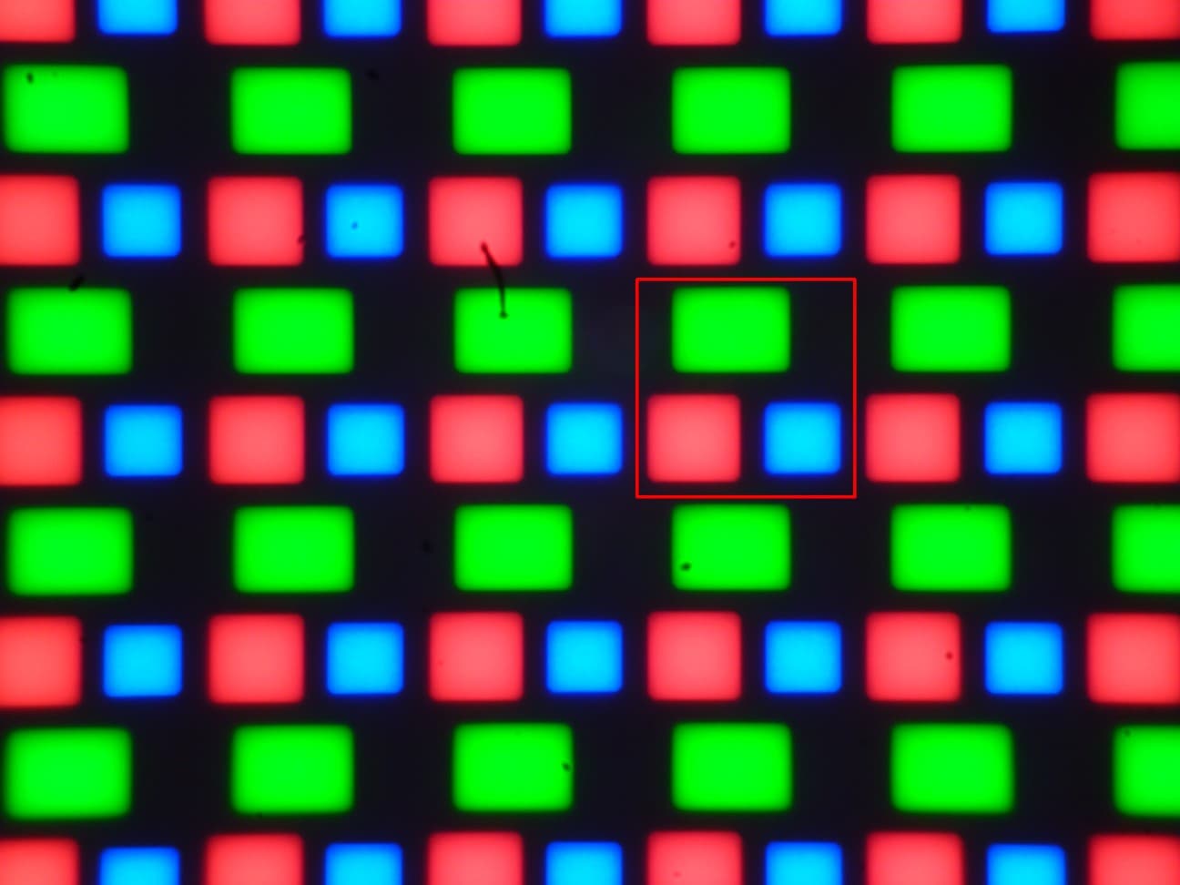 Так выглядят пиксели матрицы этого монитора при не очень большом увеличении в случае вывода белого цвета: