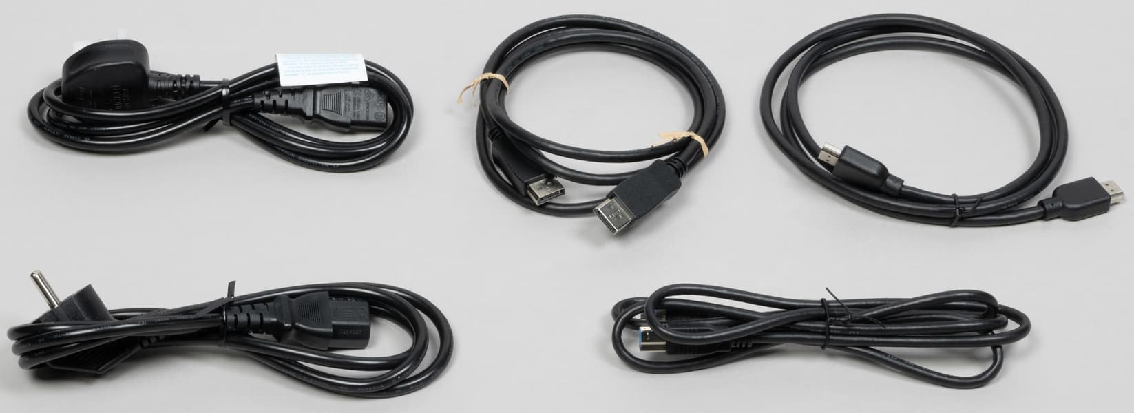К монитору прилагается неплохой комплект кабелей (но не очень длинных) черного цвета.