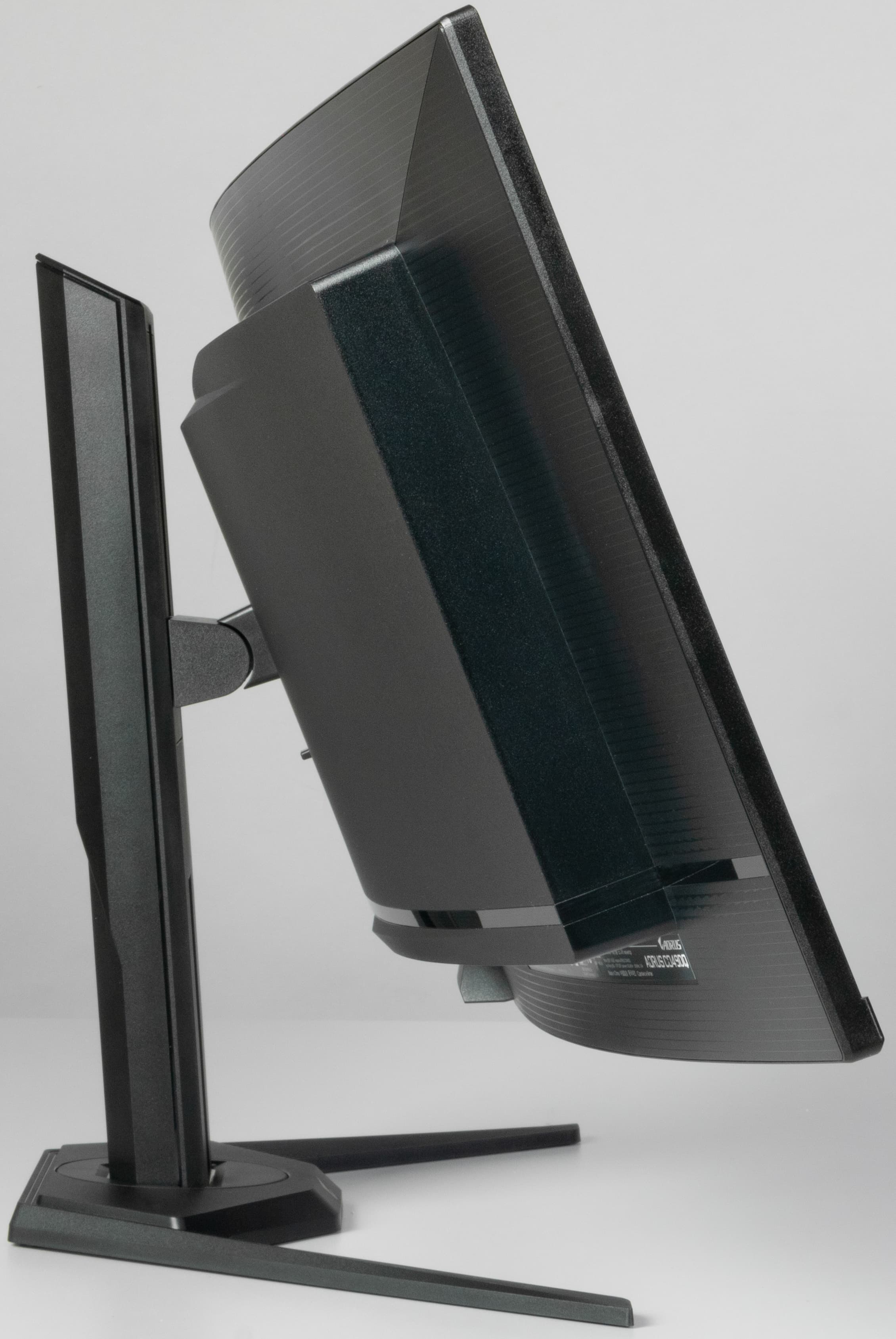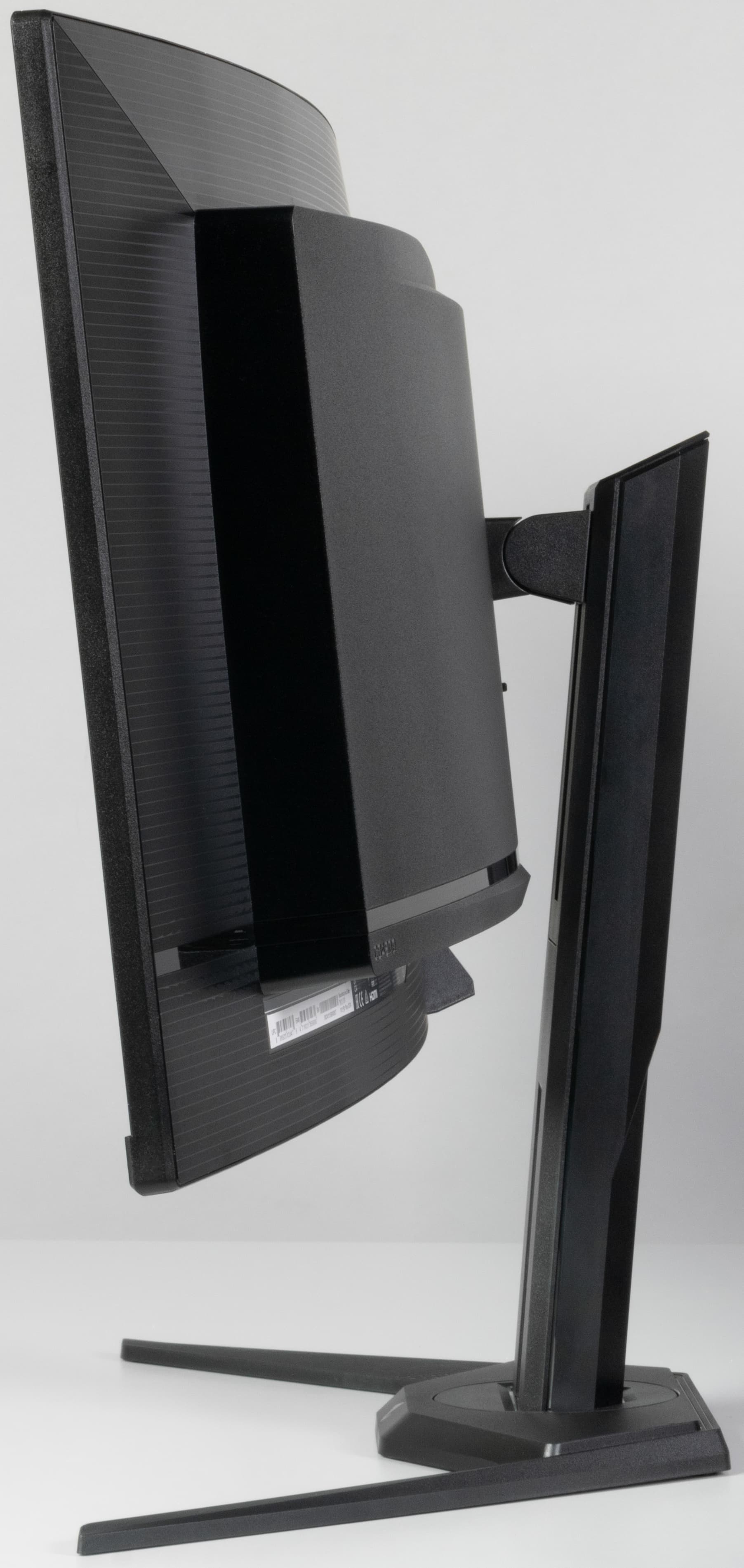 Плоскость экрана изогнута по цилиндру (с заявленным радиусом кривизны 1,8 м) так, что правый и левый край выдвинуты вперед. По отражению в экране видно, что изгиб более-менее равномерный на большей площади, его радиус порядка паспортного, и только по краям в вертикальной области около 10 см экран скорее плоский. Внешняя поверхность матрицы глянцевая и жесткая. Экран выглядит как монолитная поверхность, ограниченная снизу относительно узкой планкой, а сверху и по бокам — узкой окантовкой. Выведя изображение на экран, можно увидеть, что на самом деле между внешними границами экрана и собственно областью отображения есть неширокие поля — по 11 мм до внешних краев сверху и по бокам и примерно 6 мм до планки снизу. Присутствует специальный антибликовый фильтр, который сильно снижает яркость отраженных объектов. Фактически хоть как-то помешать работе за этим монитором могут только источники света с высокой интенсивностью, напрямую отражающиеся в экране. Однако наличие внешнего даже не очень интенсивного освещения приводит к тому, что область отображения выглядит не черной, а темно-темно -серой, что заметно на фоне практически черных полей.