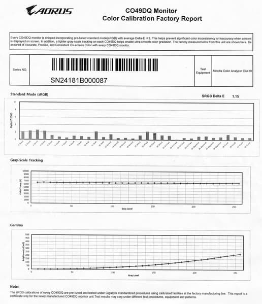 К монитору (к каждому конкретному экземпляру) прилагается отчет о качестве цветового баланса: