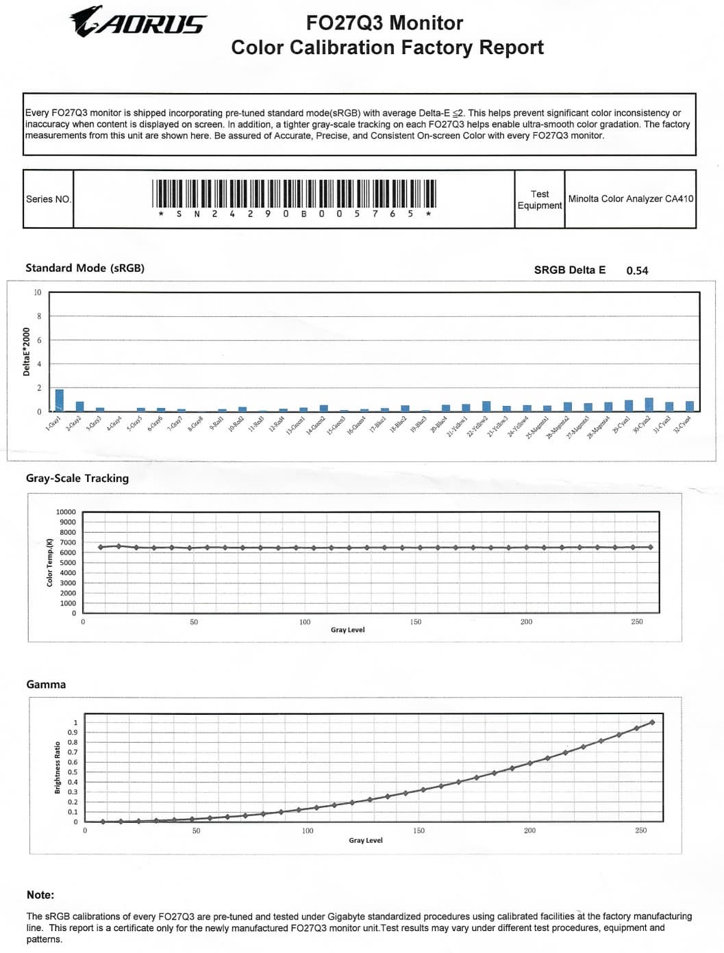 К монитору (к каждому конкретному экземпляру) прилагается отчет о качестве цветового баланса: