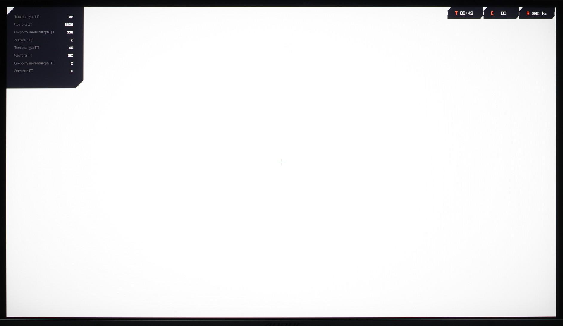 Мы определяли полную задержку вывода от переключения страниц видеобуфера до начала вывода изображения на экран (напомним, что она зависит от особенностей работы ОС Windows и видеокарты, а не только от монитора). Задержка вывода изображения при 360 Гц равна 3 мс. Это очень низкое значение задержки, она абсолютно не ощущается при работе за ПК и даже в самых динамичных играх не приведет к снижению результативности.