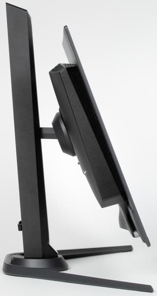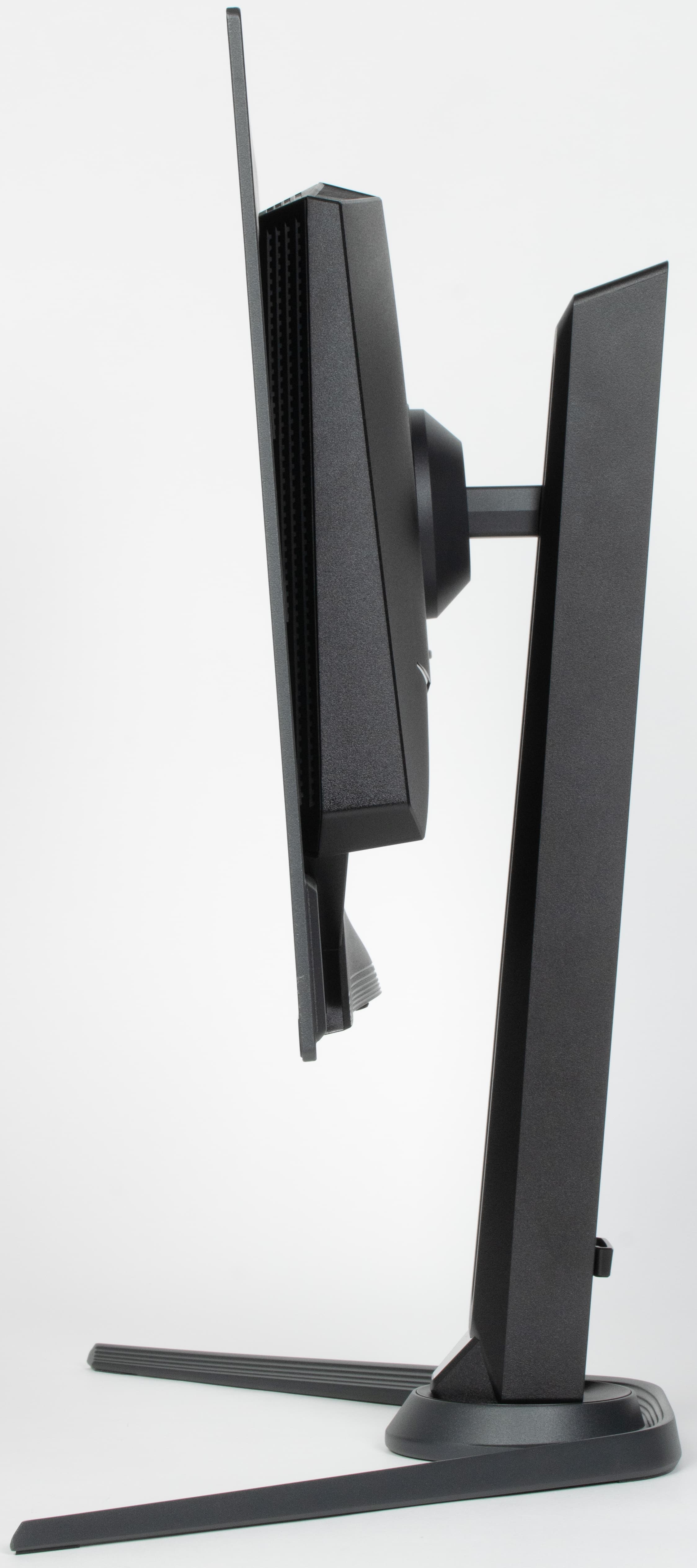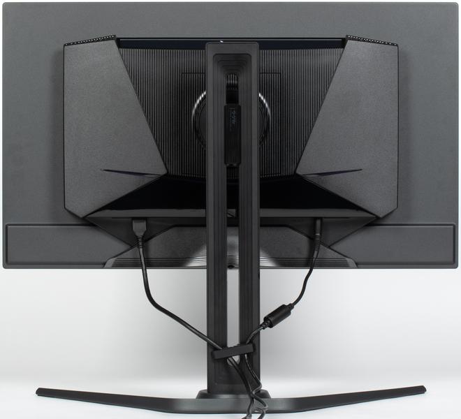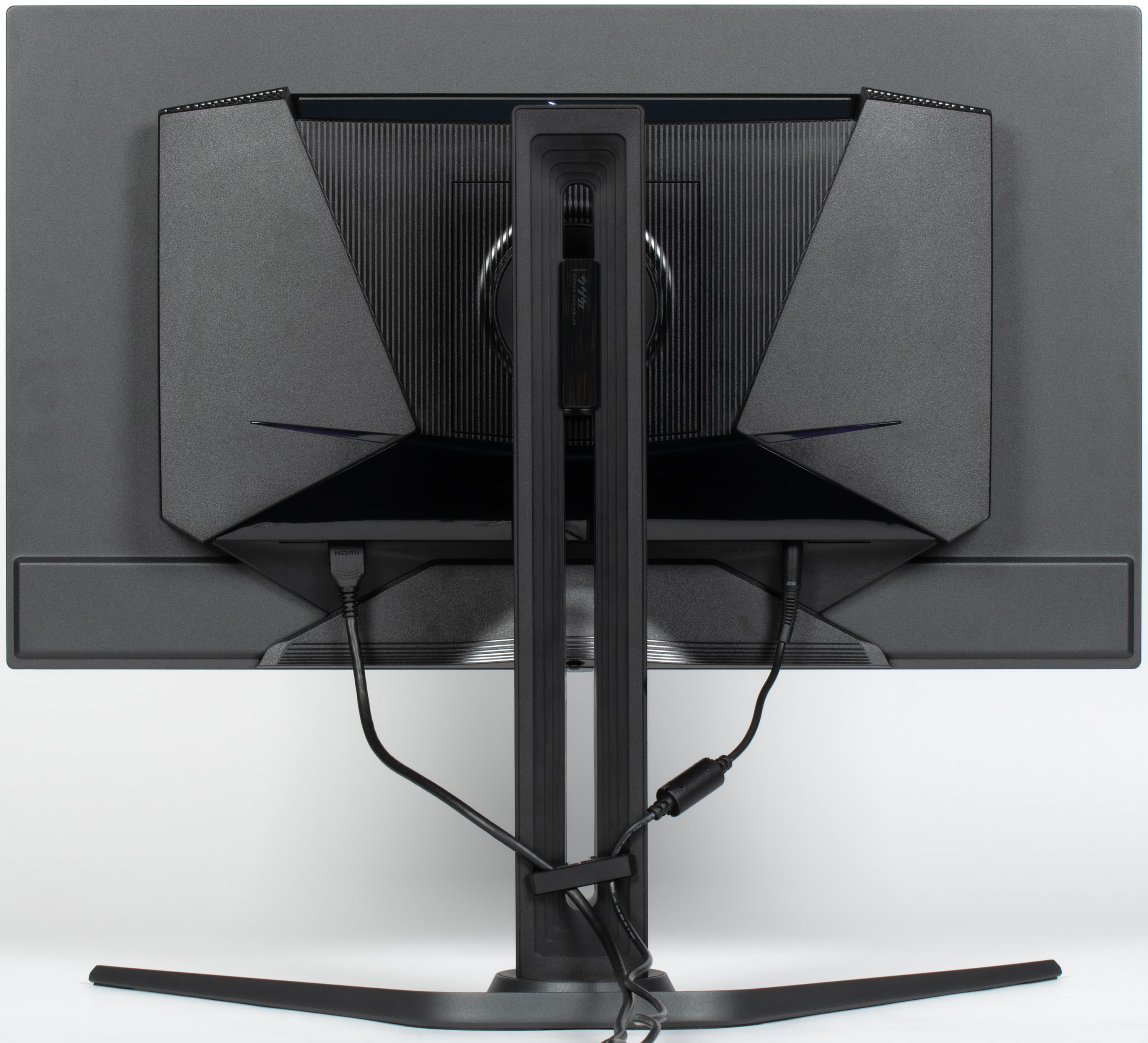 На штатной подставке монитор стоит устойчиво. Несущие элементы подставки изготовлены из толстой штампованной стали и алюминиевого сплава. Конструкция подставки достаточно жесткая. Накладки из резины снизу на основании подставки защищают поверхность стола от царапин и предотвращают скольжение монитора на гладких поверхностях. Между широко расставленными опорами подставки близко к монитору можно поместить даже полноразмерную клавиатуру.