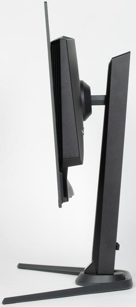Стойка имеет фиксированную высоту, но подпираемый пружиной механизм со стальным рельсовым шариковым подшипником обеспечивает вертикальное перемещение шарнира, на который крепится блок экрана. В итоге легким движением руки экран можно установить на нужную высоту. Верхний шарнир позволяет немного наклонять блок экрана вперед от вертикального положения и больше наклонять назад, а также перевернуть в портретную ориентацию по часовой стрелке.