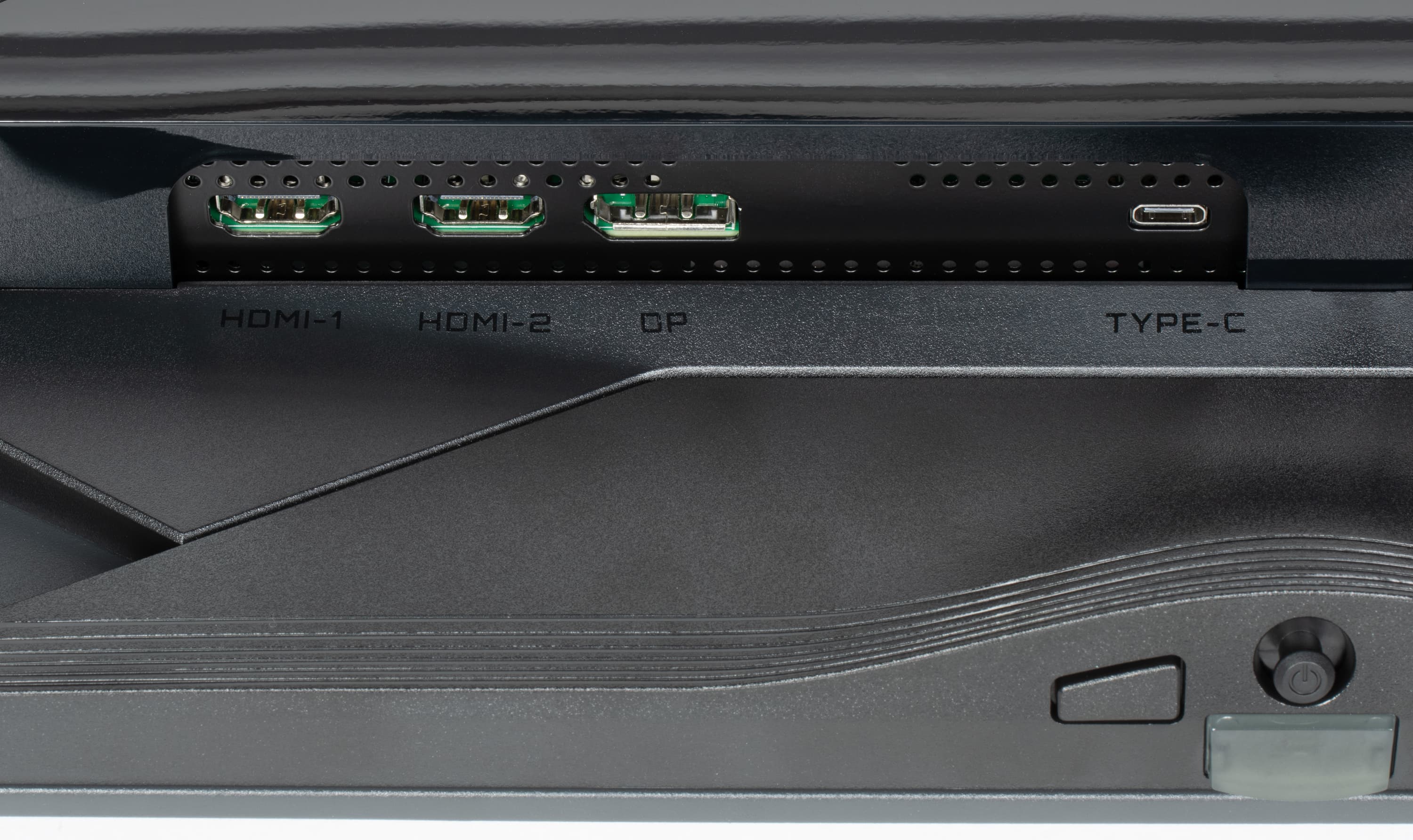 Монитор оснащен тремя цифровыми входами в полноразмерном варианте — DisplayPort и парой HDMI, — дополненные входом USB-C. Выбор входа осуществляется в основном меню установок или в меню быстрого доступа (если оно настроено на одно из отклонений джойстика). Есть отключаемая функция автоматического поиска сигнала на входах.