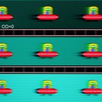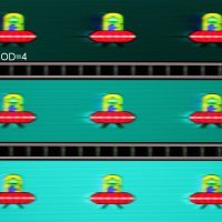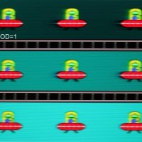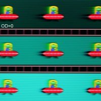 Попробуем представить, что было бы в случае матрицы с мгновенным переключением пикселей. Для нее при 60 Гц объект со скоростью движения 960 пиксель/с размывается на 16 пикселей, при 120 Гц — на 8 пикселя, при 144 Гц — на 6,6(6) пикселя (различия в скорости движения с описанным выше тестом непринципиальные). Размывается, так как фокус зрения движется с указанной скоростью, а объект неподвижно выводится на 1/60, 1/120 или на 1/144 секунды. Для иллюстрации этого сымитируем размытие на 16, 8 и 6,6(6) пикселя:
