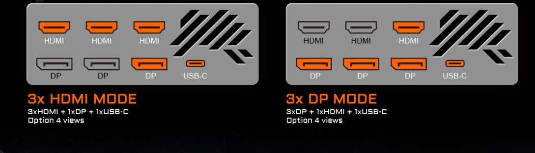 - 3×DisplayPort 1.4 + 3×HDMI 2.0b + 1×USB Type-C