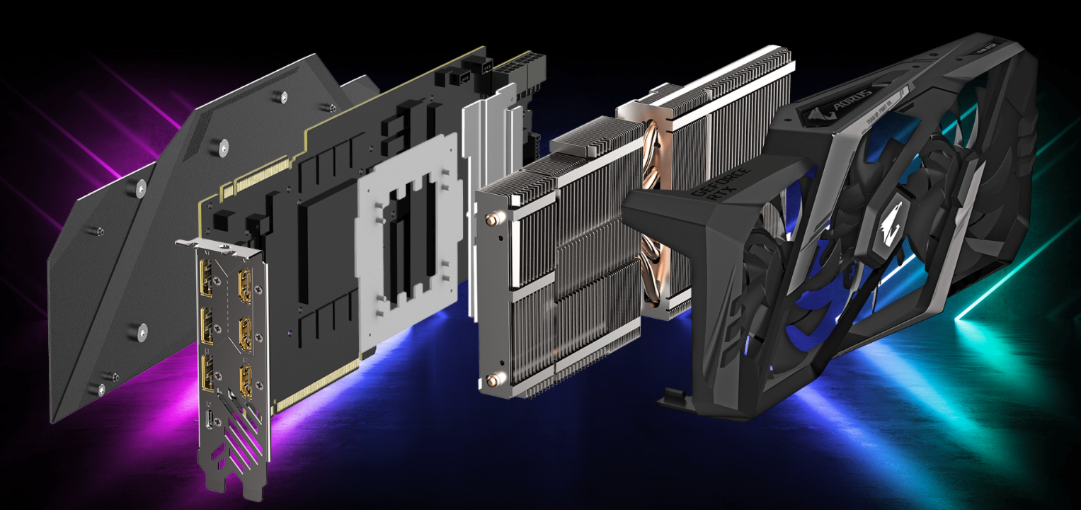 Эта модель Gigabyte Aorus GeForce RTX 2070 Super 8G обладает технологией 3D Active, которая выражена полупассивной схемой охлаждения.