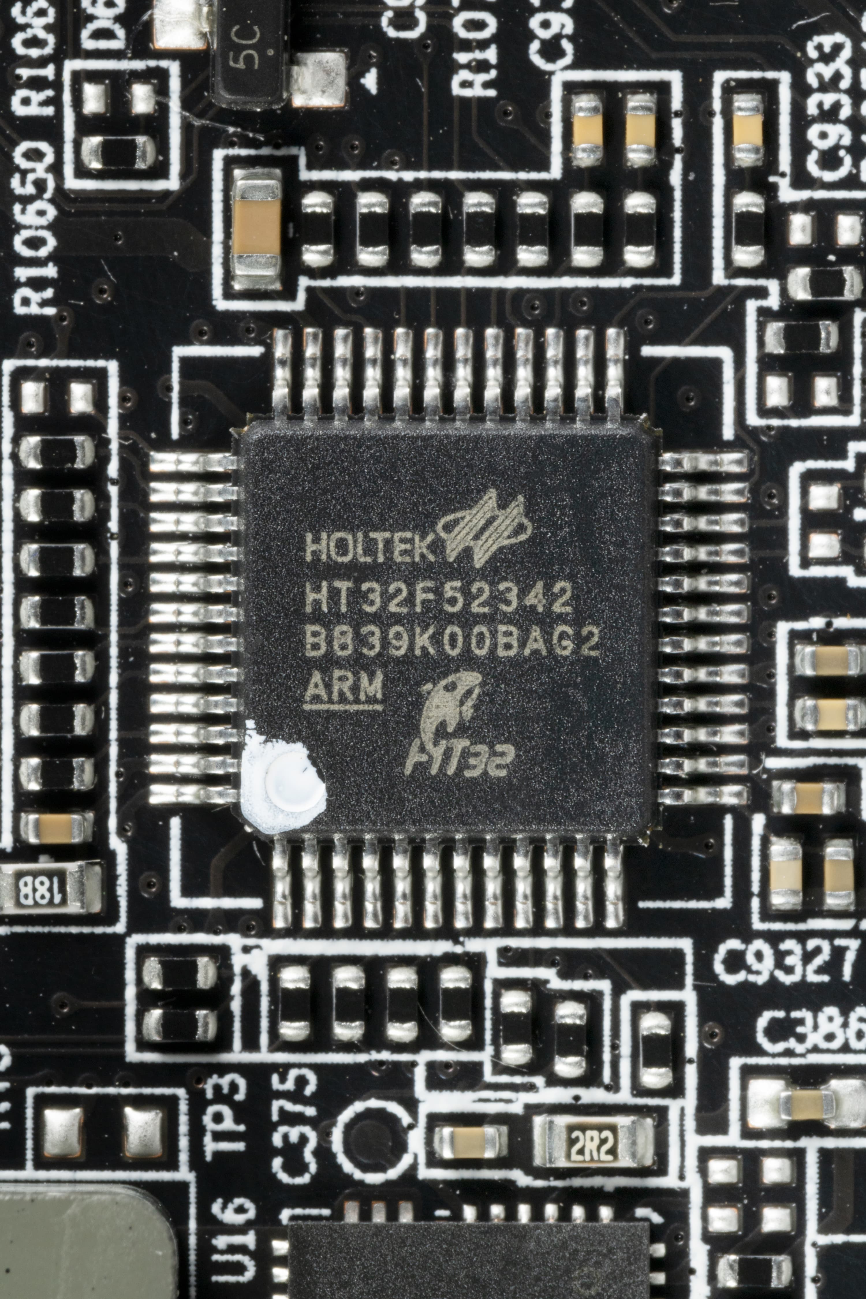 Микросхема Holtek HT32F52342 обеспечивает мониторинг видеокарты и управления подсветкой.