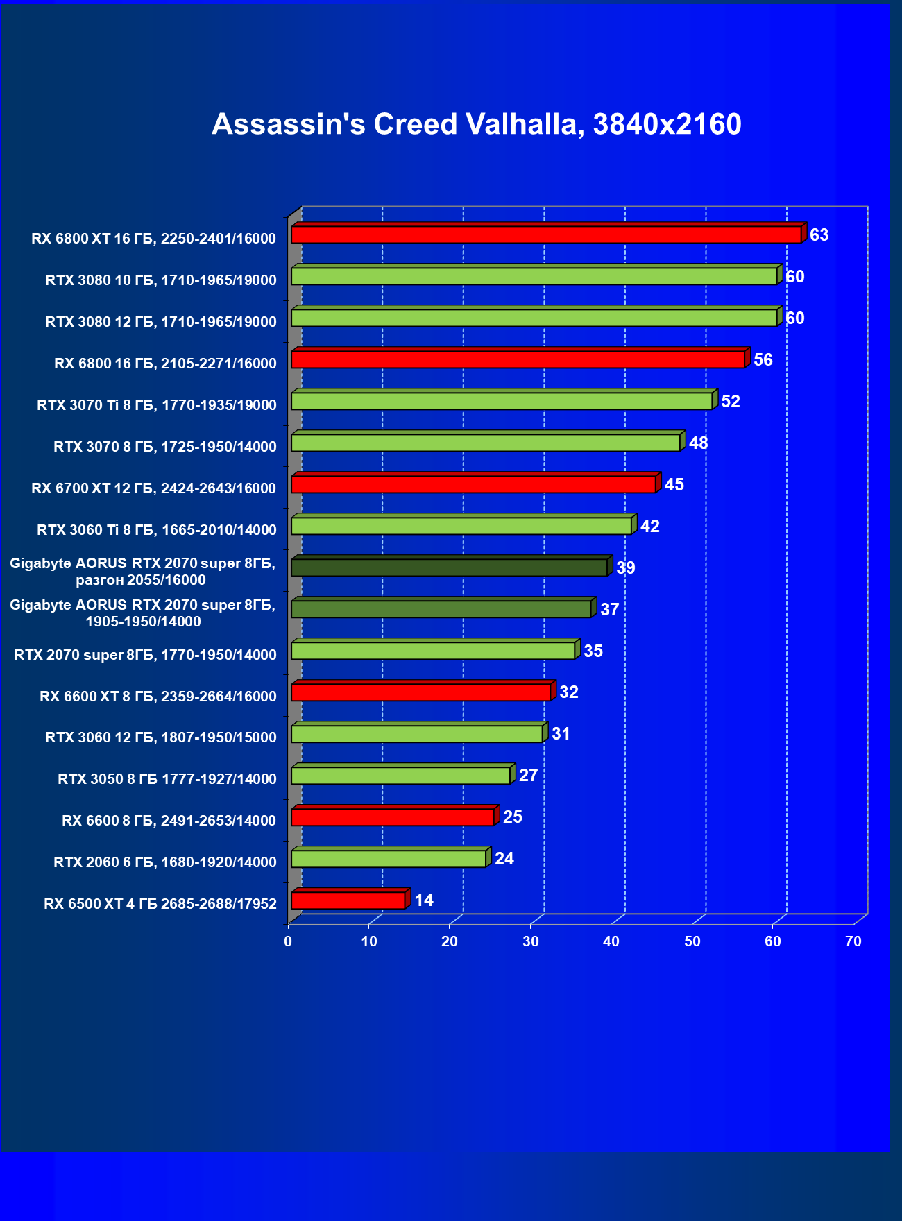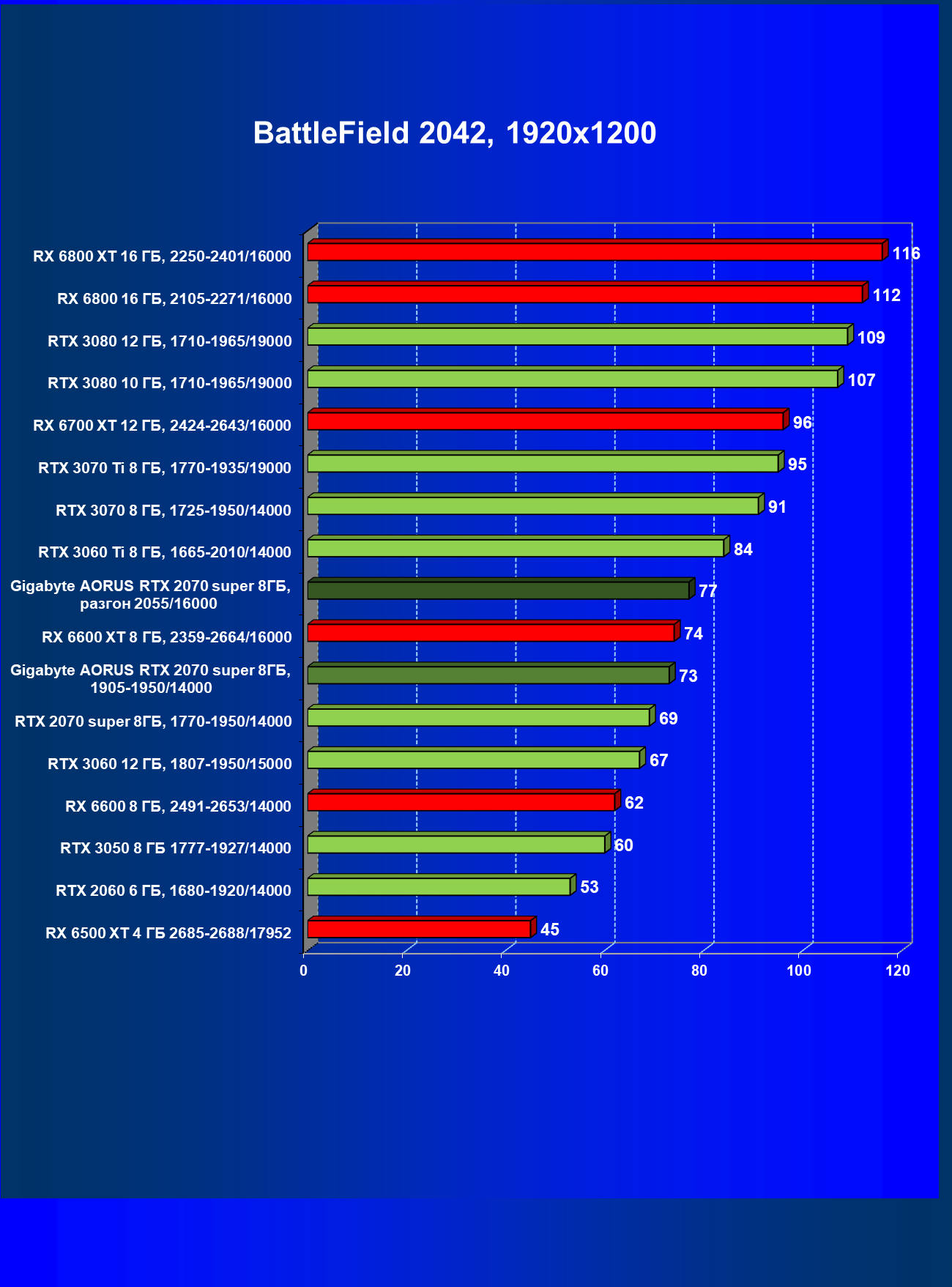 | 09 | Gigabyte Aorus RTX 2070 Super 8 ГБ, разгон 2055/16000 | 240 | 50 | 48 000 |